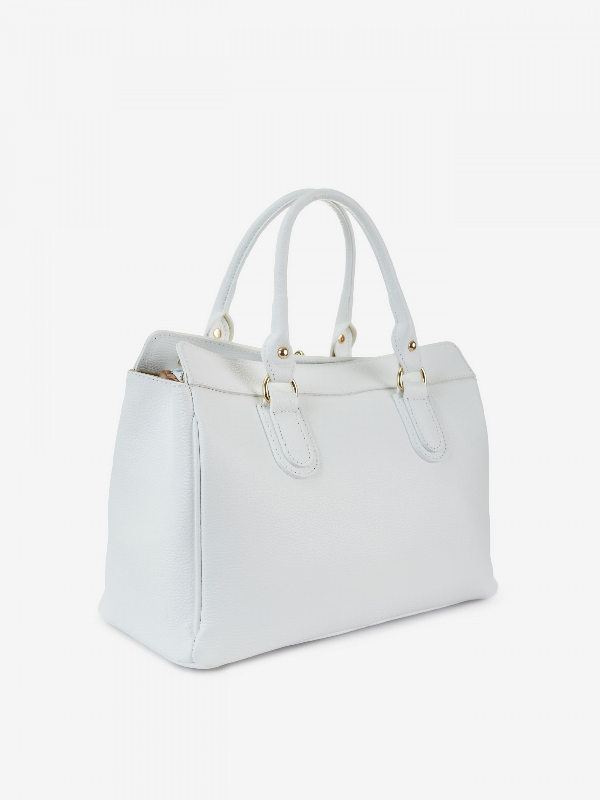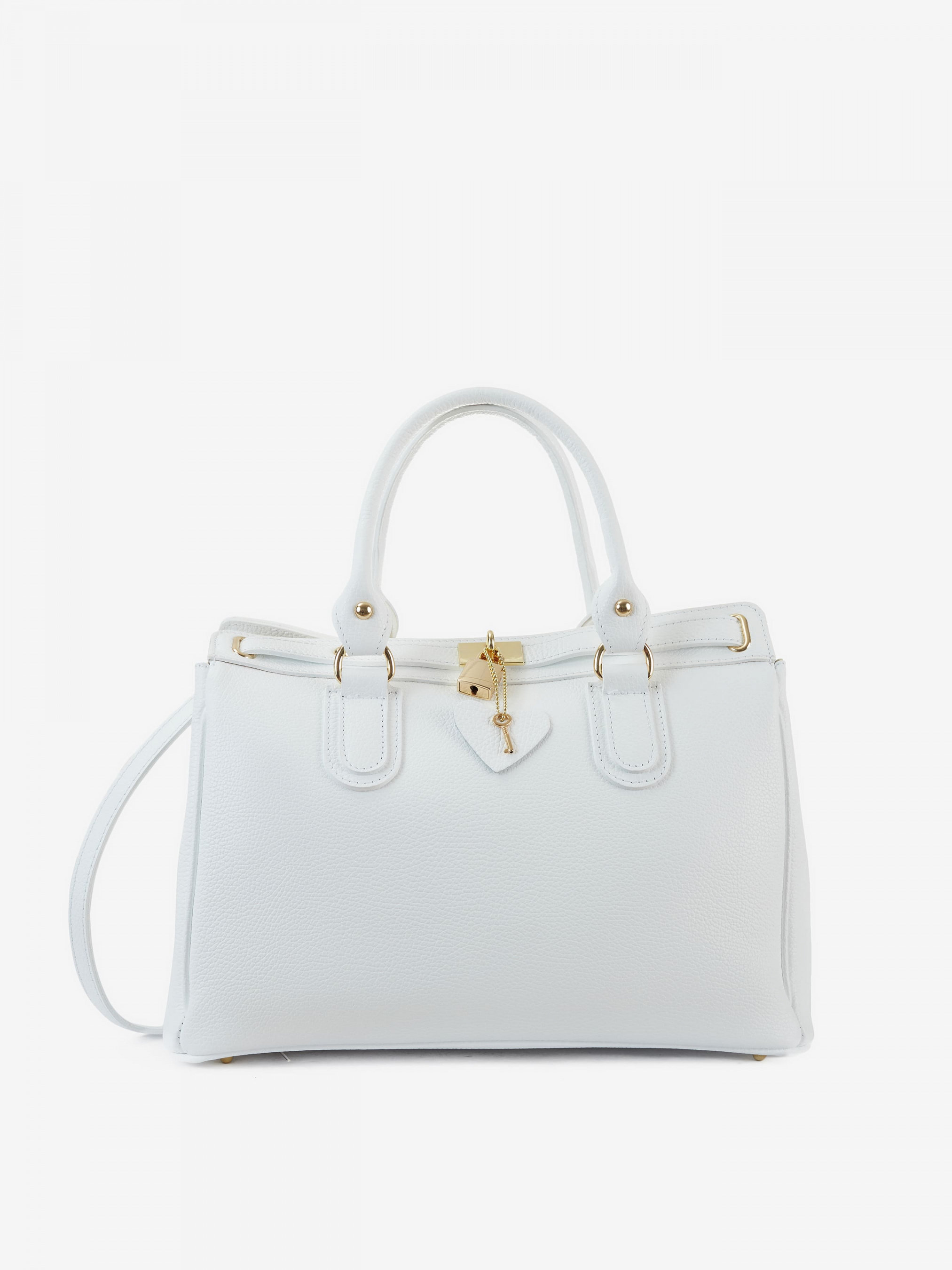 Деталі: Матеріал: 100% натуральна шкіра Шкіра має фактуру флотар Фурнітура золотистого кольору Розміри (Ш x В x Г) – 36 x 27 x 18 см Усередині 2 відділення розділені кишенею на блискавці та 3 кишеньки для дрібниць одна з них на блискавці Підкладка: 100% бавовна У комплекті ремінець для носіння на плечі знімний на карабінах регулюється, максимальна довжина 110 см. Вміщує документи формату A4 Висота ручок 15 см Застібка: блискавка