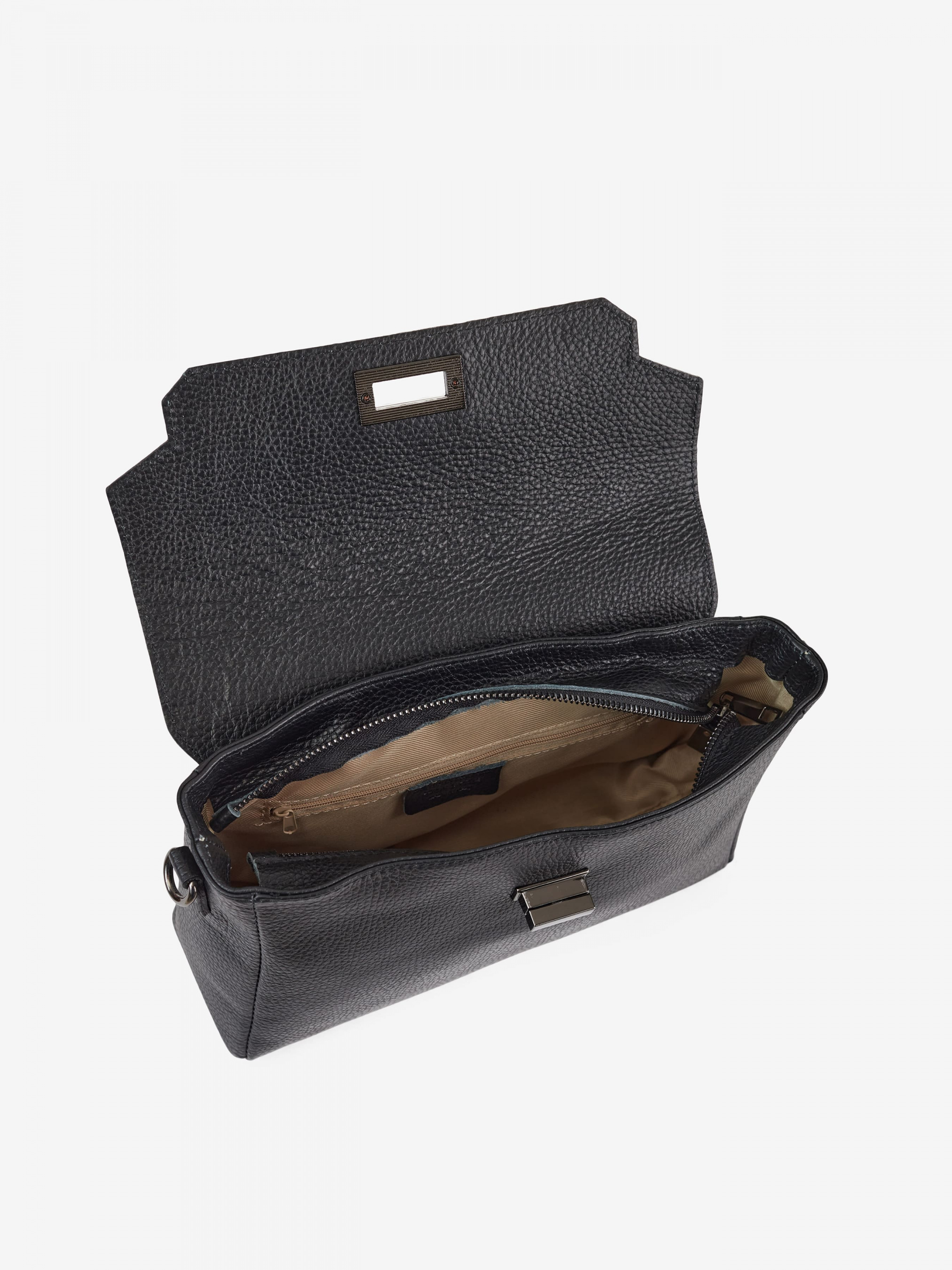 Деталі: Матеріал: 100% натуральна шкіра Шкіра фактури флотар Фурнітура чорного кольору Розміри (Ш x В x Г) – 27 x 20 x 8 см Усередині всередині 1 відділення та 1 кишенька для дрібниць на блискавці Підкладка: 100% бавовна Застібка: клапан на поворотному замку Висота ручки 25 см Ремінець шкіряний, знімний, на карабінах, регулюється, максимальна довжина 110 см
