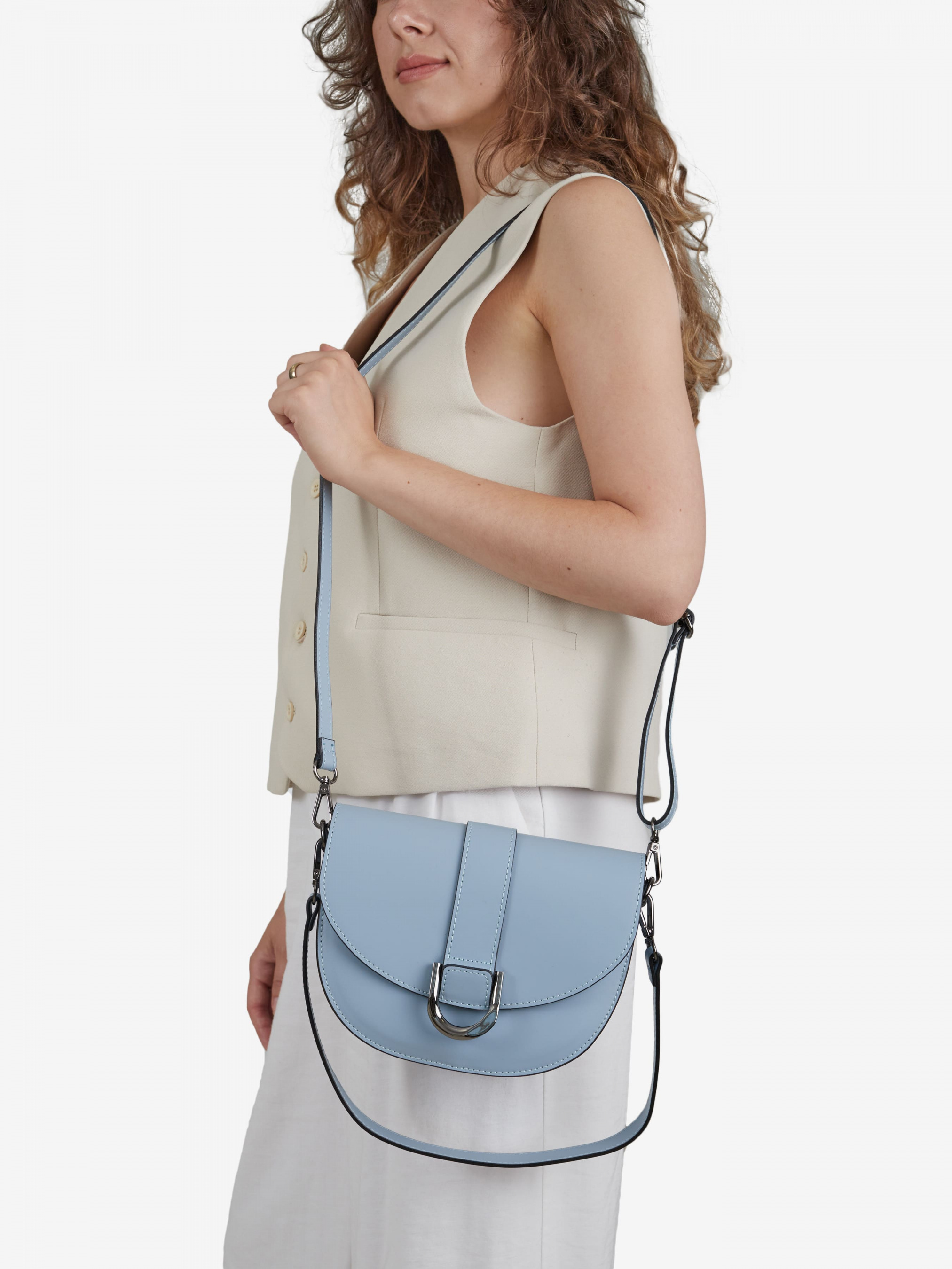 Деталі: Матеріал: 100% натуральна шкіра Шкіра має гладку фактуру Фурнітура чорного кольору Розміри (Ш x В x Г) – 22 x 17 x 7 см Усередині 1 відділення та 1 кишенька для дрібниць на блискавці Підкладка: відсутня Застібка: клапан на магніті із замшевою підкладкою 2 ремінці шкіряні знімні, на карабінах, один з них регулюється, максимальна довжина 120 см, а другий не регулюється, довжина 50 см