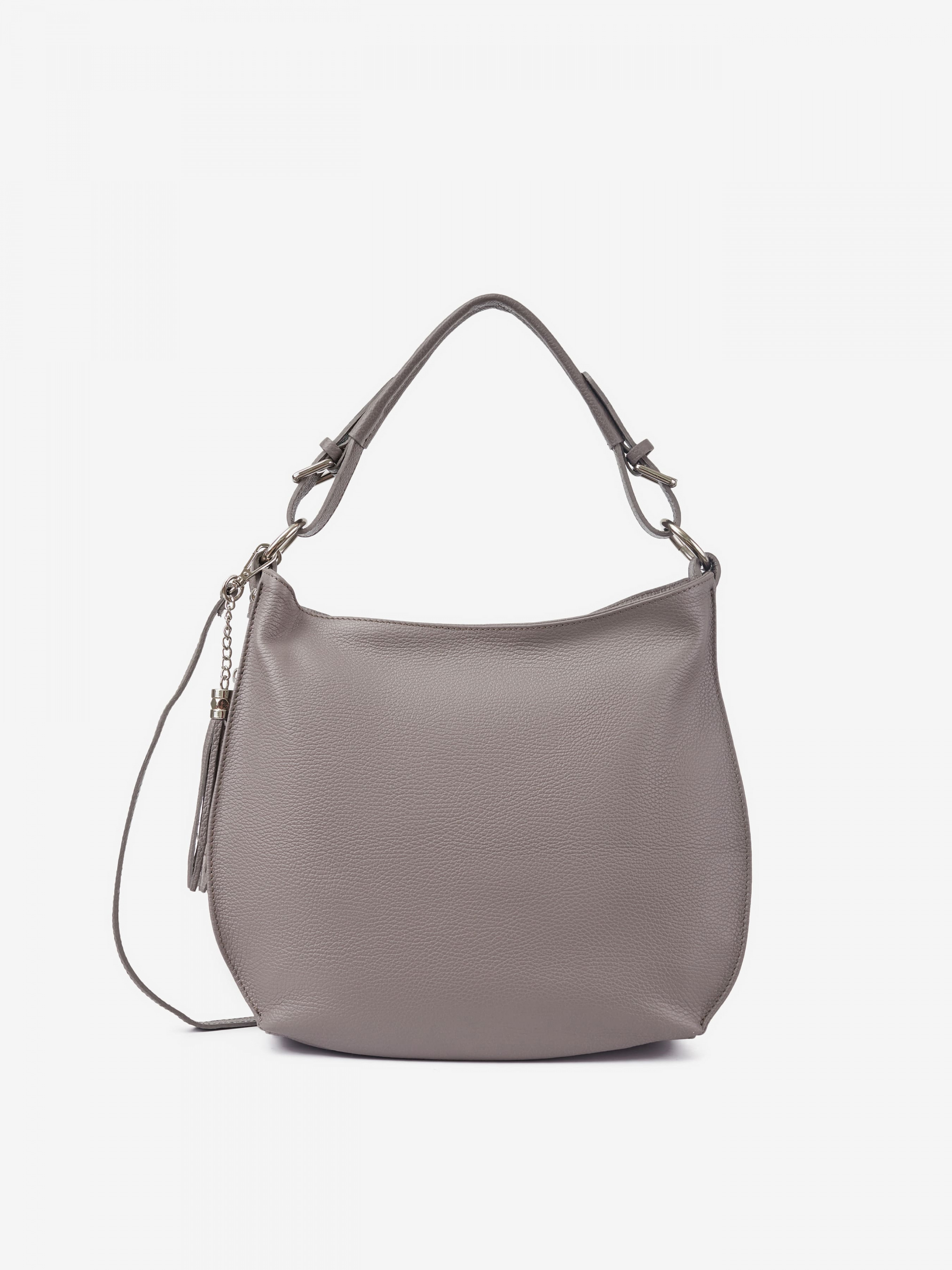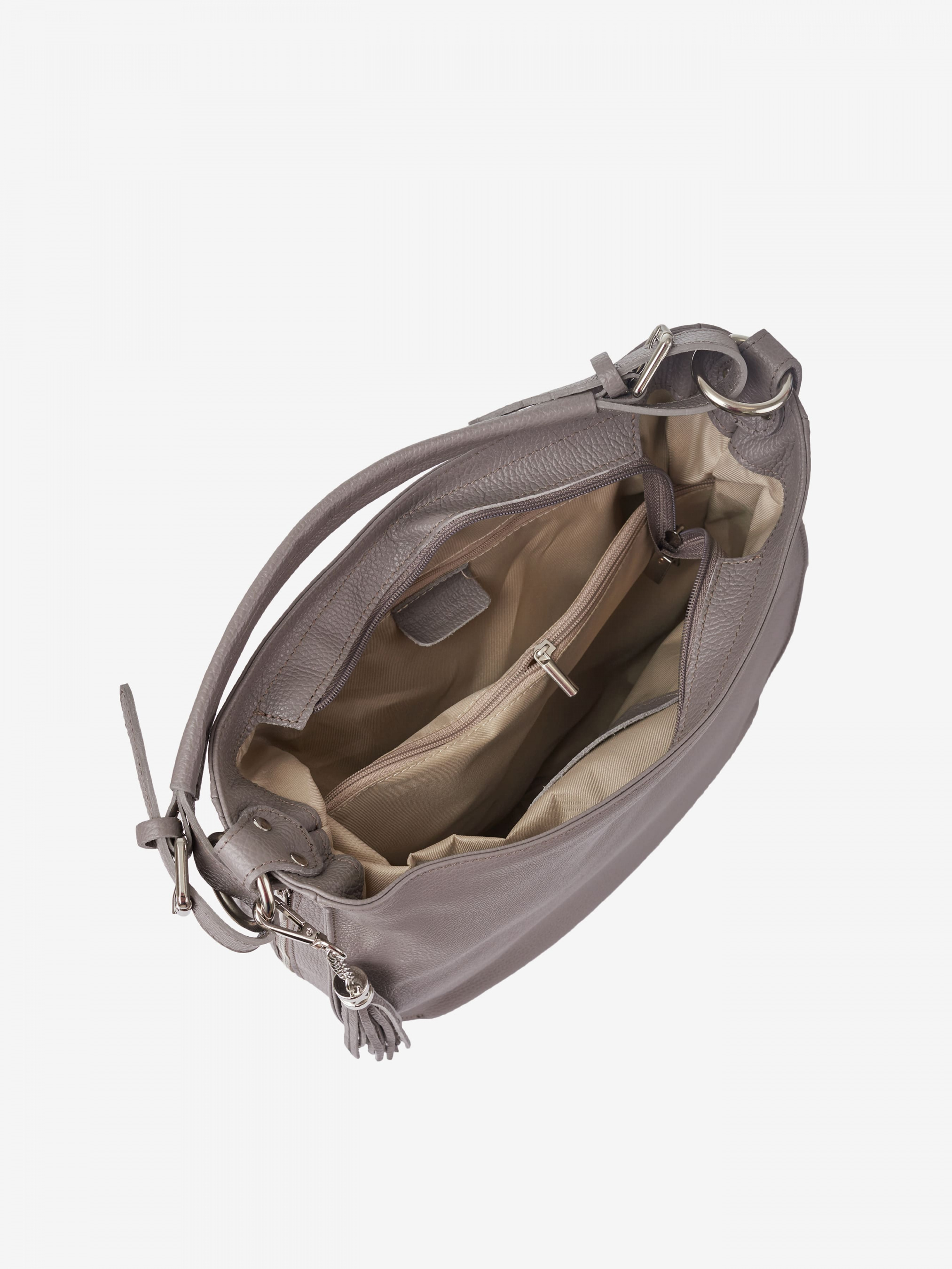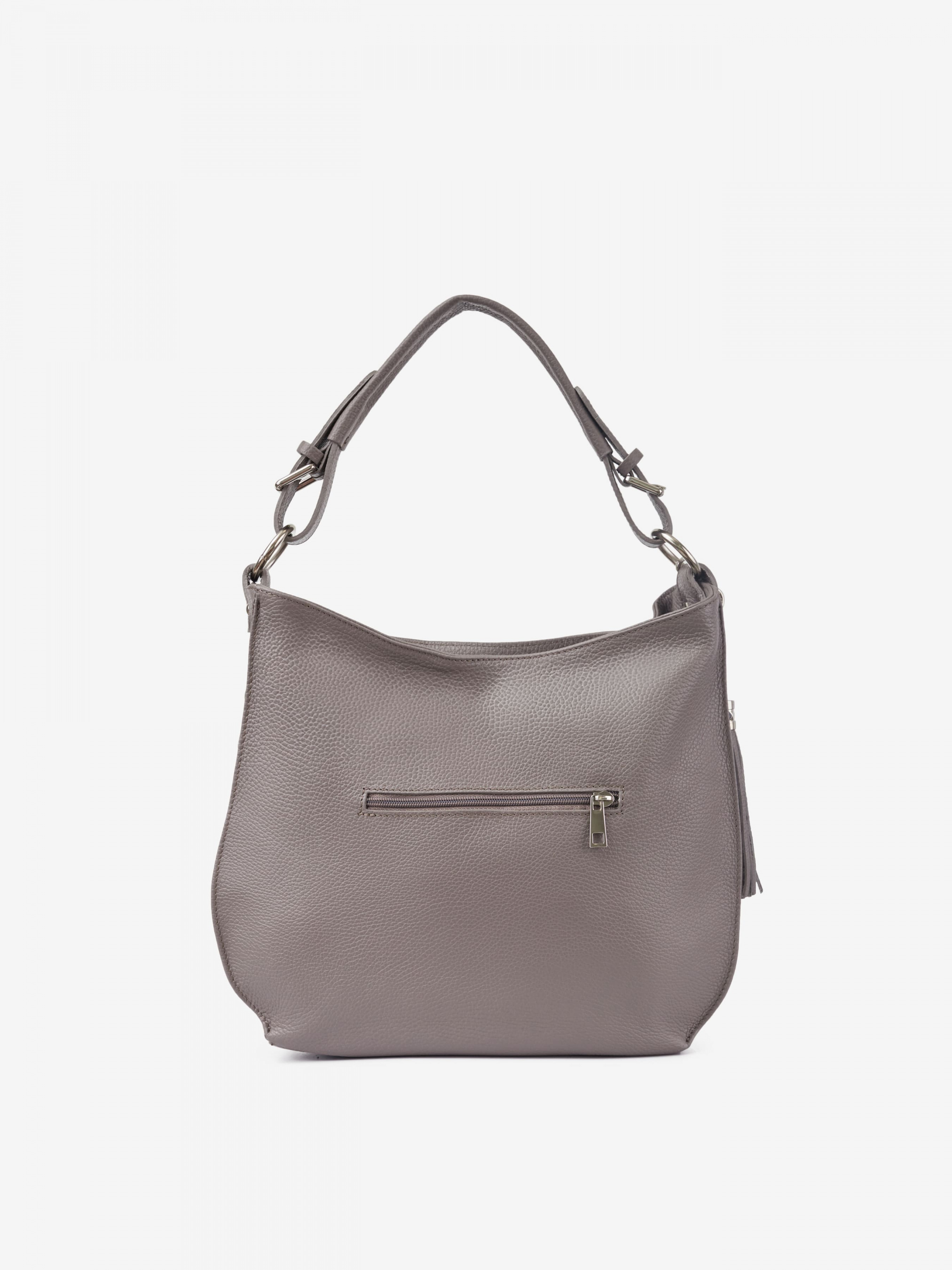 Деталі: Матеріал: 100% натуральна шкіра Шкіра має фактуру флотар Фурнітура сріблястого кольору Розміри (Ш x В x Г) - 35 х 30 х 12 см Усередині 2 відділення розділені кишенею на блискавці та 2 кишеньки для дрібниць, одна з них на блискавці Позаду кишеньку на блискавці. З боків вертикальні кишеньки на блискавці. Є декоративний брелок на карабіні Підкладка: 100% бавовна Вміщує документи формату A4 Застібка: блискавка Ремінець шкіряний, регулюється, знімний, максимальна довжина 115 см. Ручка знімна, висота ручки 25 см