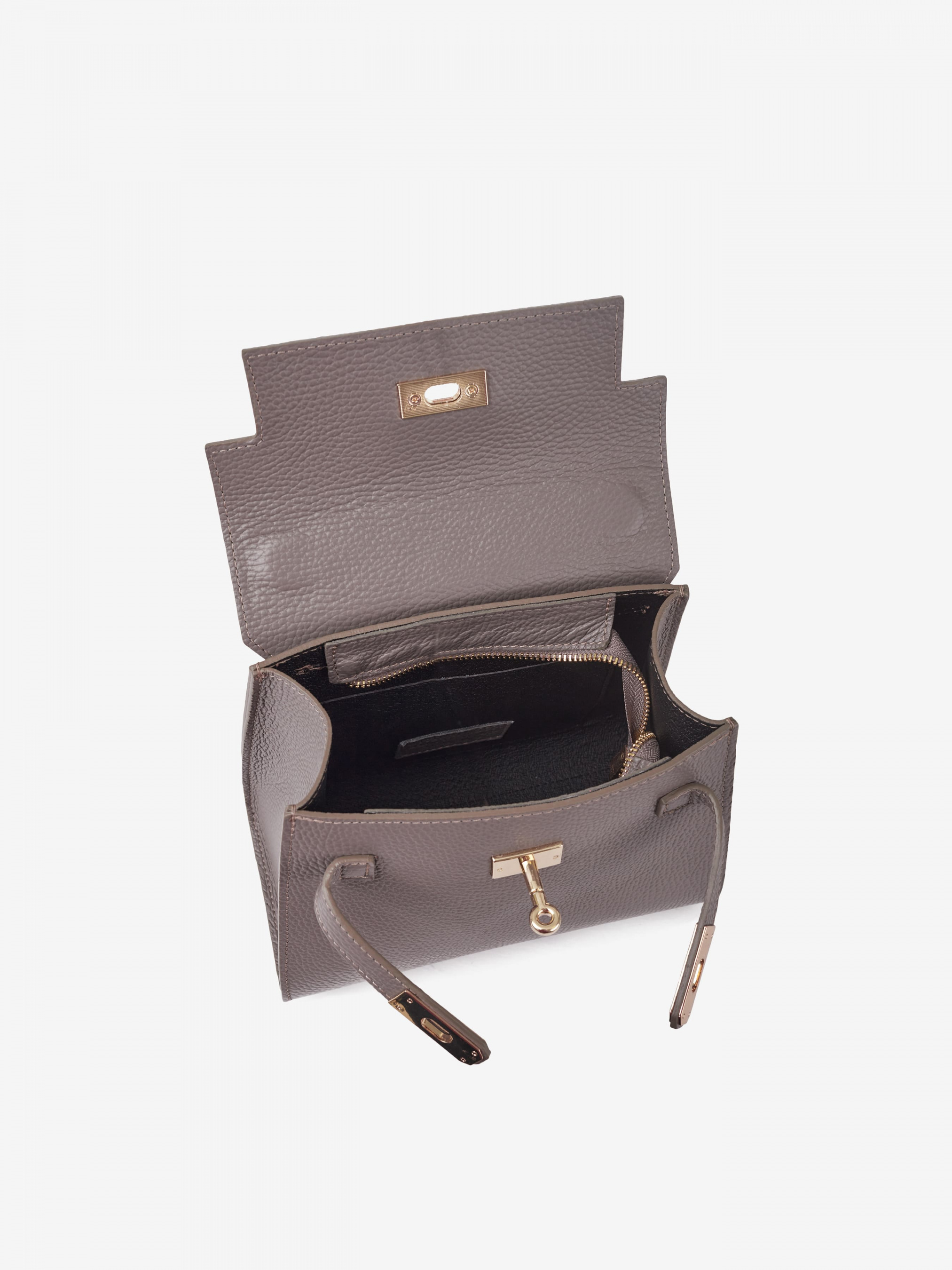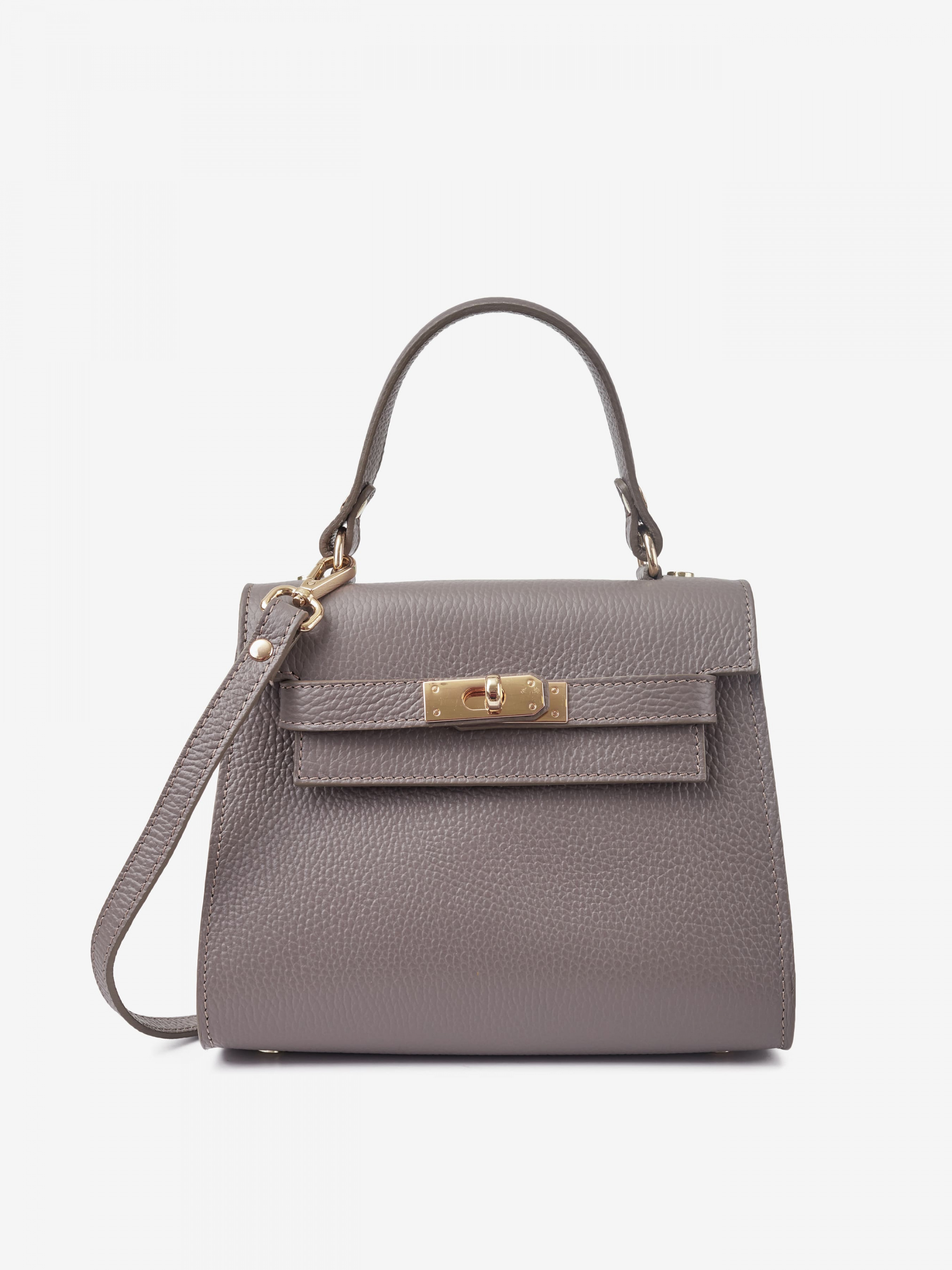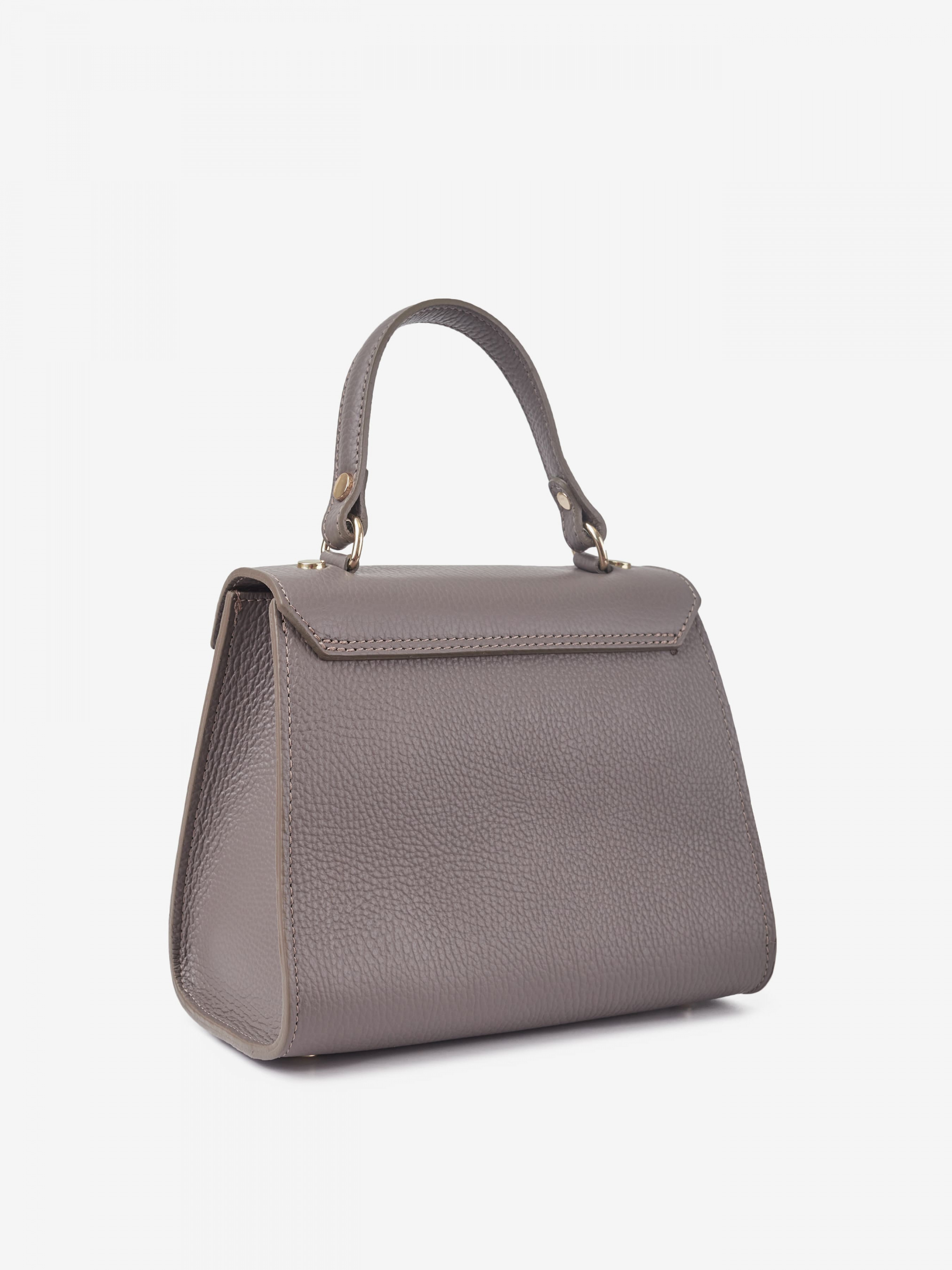 Деталі: Матеріал: 100% натуральна шкіра Шкіра має фактуру флотар Фурнітура золотистого кольору Розміри (Ш x В x Г) – 22 x 18 x 12 см Усередині 1 відділення та кишенька без застібки Підкладка: відсутня Застібка: клапан на поворотному замку Ремінець шкіряний, регулюється, знімний, максимальна довжина 120 см. Висота ручки 12 см