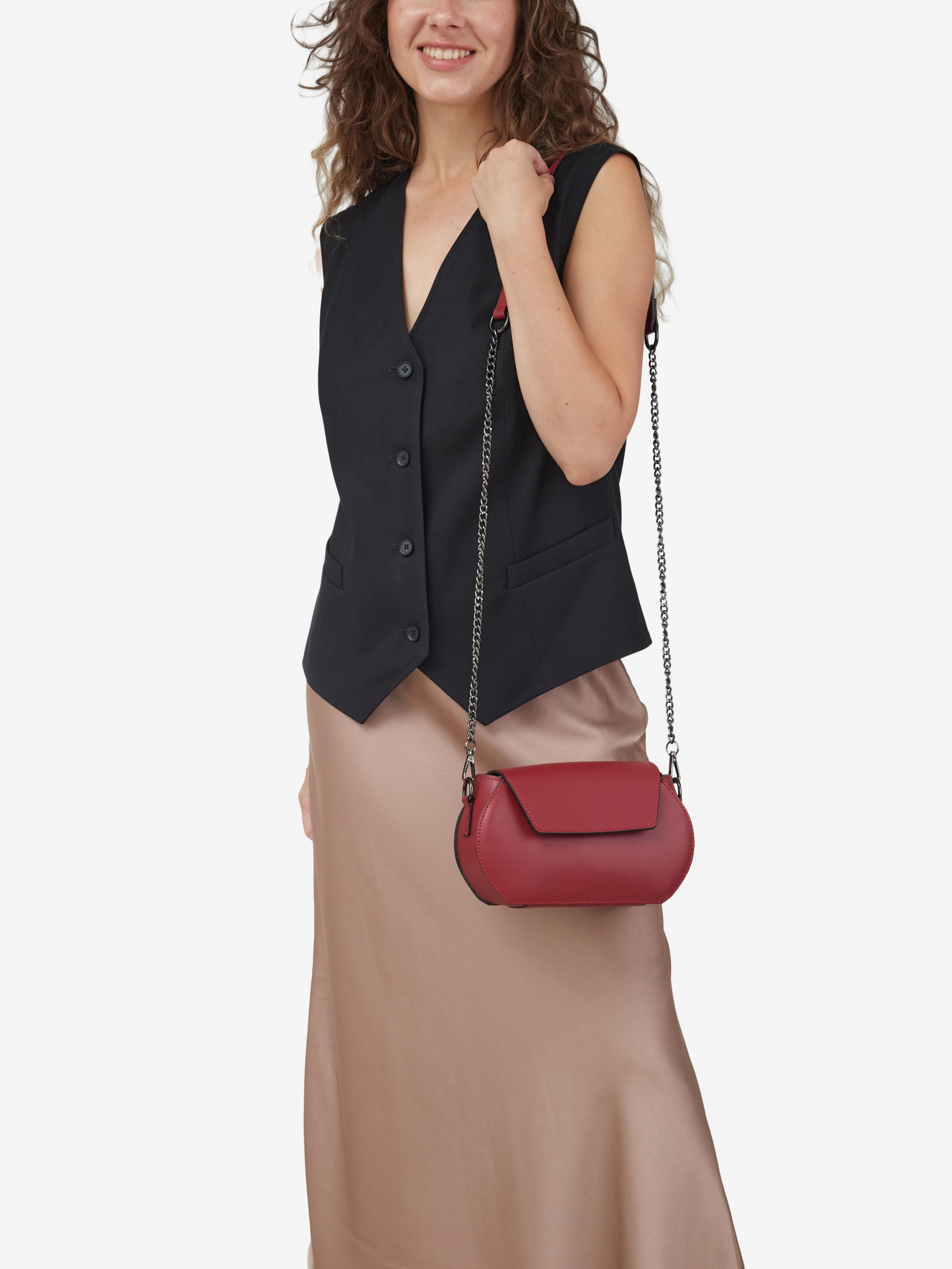 Деталі: Матеріал: 100% натуральна шкіра Шкіра гладка Фурнітура чорного кольору Розміри (Ш x В x Г) - 22 х 14 х 7 см Усередині 1 відділення та 1 кишенька для дрібниць на блискавці Підкладка: 100% бавовна Застібка: магніт Ремінець комбінований ланцюжок зі шкіряною вставкою, не регулюється, знімний, максимальна довжина 130 см