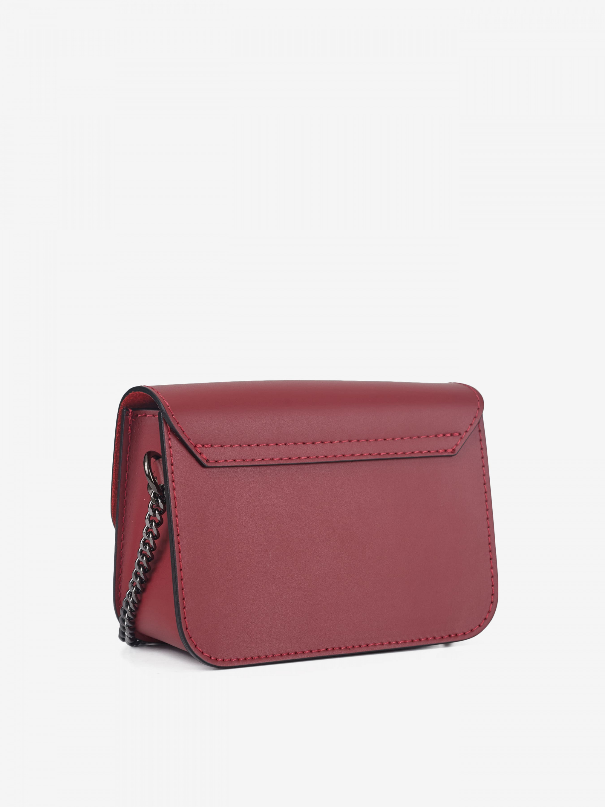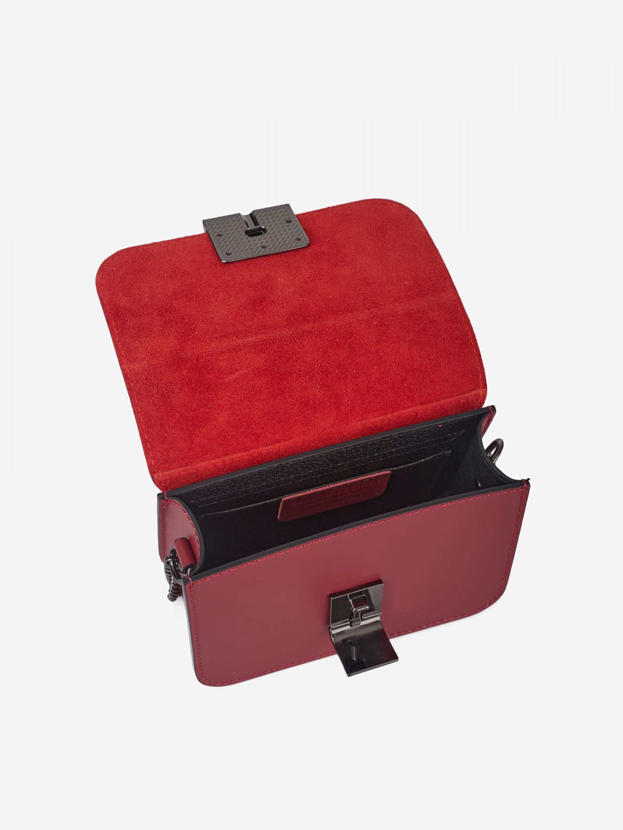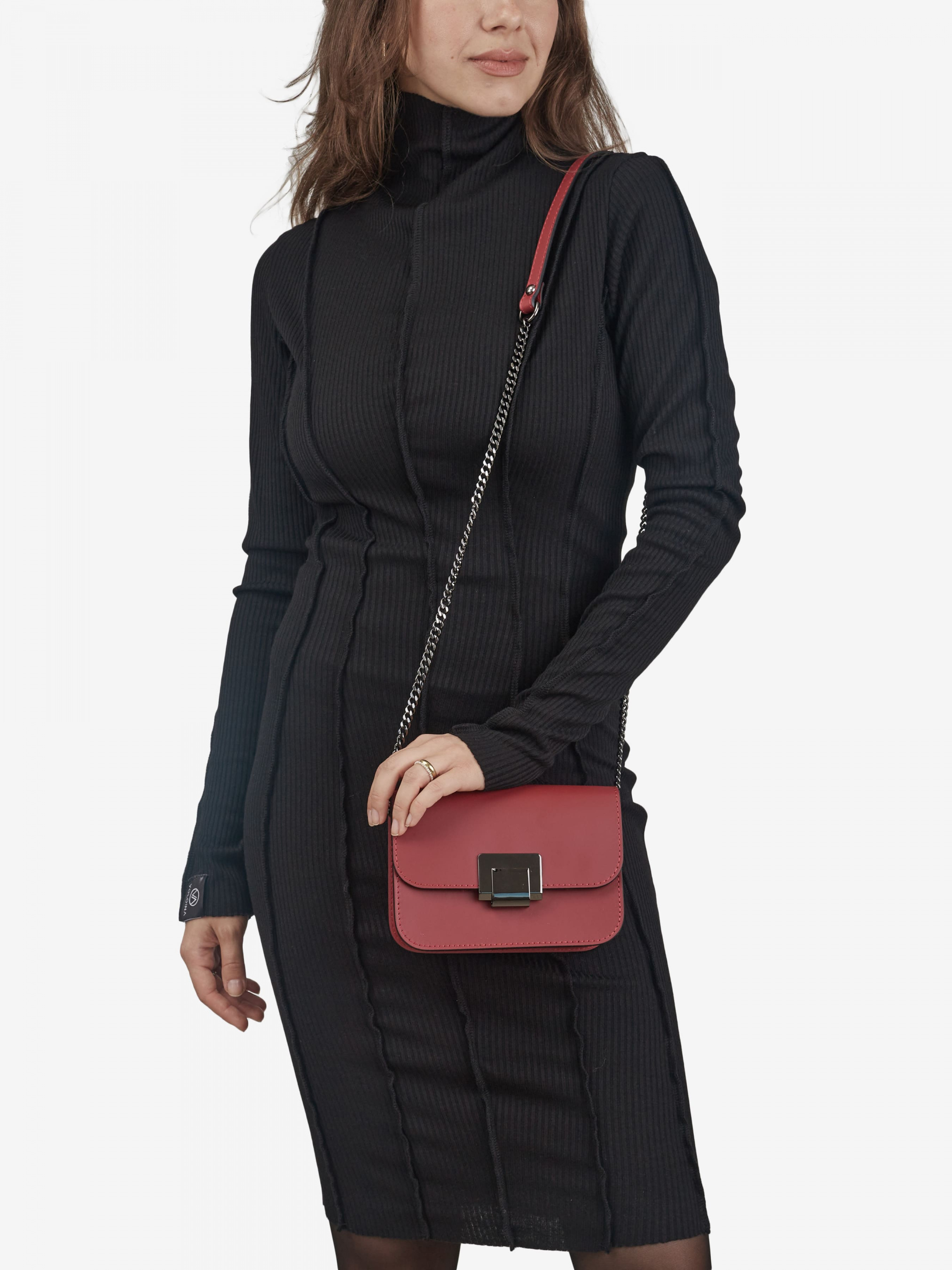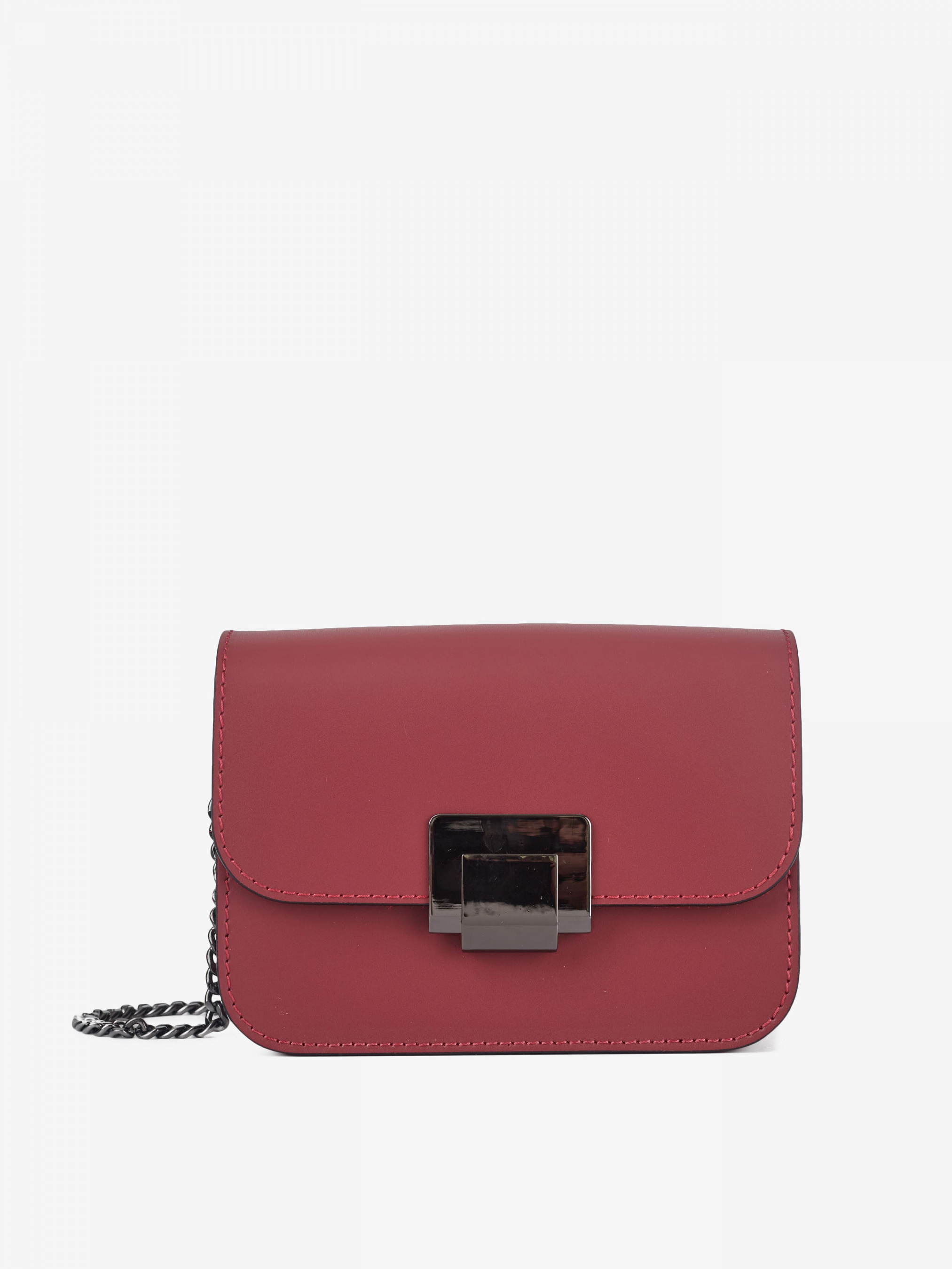 Деталі: Матеріал: 100% натуральна шкіра Шкіра має гладку фактуру Фурнітура чорного кольору Розміри (Ш x В x Г) – 17 x 12 x 7 см Всередині 1 відділення та кишенька для дрібниць без застібки Застібка: блискавка та клапан на кліпсі Ремінець-ланцюжок не регулюється незнімний, висота 52 см