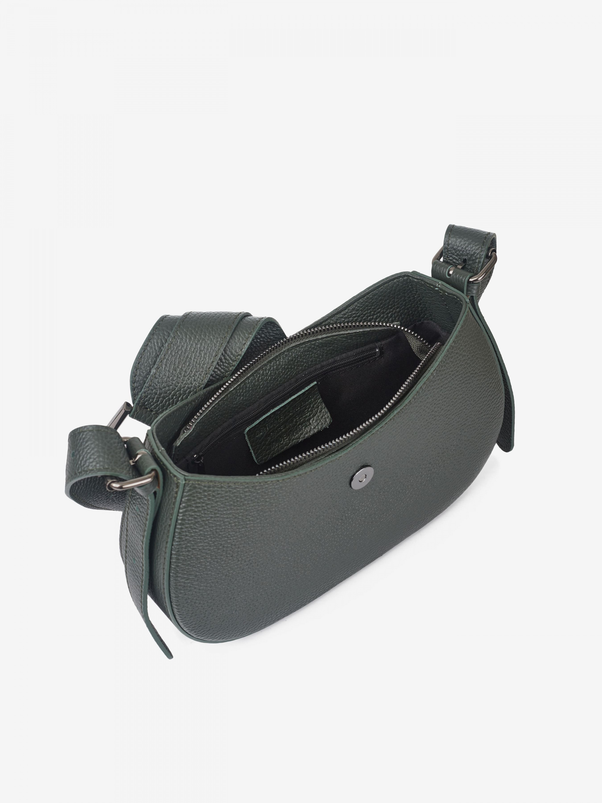 Деталі: Матеріал: 100% натуральна шкіра Шкіра флотар Фурнітура чорного кольору Розміри (Ш x В x Г) - 28 х 16 х 6 см Усередині 1 відділення та 1 кишенька для дрібниць на блискавці Підкладка: 100% бавовна Застібка: блискавка, хлястик на магніті Ручка регулюється, знімна, висота ручки 45 см