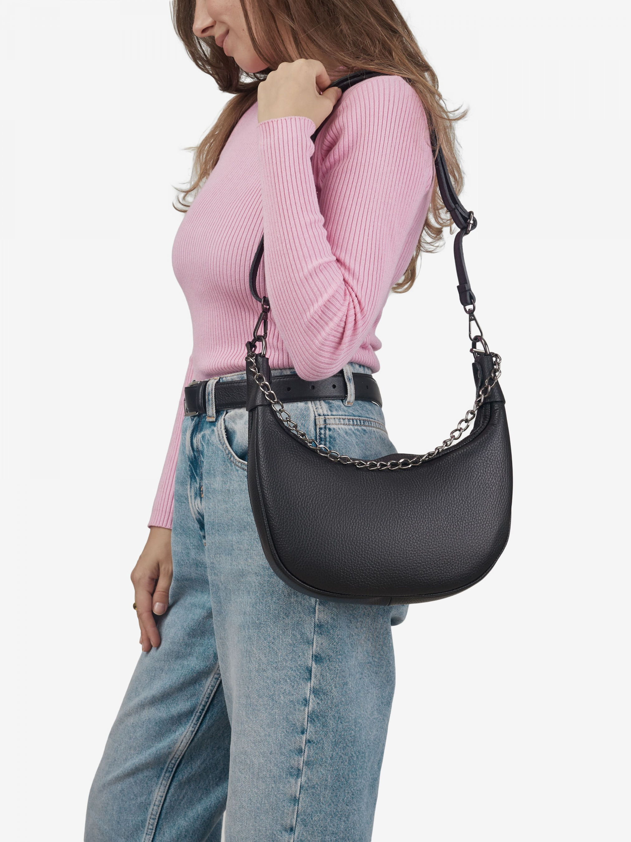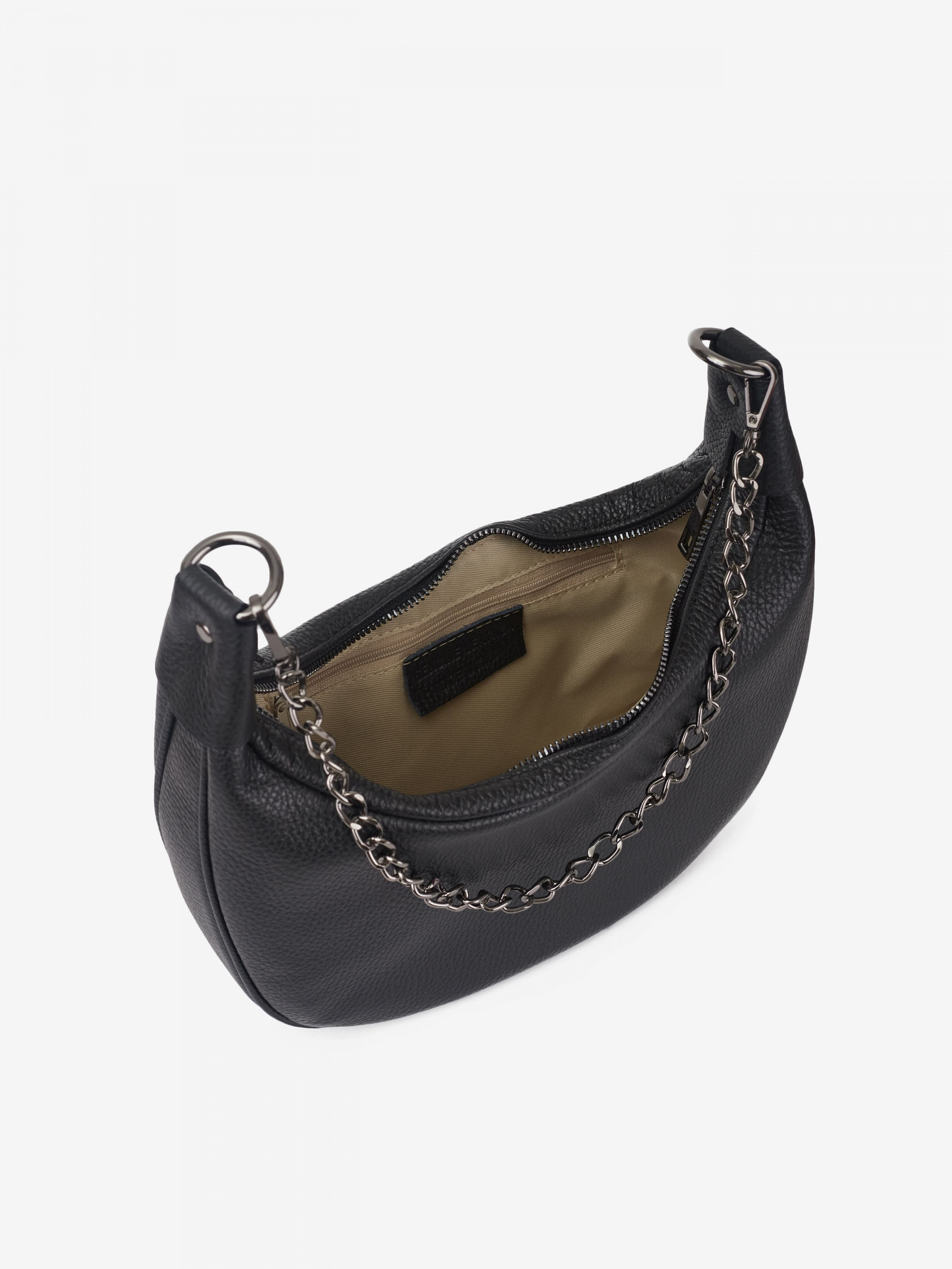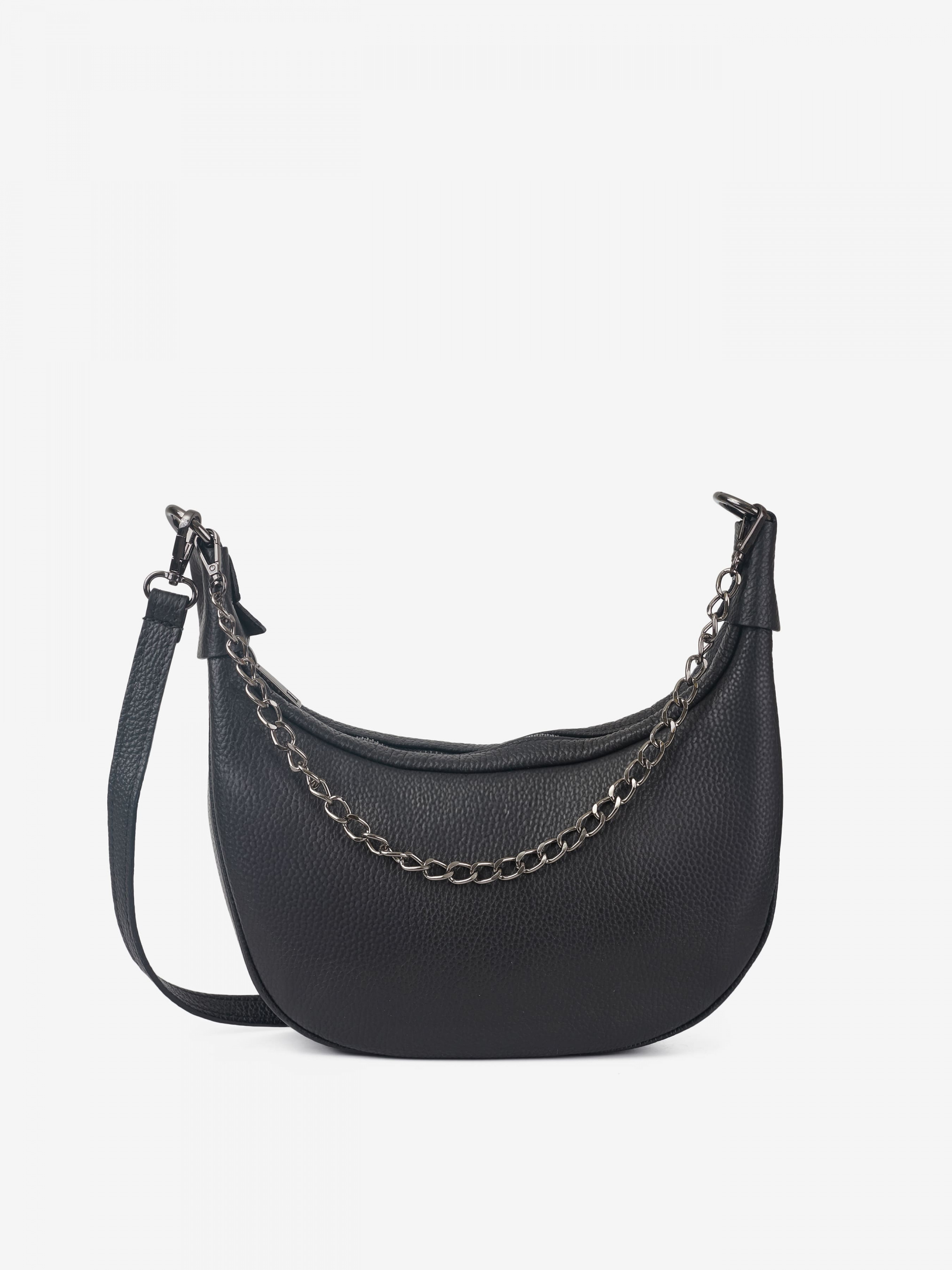Деталі: Матеріал: 100% натуральна шкіра Шкіра флотар Фурнітура чорного кольору Розміри (Ш x В x Г) - 18 х 16 х 7 см Усередині 1 відділення та 1 кишенька для дрібниць на блискавці Підкладка: 100% бавовна Застібка: блискавка Ремінець шкіряний, регулюється, знімний, максимальна довжина 110 см Ручка-ланцюжок знімна, висота ручки 20 см