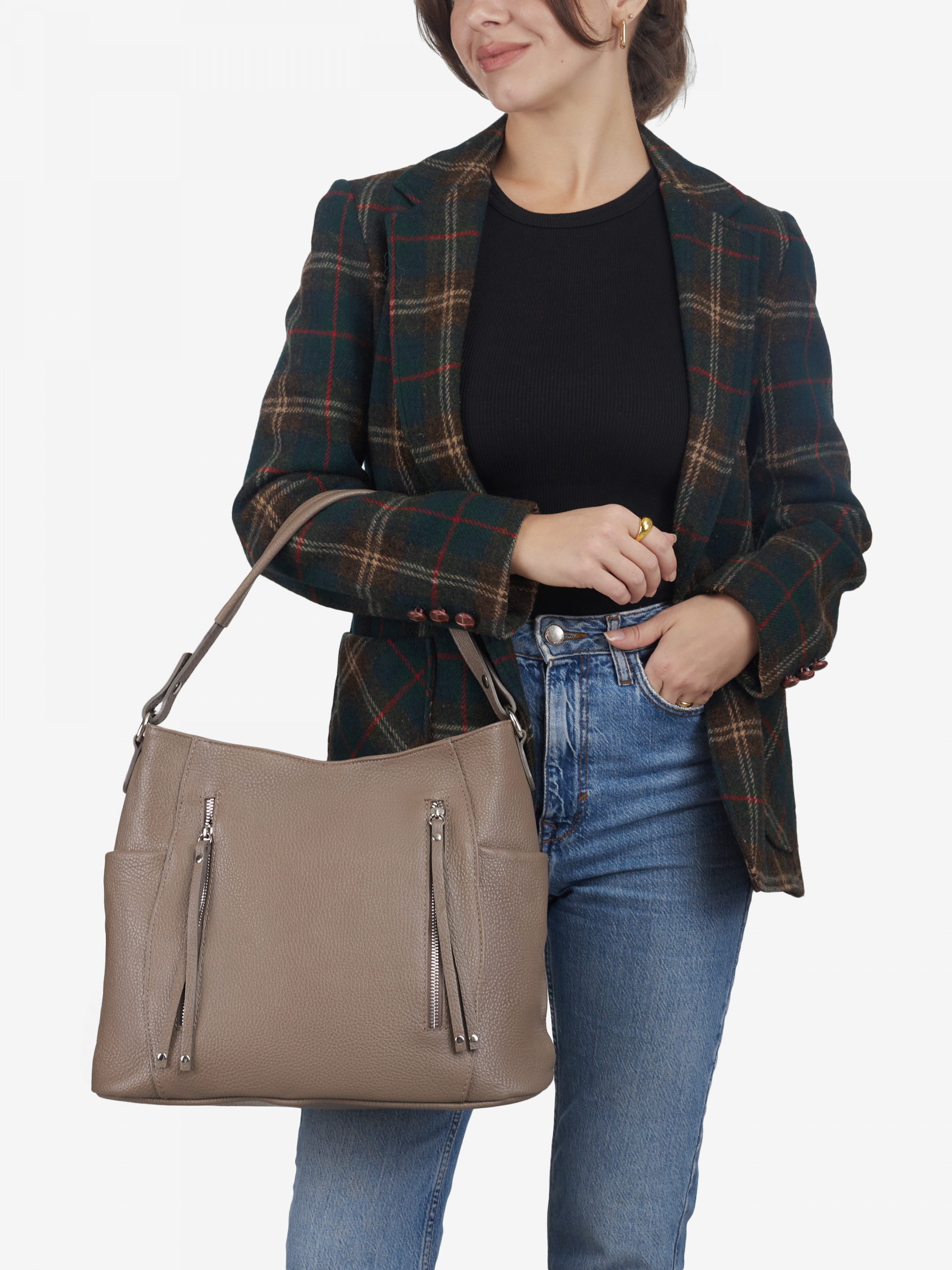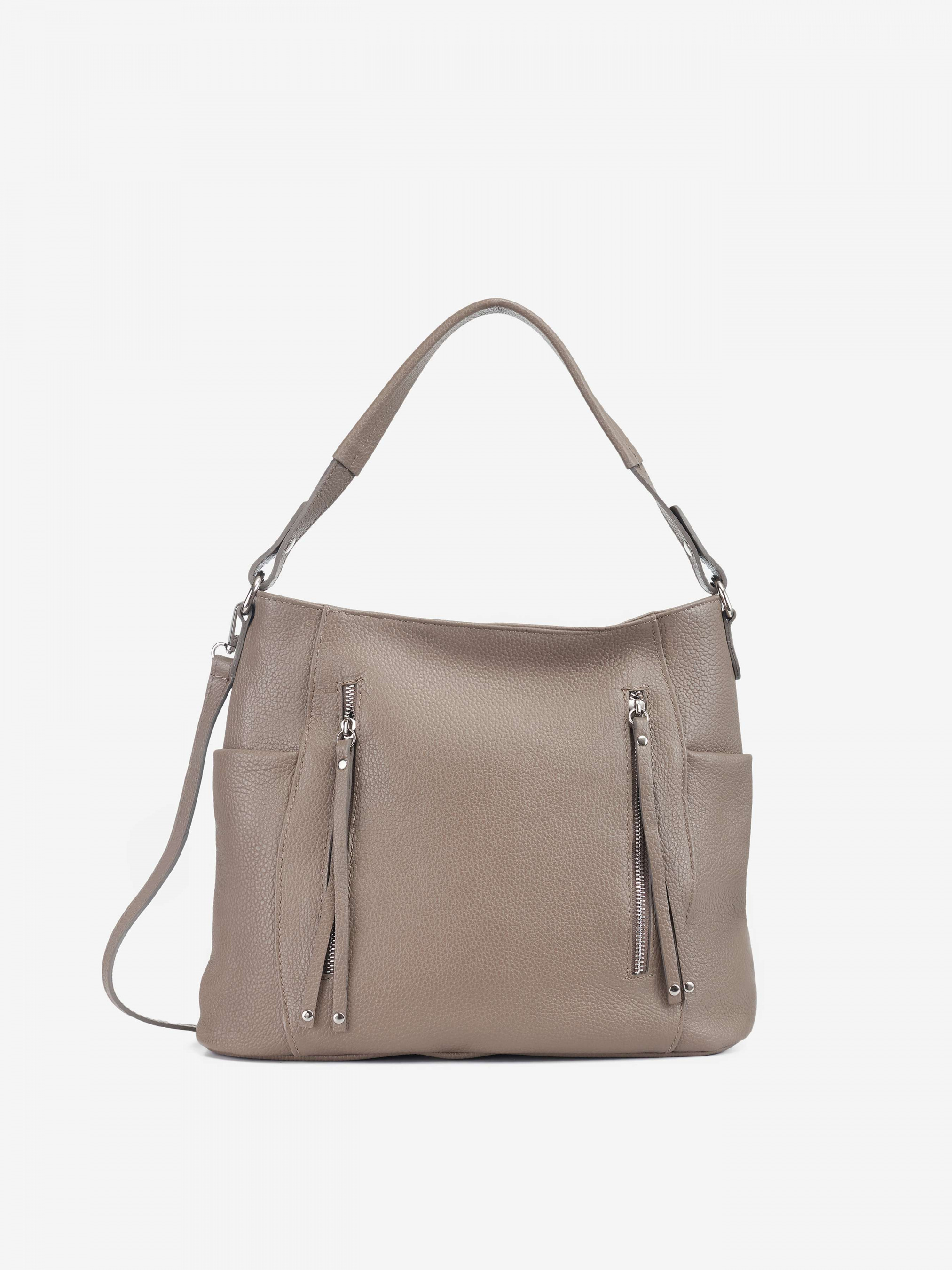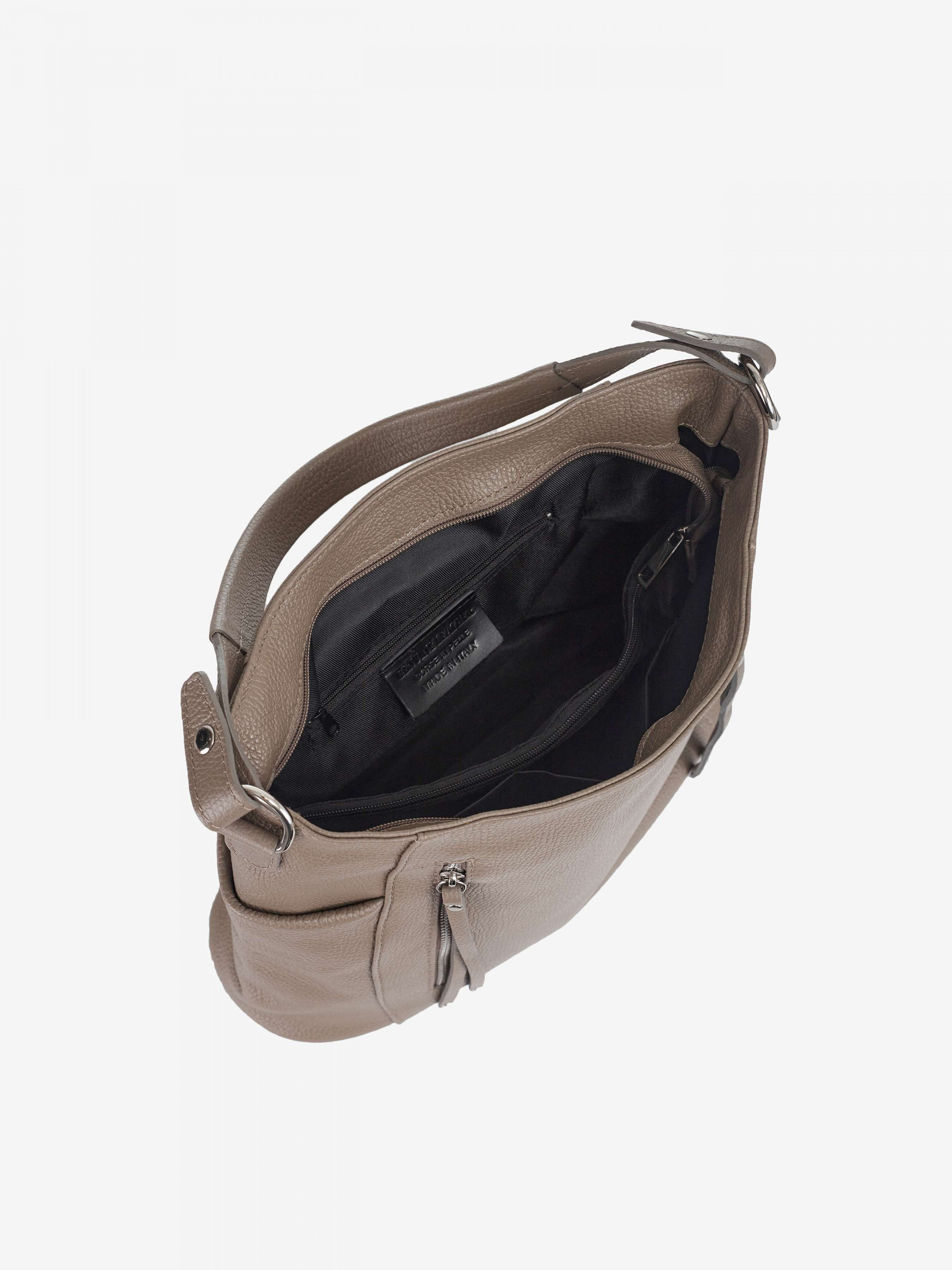 Деталі: Матеріал: 100% натуральна шкіра Шкіра флотар Фурнітура сріблястого кольору Розміри (Ш x В x Г) – 36 x 30 x 12 см Усередині 2 відділення розділені кишенею на блискавці і 3 кишеньки для дрібниць одна з них на блискавці. Попереду 2 вертикальні кишеньки на блискавці. З боків 2 кишеньки без застібки. Позаду горизонтальну кишеньку на блискавці. Підкладка: 100% бавовна Застібка: блискавка Ремінець шкіряний, регулюється, знімний, на карабінах, максимальна довжина 125 см. Висота ручки 23 см