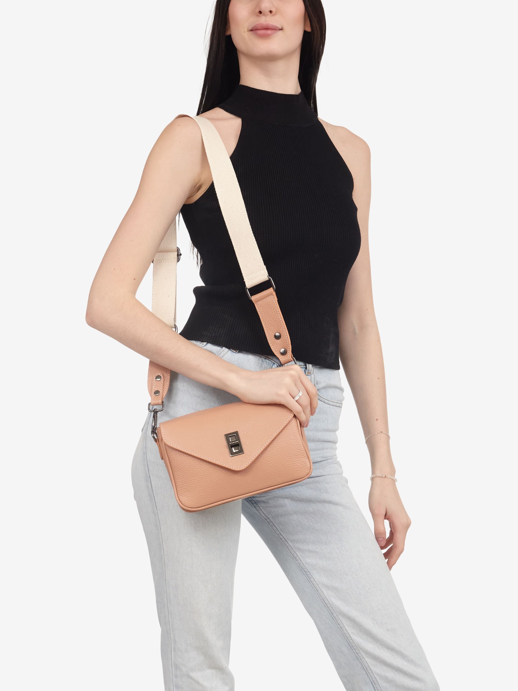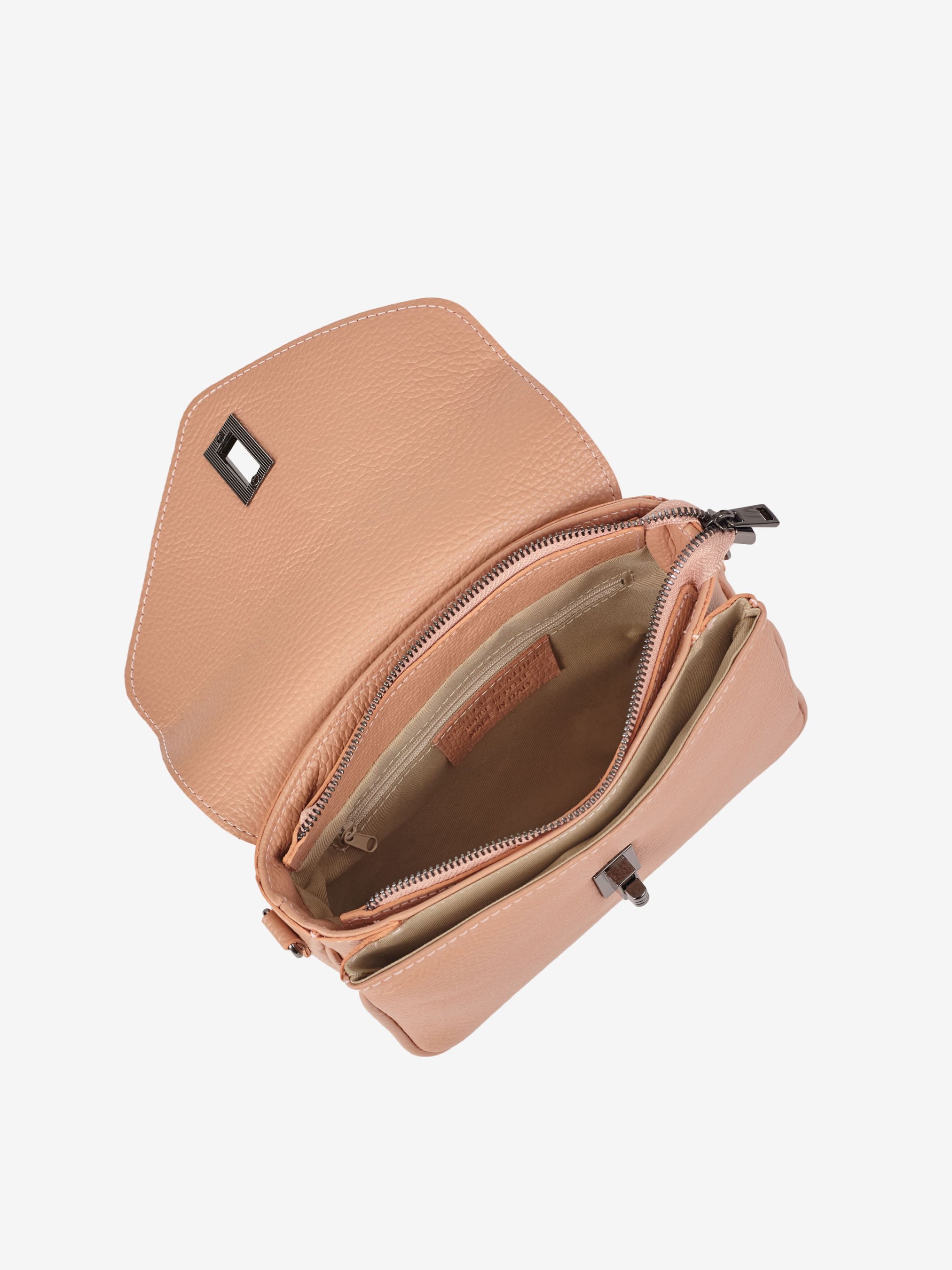 Деталі: Матеріал: 100% натуральна шкіра Шкіра флотар Фурнітура сріблястого кольору Розміри (Ш x В x Г) – 26 x 18 x 9 см Усередині 1 відділення та 1 кишенька для дрібниць на блискавці, спереду під клапаном накладна кишеня без застібки на повну висоту, ззаду горизонтальна кишеня на блискавці Підкладка: 100% бавовна Застібка: клапан на поворотному замку Знімний ремінець на карабінах регулюється максим. довжина 100 см