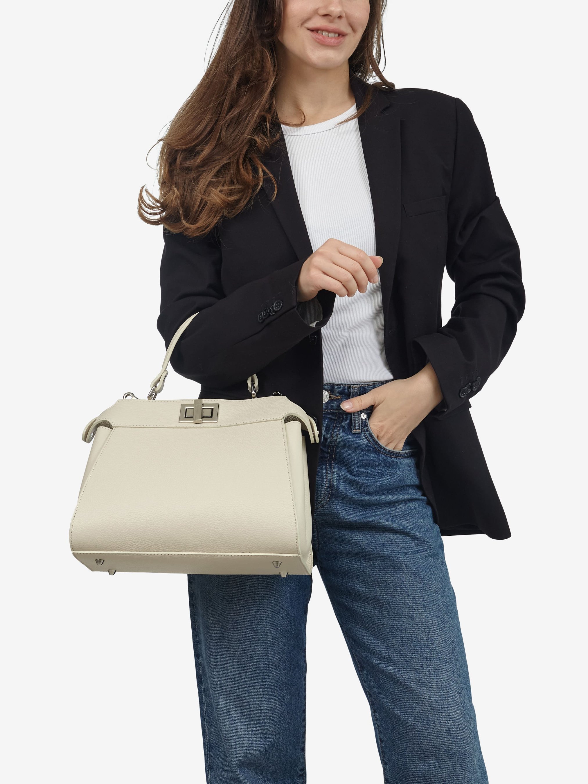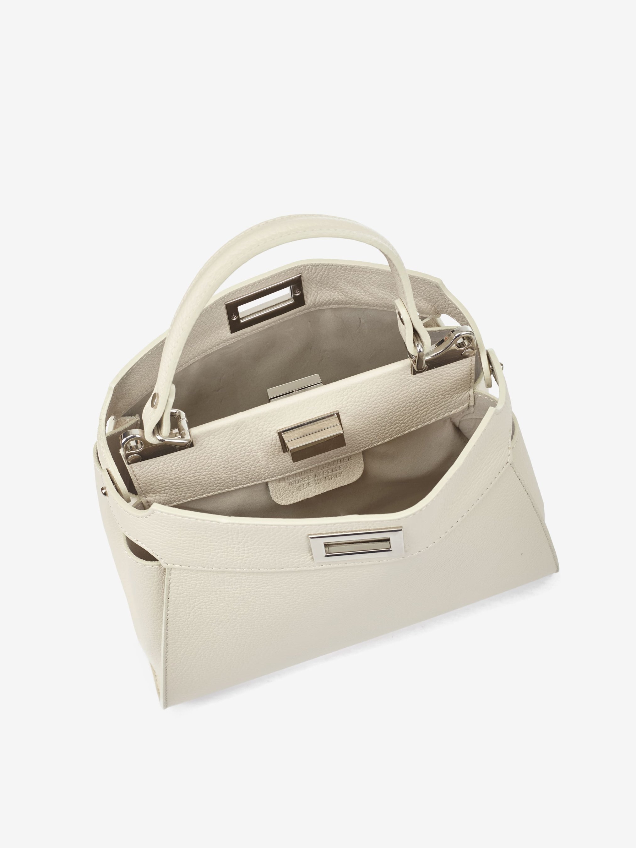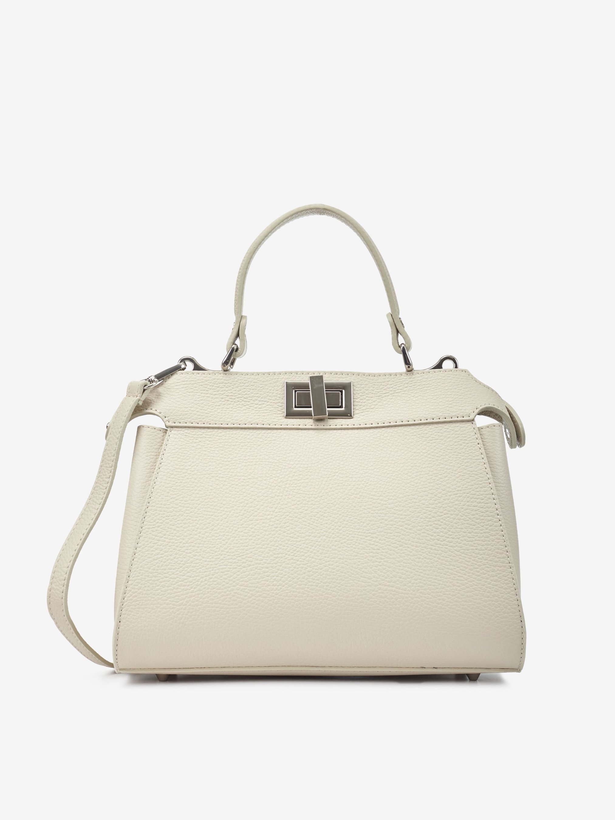 Деталі: Матеріал: 100% натуральна шкіра Шкіра флотар Фурнітура сріблястого кольору Розміри (Ш x В x Г) - 28 х 24 х 11 см Усередині 2 відділення Підкладка бавовна Висота ручки 13 см Ремінець шкіряний, регулюється, знімний, максимальна довжина 120 см Застібка: поворотний замок