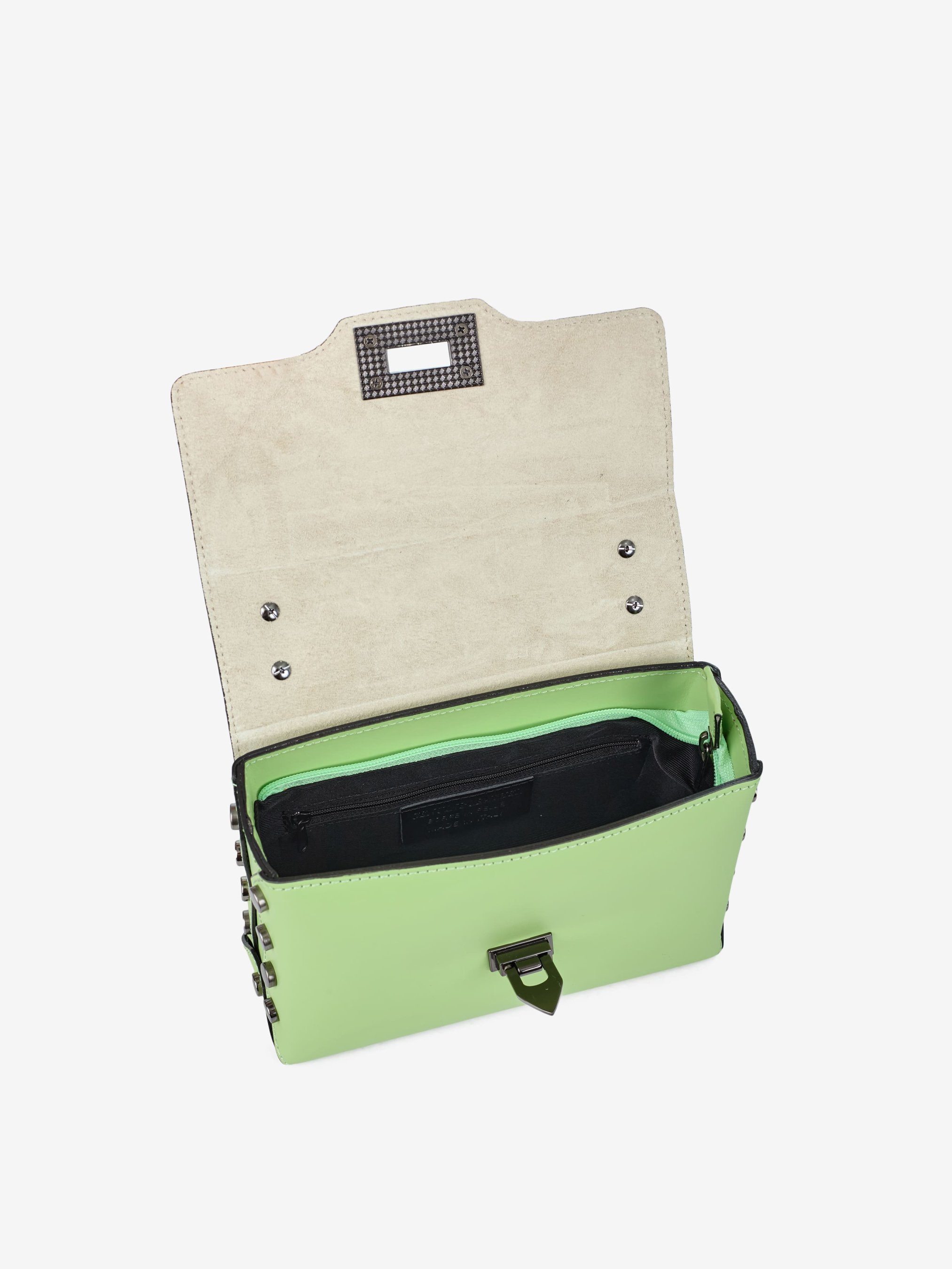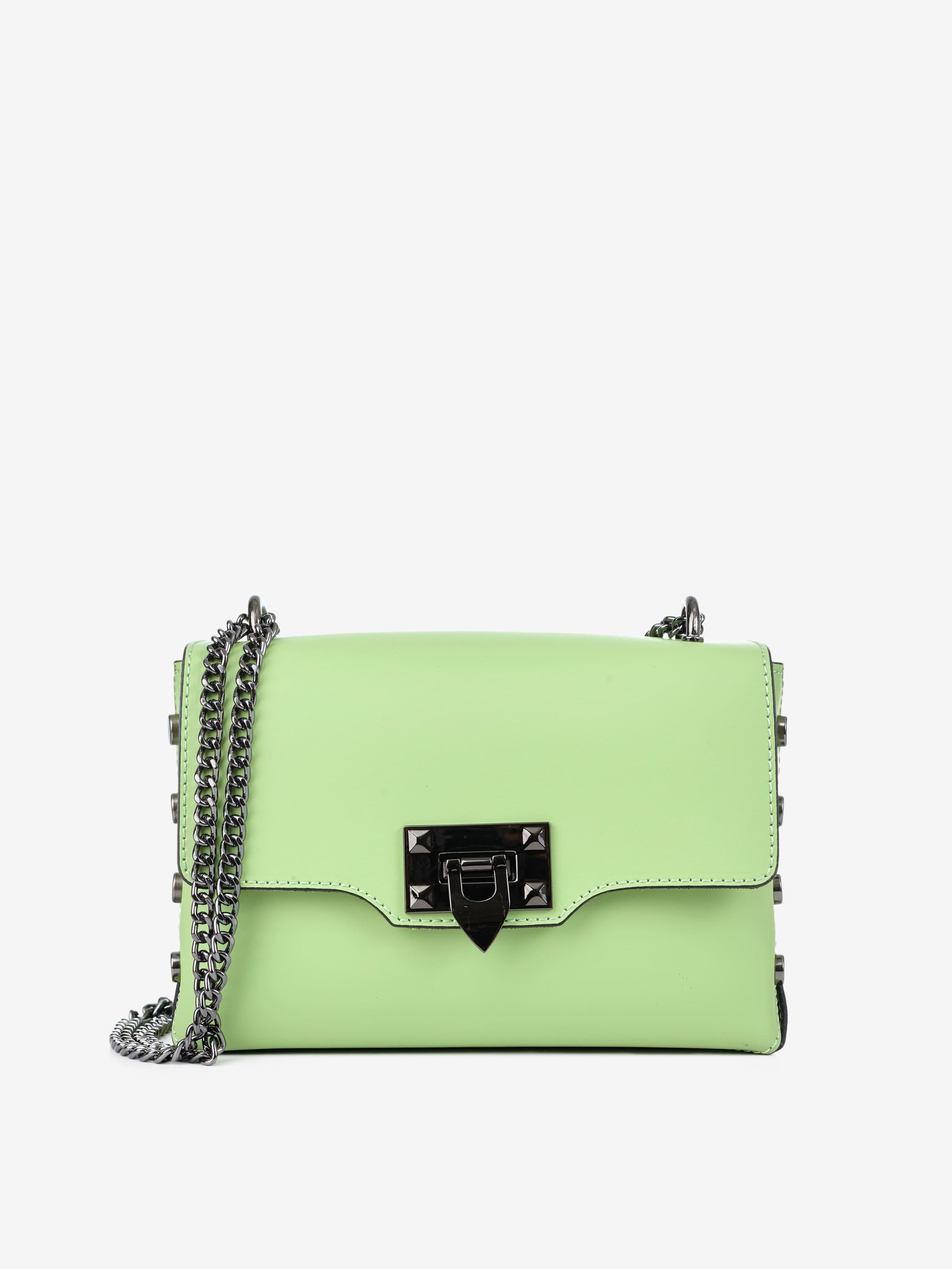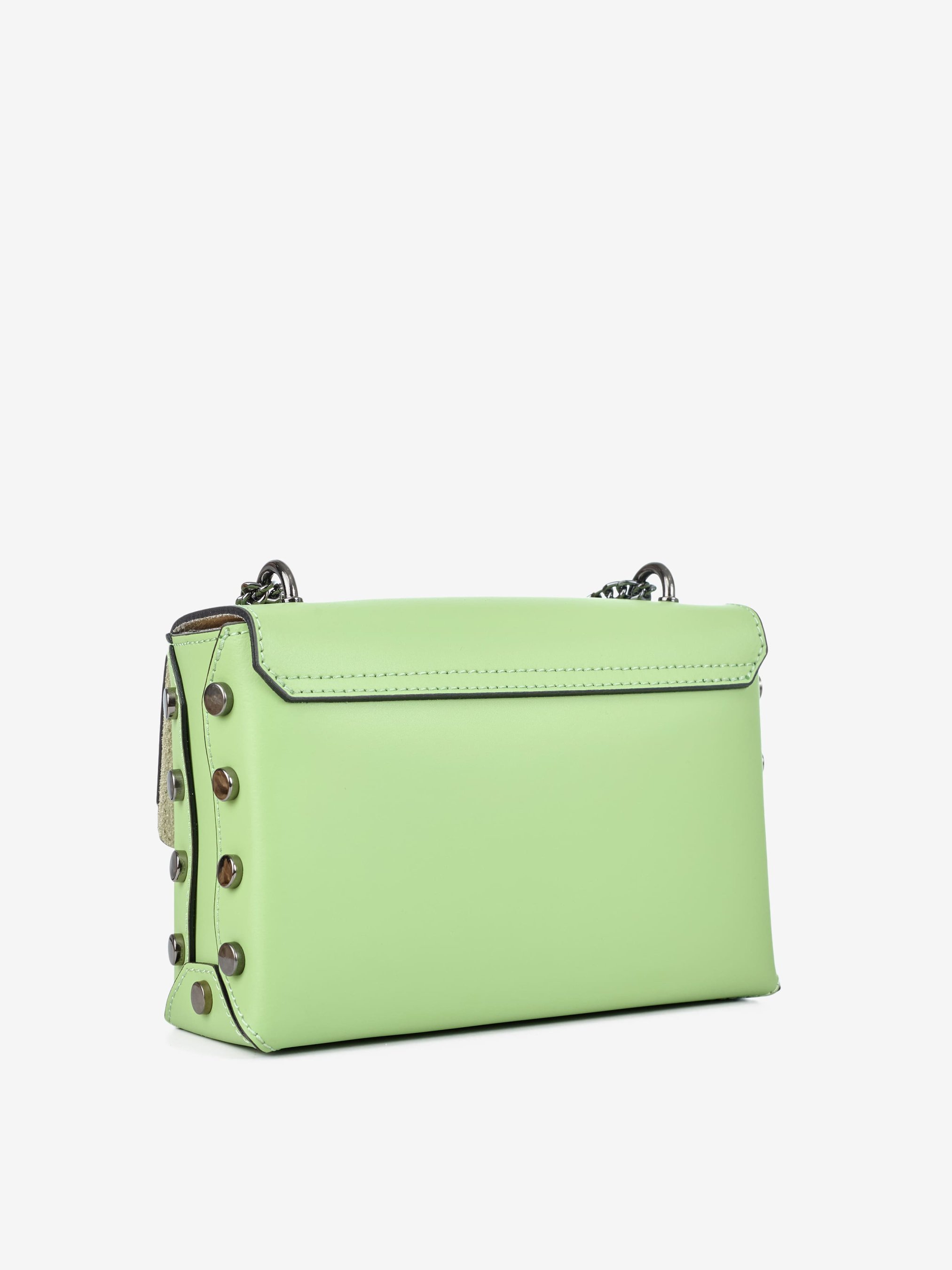 Деталі: Матеріал: 100% натуральна шкіра Шкіра має гладку фактуру Фурнітура чорного кольору Розміри (Ш x В x Г) – 22 x 14 x 7 см Усередині 1 відділення та 1 кишенька для дрібниць на блискавці Підкладка: 100% бавовна Застібка: блискавка, клапан на кліпсі Сумка на ланцюжках, що регулюються по довжині, максимальна висота ланцюжка 56 см