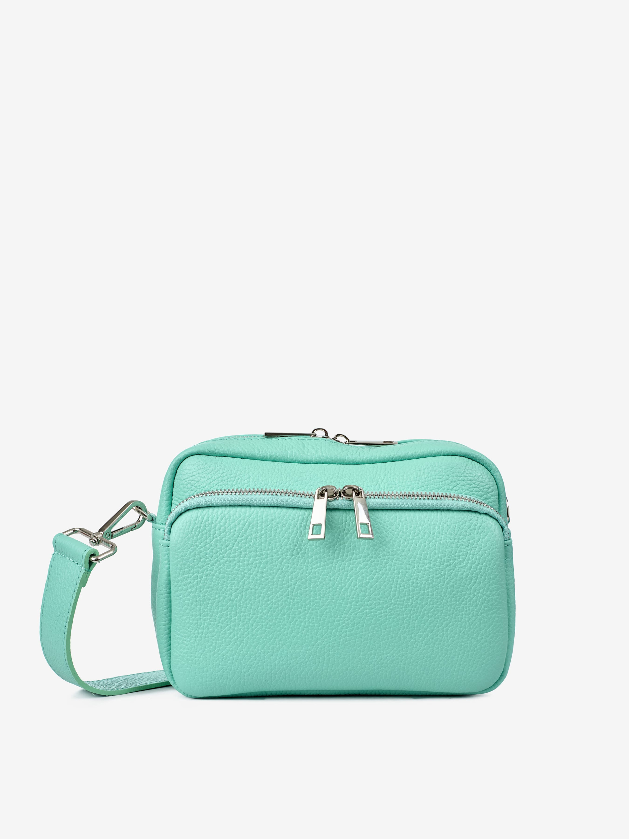 Деталі: Матеріал: 100% натуральна шкіра Шкіра має фактуру флотар Фурнітура сріблястого кольору Розміри (Ш x В x Г) - 22 x 16 x 8 см; Всередині 1 відділення та 1 кишенька для дрібниць без застібки. Попереду кишенька на блискавці Підкладка: 100% бавовна Застібка: блискавка У комплекті ремінець для носіння на плечі (шкіряний, знімний на карабінах, регулюється, максимальна довжина 110 см)