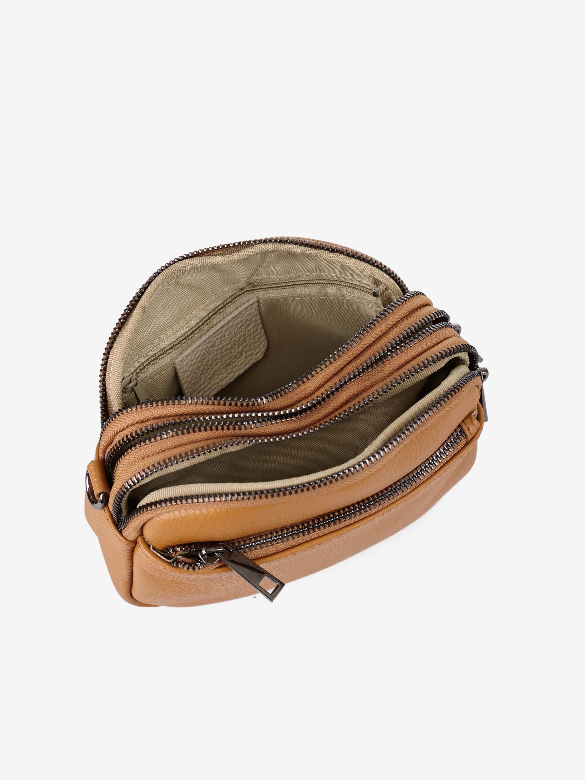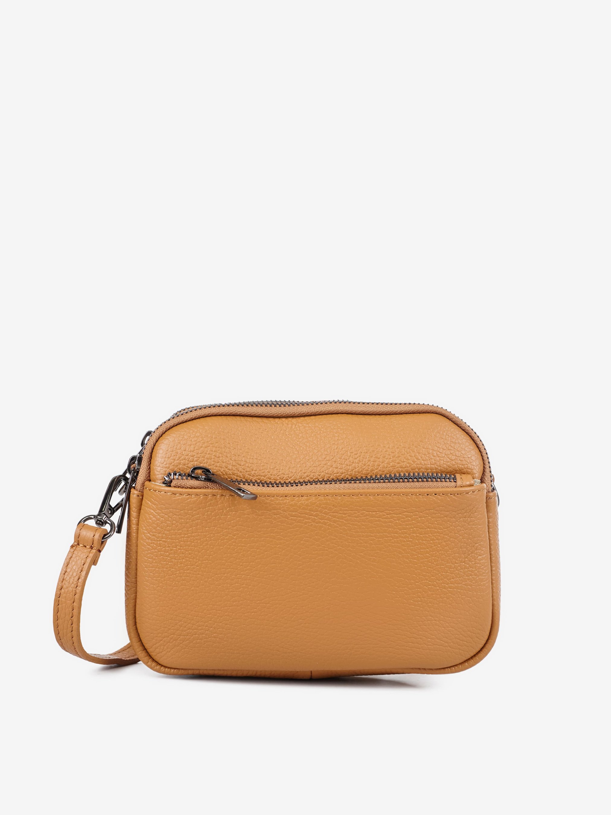 Деталі: Матеріал: 100% натуральна шкіра флотар Фурнітура чорного кольору Розміри (Ш x В x Г) – 20 x 14 x 6 см Усередині 3 відділення на блискавці, та кишенька для дрібниць на блискавці Спереду кишенька на блискавці Підкладка: бавовна Застібка: блискавка Ремінець шкіряний, знімний, регулюється, максимальна довжина 120 см