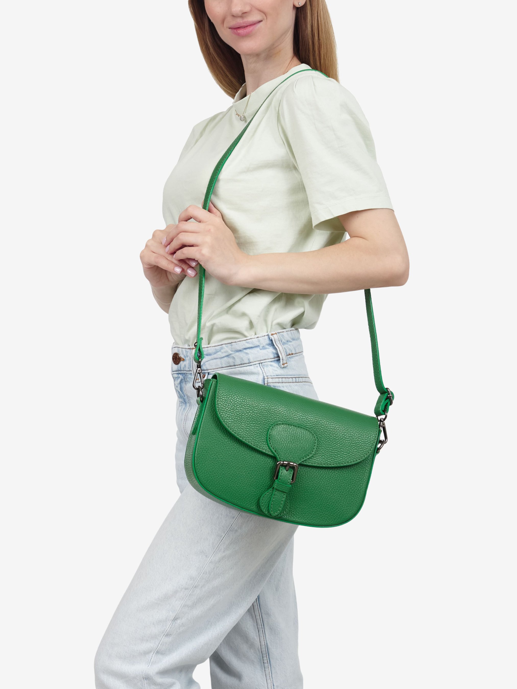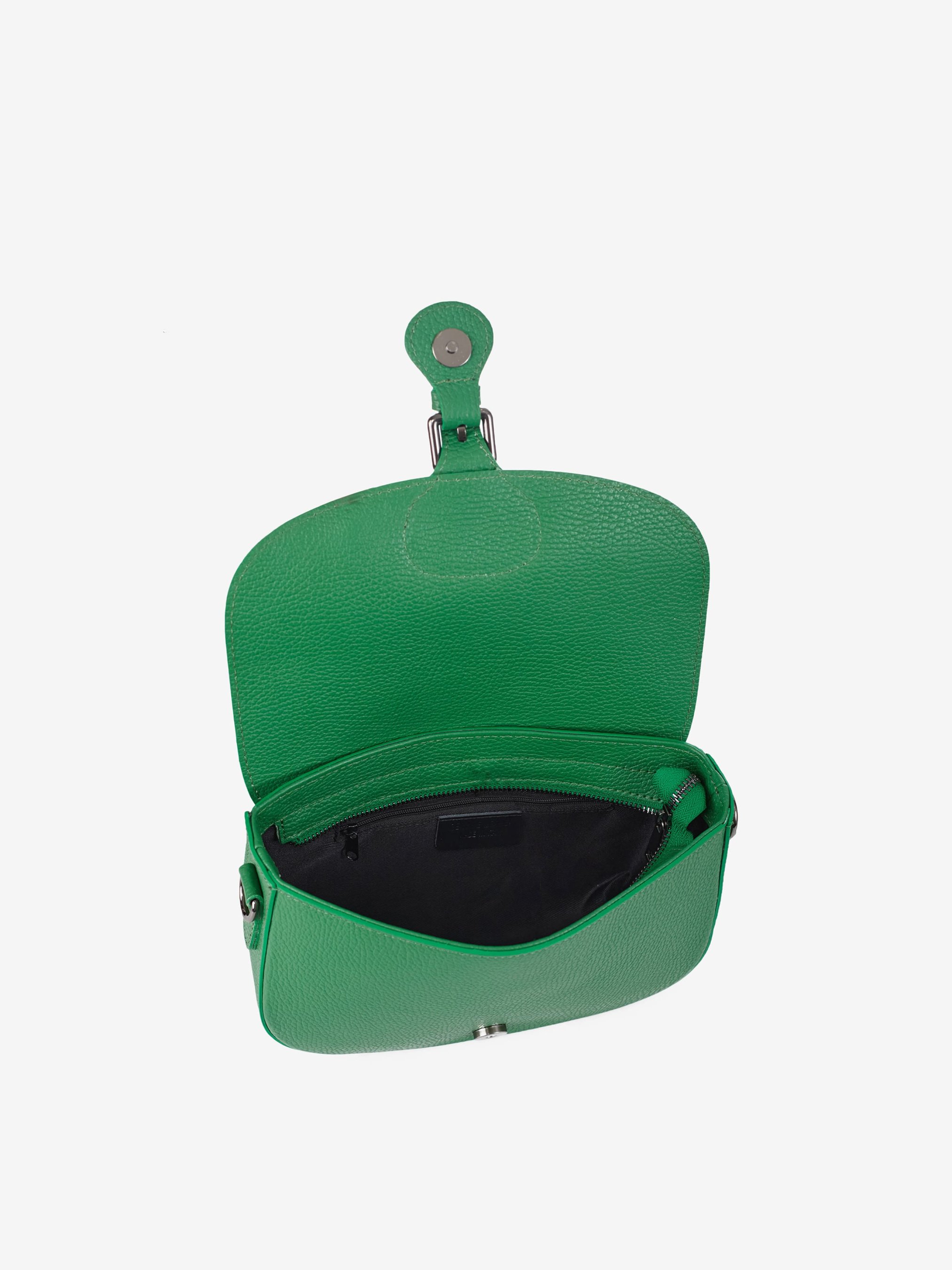 Деталі: Матеріал: 100% натуральна шкіра флотар Фурнітура чорного кольору Розміри (Ш x В x Г) - 25 х 16 х 7 см Усередині 1 відділення та кишенька на блискавці Підкладка: бавовна Застібка: блискавка, клапан на магніті Ремінець шкіряний, знімний, регулюється, максимальна довжина 105 см Ручка знімна, висота 27 см