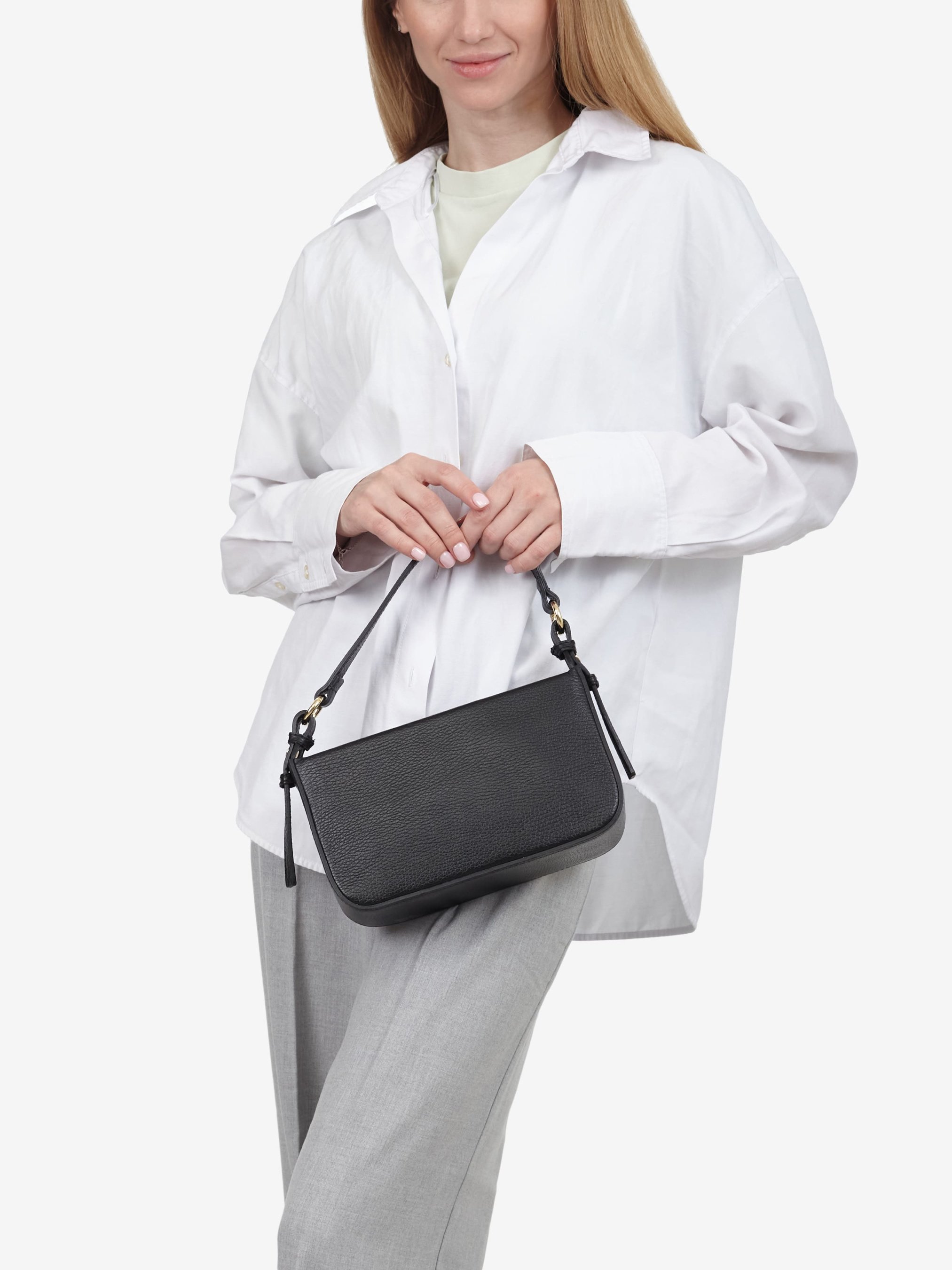 Деталі: Матеріал: 100% натуральна шкіра флотар Фурнітура золотистого кольору Розміри (Ш x В x Г) - 23 х 13 х 8 см Усередині 1 відділення та кишенька на блискавці Підкладка: бавовна Спереду кишенька без застібки Застібка: блискавка Ремінець шкіряний, знімний, регулюється, максимальна довжина 125 см Ручка знімна, висота 15 см