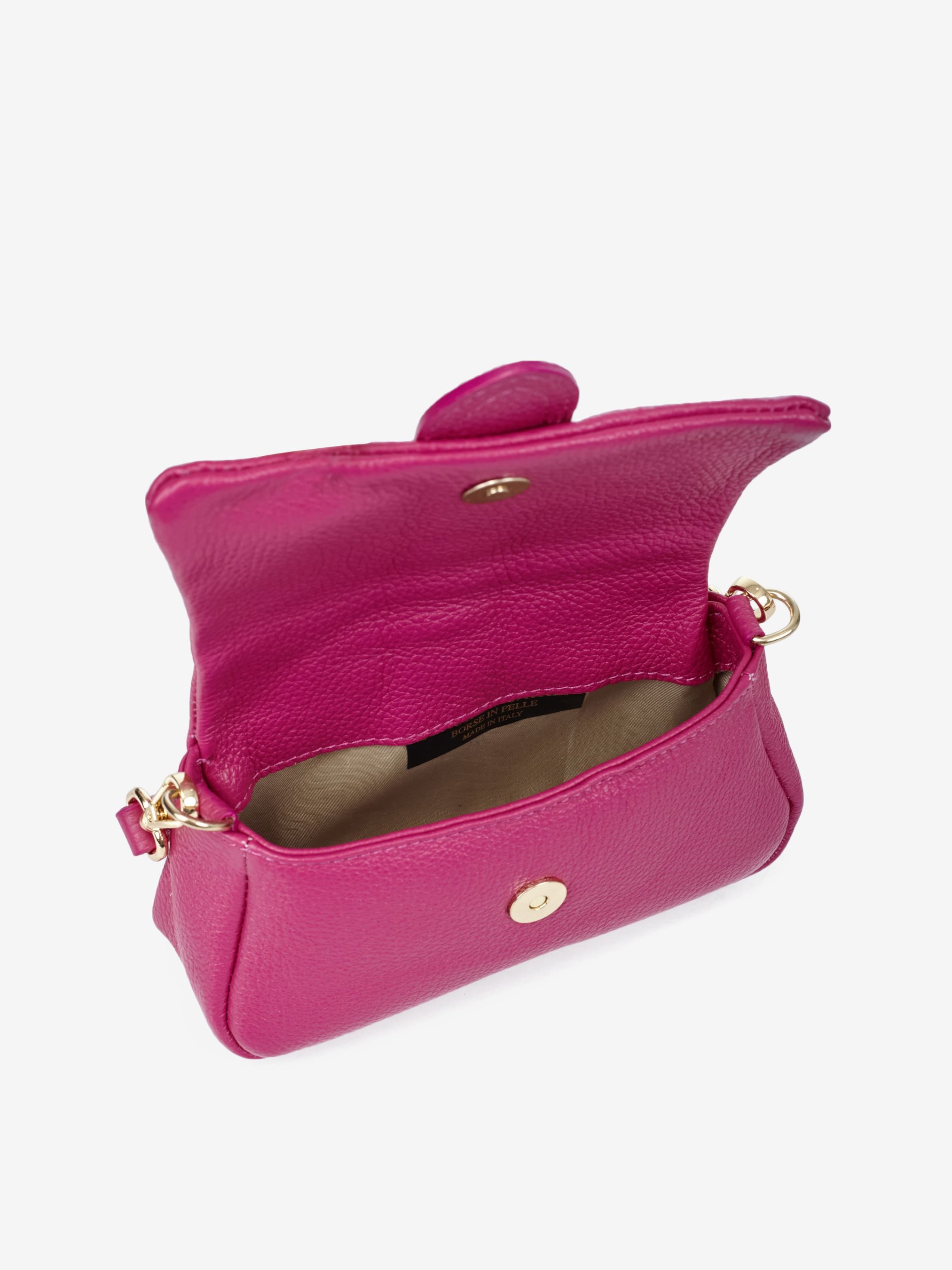 Деталі: Матеріал: 100% натуральна шкіра флотар Фурнітура золотистого кольору Розміри (Ш x В x Г) - 20 х 10 х 6 см Усередині 1 відділення Підкладка: бавовна Застібка: клапан на магніті Ремінець комбінований ланцюжок зі шкіряною вставкою, знімний, не регулюється, максимальна довжина 110 см Ручка знімна, висота 12 см