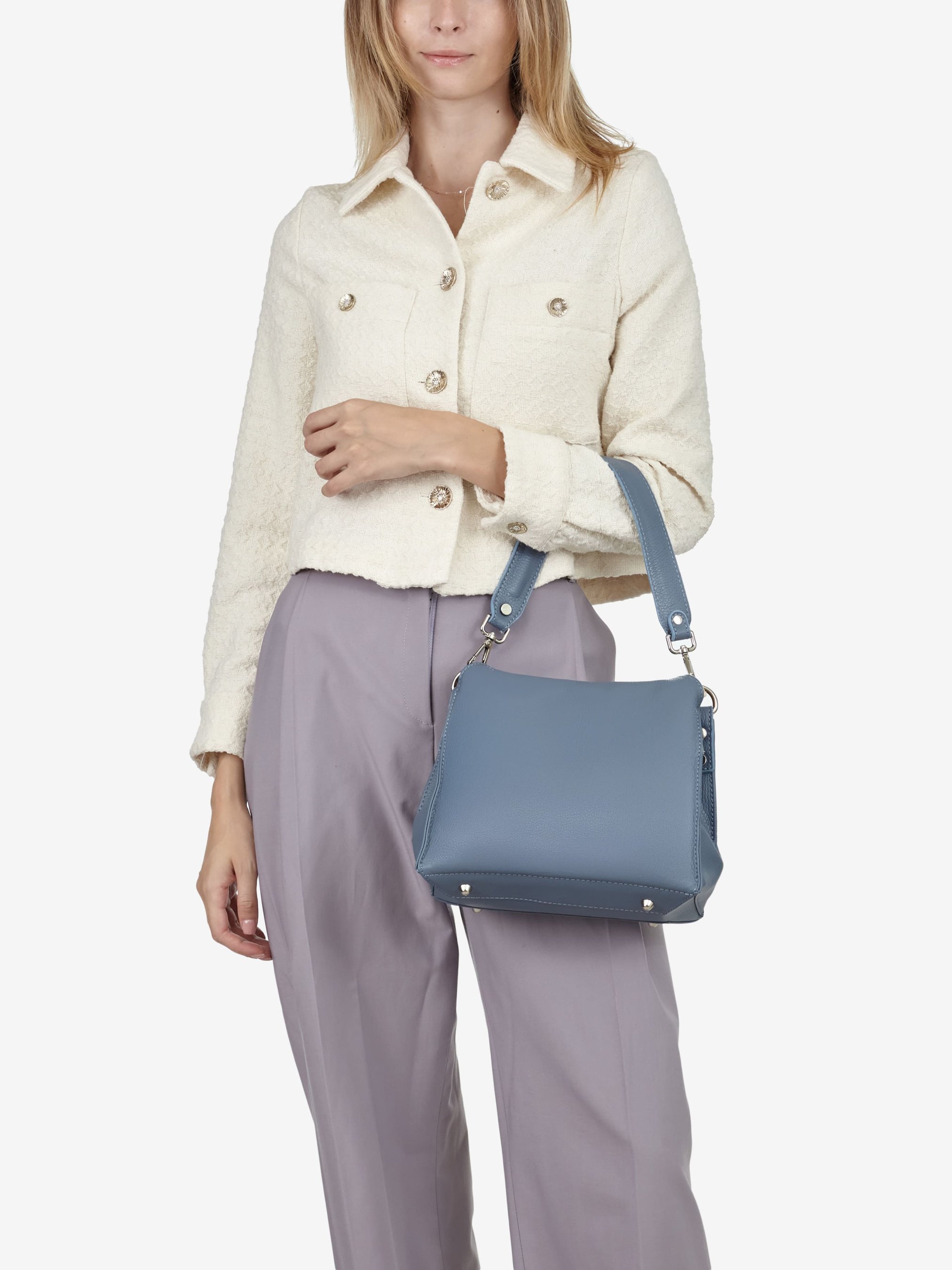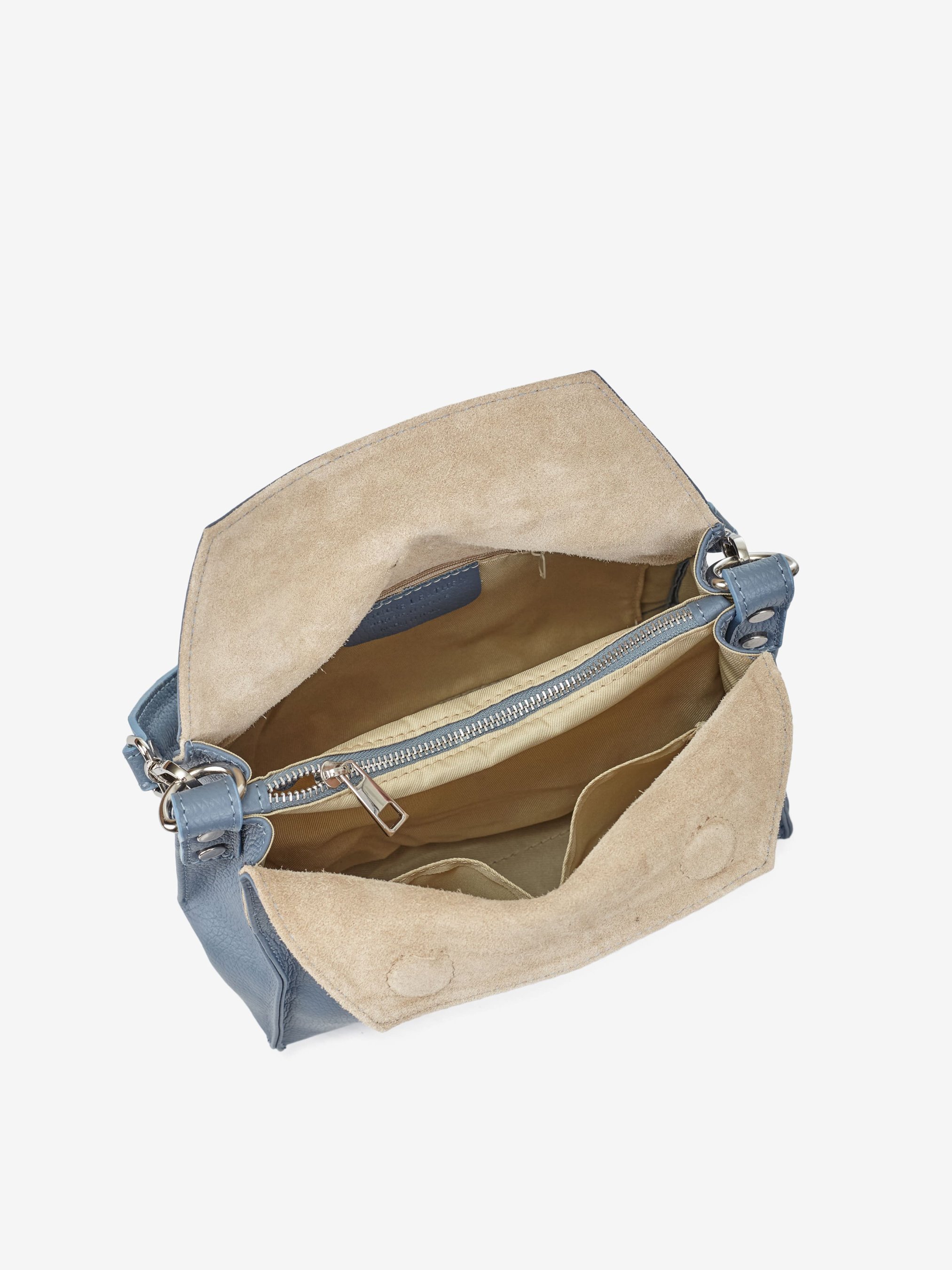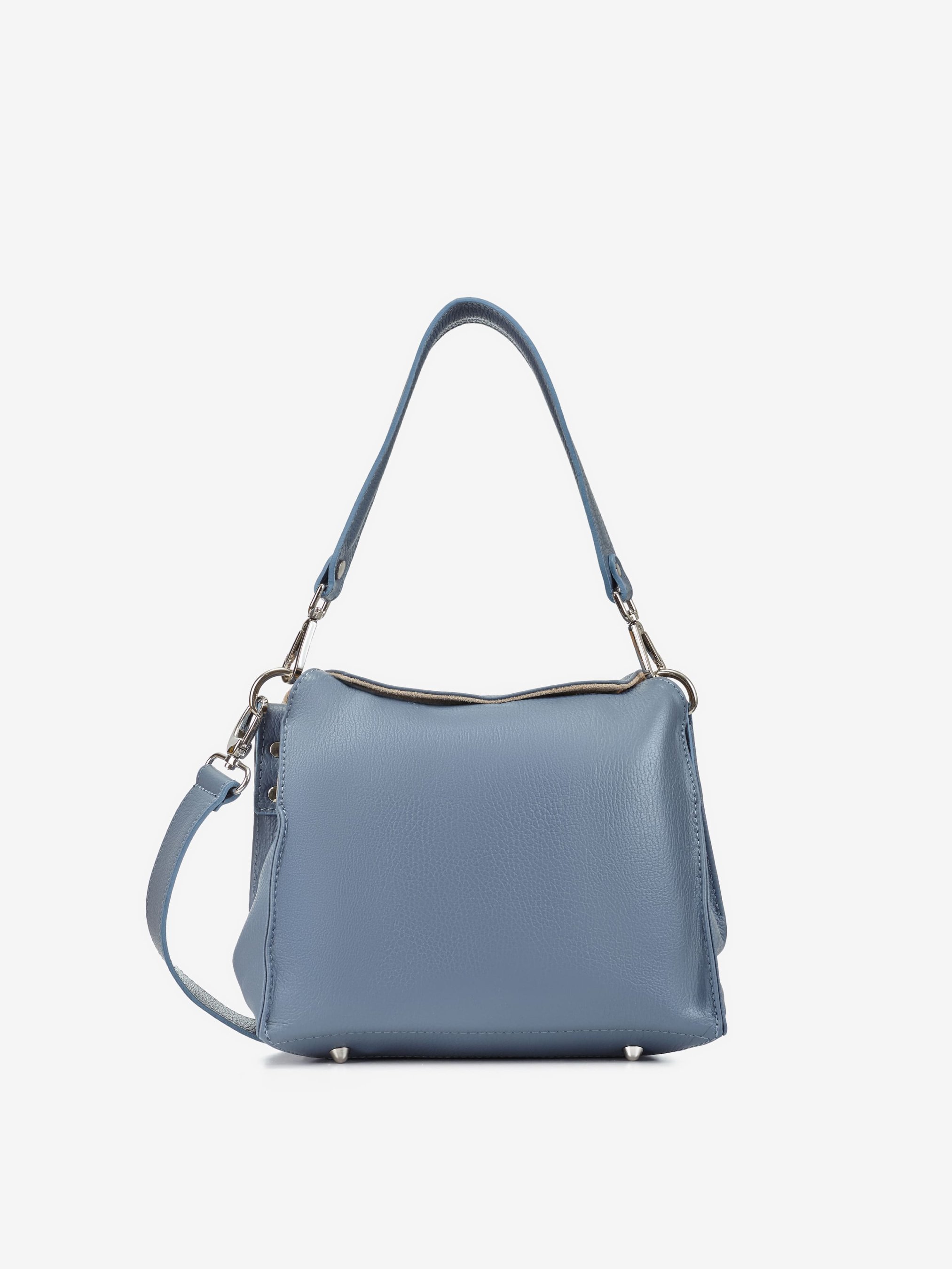 Деталі: Матеріал: 100% натуральна шкіра флотар Фурнітура сріблястого кольору Розміри (Ш x В x Г) - 25 х 20 х 13 см Усередині 2 відділення, розділені кишенею на блискавці та 3 кишеньки для дрібниць, одна з них на блискавці Підкладка: бавовна, замш Застібка: магніти Два знімні ремінці: один короткий широкий довжиною 45 см і довгий ремінець регулюється, максимальна довжина 110 см