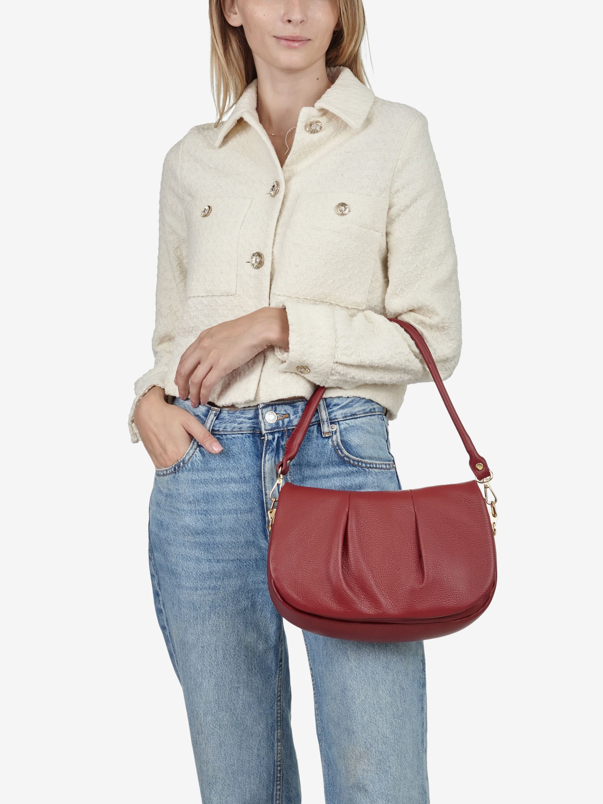 Деталі: Матеріал: 100% натуральна шкіра флотар Фурнітура золотистого кольору Розміри (Ш x В x Г) - 29 х 18 х 10 см Всередині 1 відділення та кишенька для дрібниць на блискавці Підкладка: бавовна Застібка: блискавка, клапан на магніті Висота ручки 25 см Ремінець шкіряний, регулюється, знімний, максимальна довжина 115 см