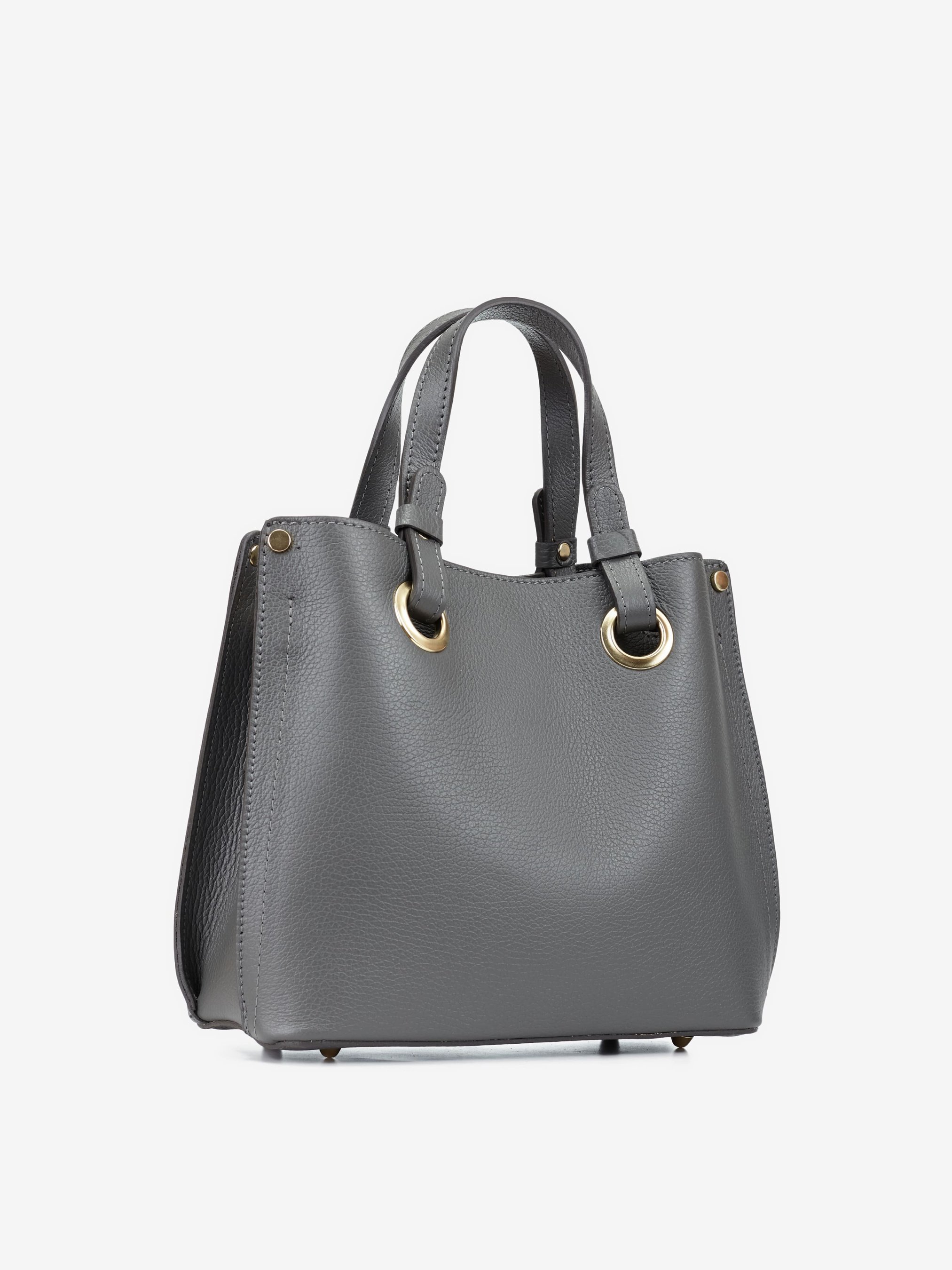 Деталі: Матеріал: 100% натуральна шкіра флотар Фурнітура золотистого кольору Розміри (Ш x В x Г) – 28 x 22 x 12 см Усередині 3 відділення, одне з них на блискавці та 2 на магніті, та кишенька для дрібниць на блискавці Підкладка: бавовна, відсутня Застібка: блискавка, магніт Ремінець шкіряний, знімний, не регулюється, максимальна довжина 110 см Висота ручок 12 см