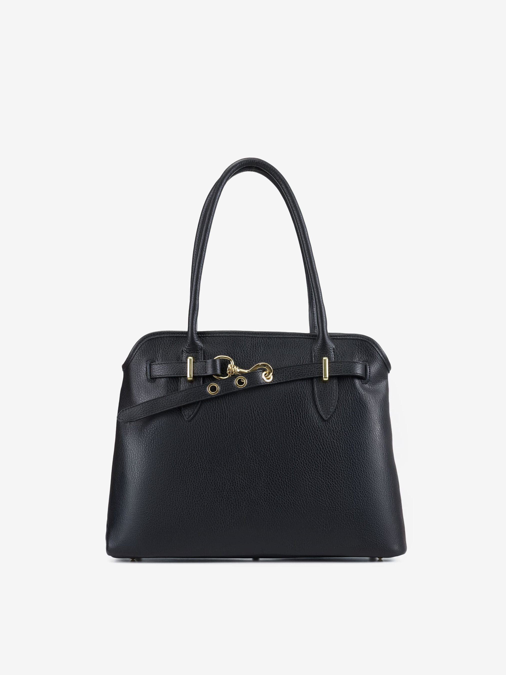 Деталі: Матеріал: 100% натуральна шкіра флотар Фурнітура золотистого кольору Розміри (Ш x В x Г) – 37 x 28 x 12 см Усередині 1 відділення та 3 кишеньки, одна з них на блискавці Підкладка: бавовна Застібка: блискавка Висота ручок 20 см