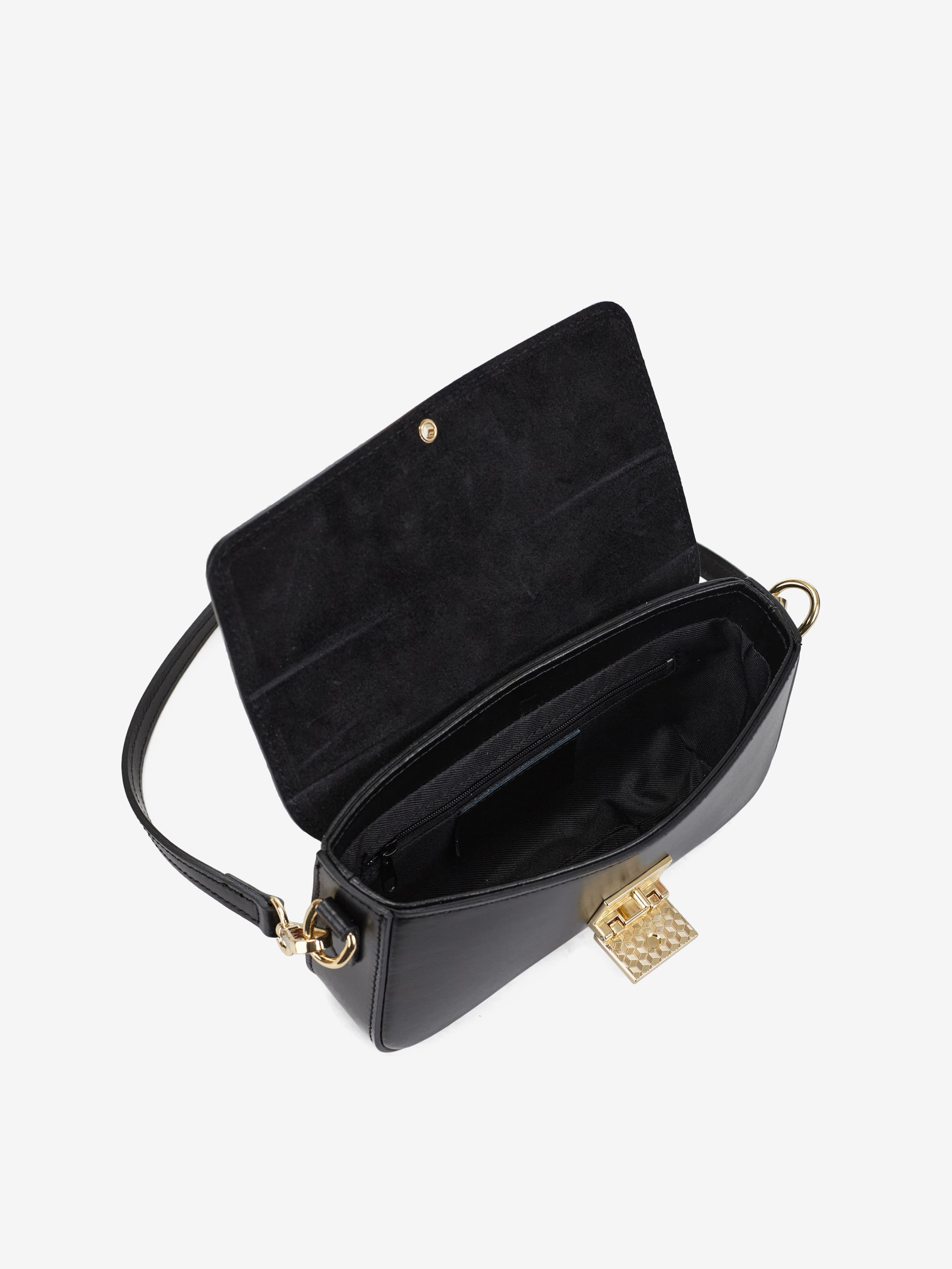 Деталі: Матеріал: 100% натуральна шкіра флотар Фурнітура золотистого кольору Розміри (Ш x В x Г) – 22 x 12 x 5 см Усередині 1 відділення та кишенька на блискавці Підкладка: бавовна Застібка: клапан на відкидному замку Ручка знімна, висота ручки 28 см Ремінець шкіряний, знімний, регулюється, максимальна довжина 110 см