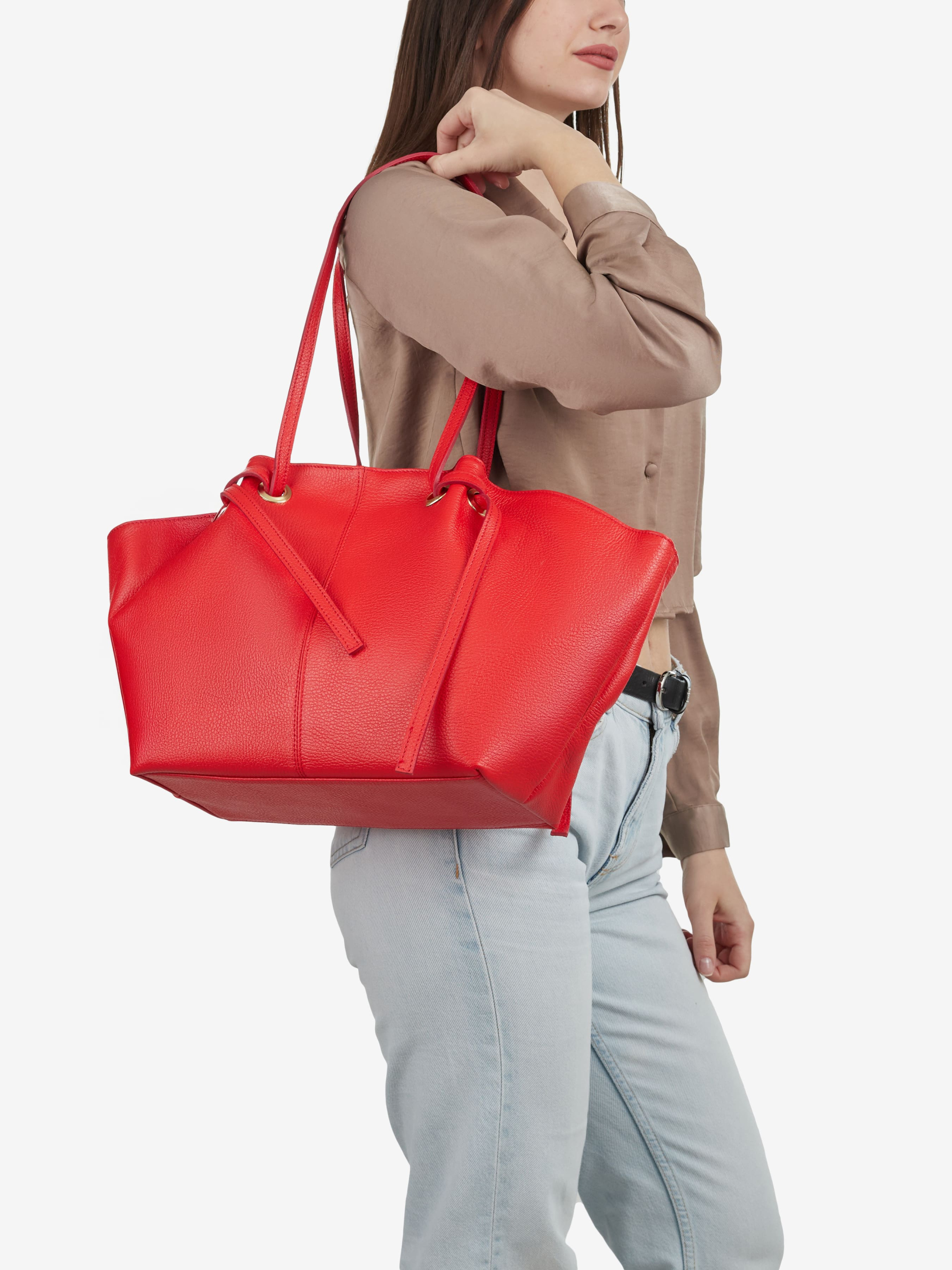 Деталі: Матеріал: 100% натуральна шкіра флотар Фурнітура золотистого кольору Розміри (Ш x В x Г) – 40 x 26 x 15 см Усередині 2 відділення розділені кишенею на блискавці та кишеньки на блискавці Підкладка: бавовна Застібка: магніт Висота ручок 27 см
