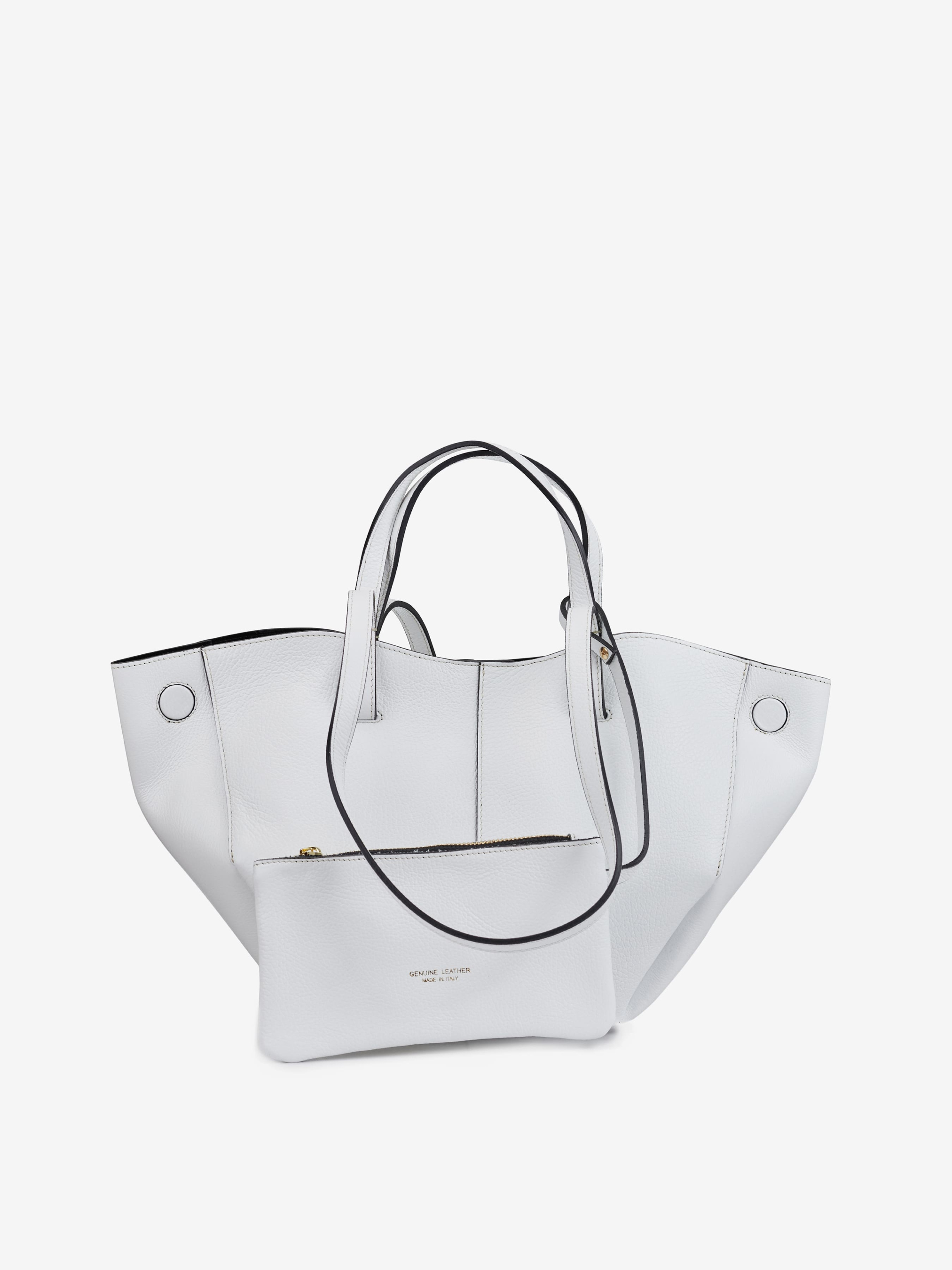 Деталі: Матеріал: 100% натуральна шкіра флотар Фурнітура золотистого кольору Розміри (Ш x В x Г) – 40 x 22 x 10 см Всередині 1 відділення та косметичка на блискавці Підкладка: замша Застібка: магніт Висота ручок коротких 12 см, довгих – 30 см.