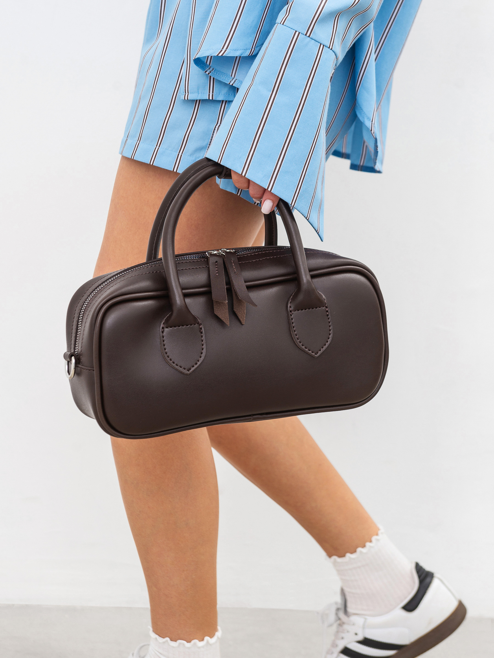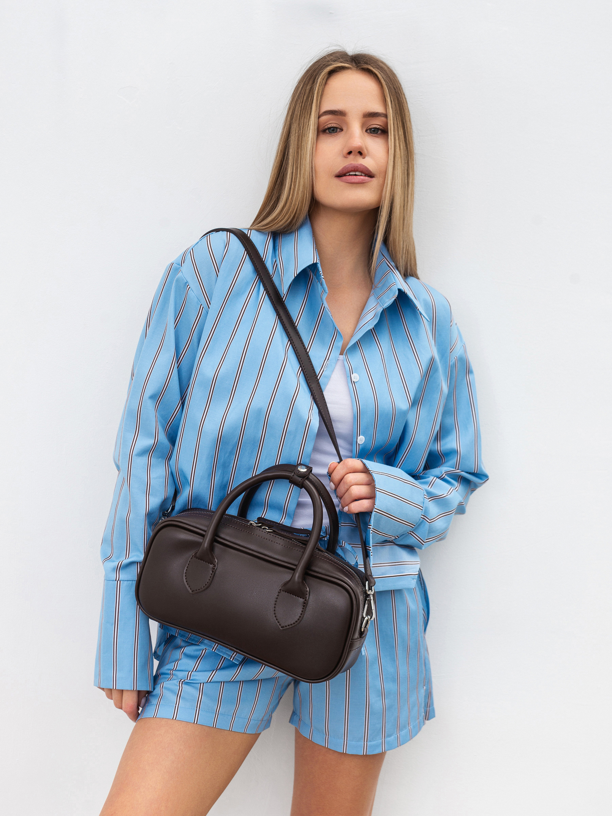 Сумка кросс-боді "Міка" вмісткого розміру, що поєднує стиль і зручність. Вона оснащена короткими ручками для носіння в руках і довгим ремінцем з регулятором, що дозволяє змінювати довжину та носити сумку через плече. Фурнітура з нікелю додає елегантного вигляду та підкреслює сучасний стиль. Усередині сумки є підкладка, яка захищає ваші речі, а також кілька кишень, що допомагають організувати простір і зберігати важливі предмети в порядку. Завдяки своєму універсальному дизайну сумка підходить для будь-якої нагоди і стане чудовим доповненням до вашого щоденного образу. Довжина: 29 см Висота : 14 см Ширина : 9 см