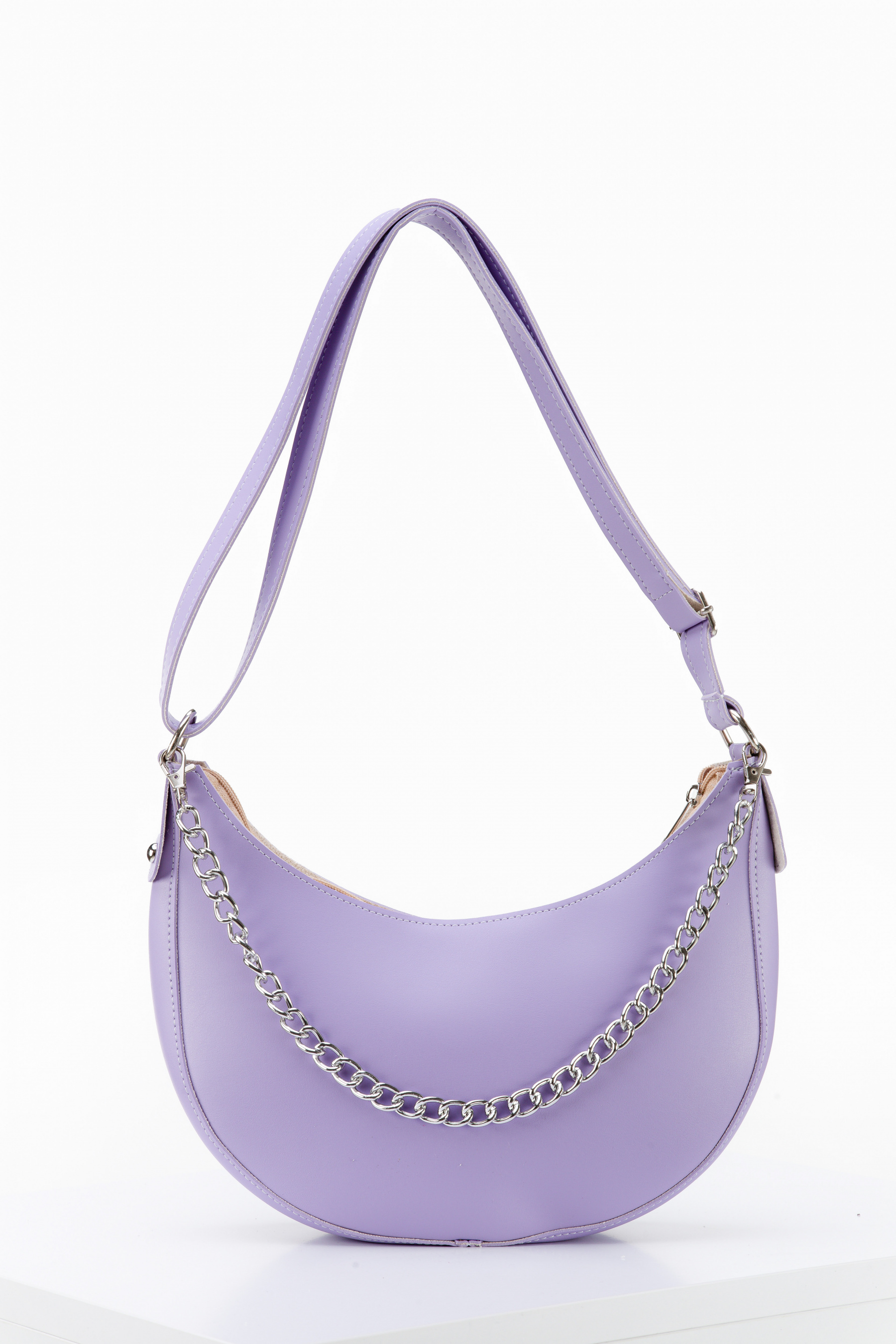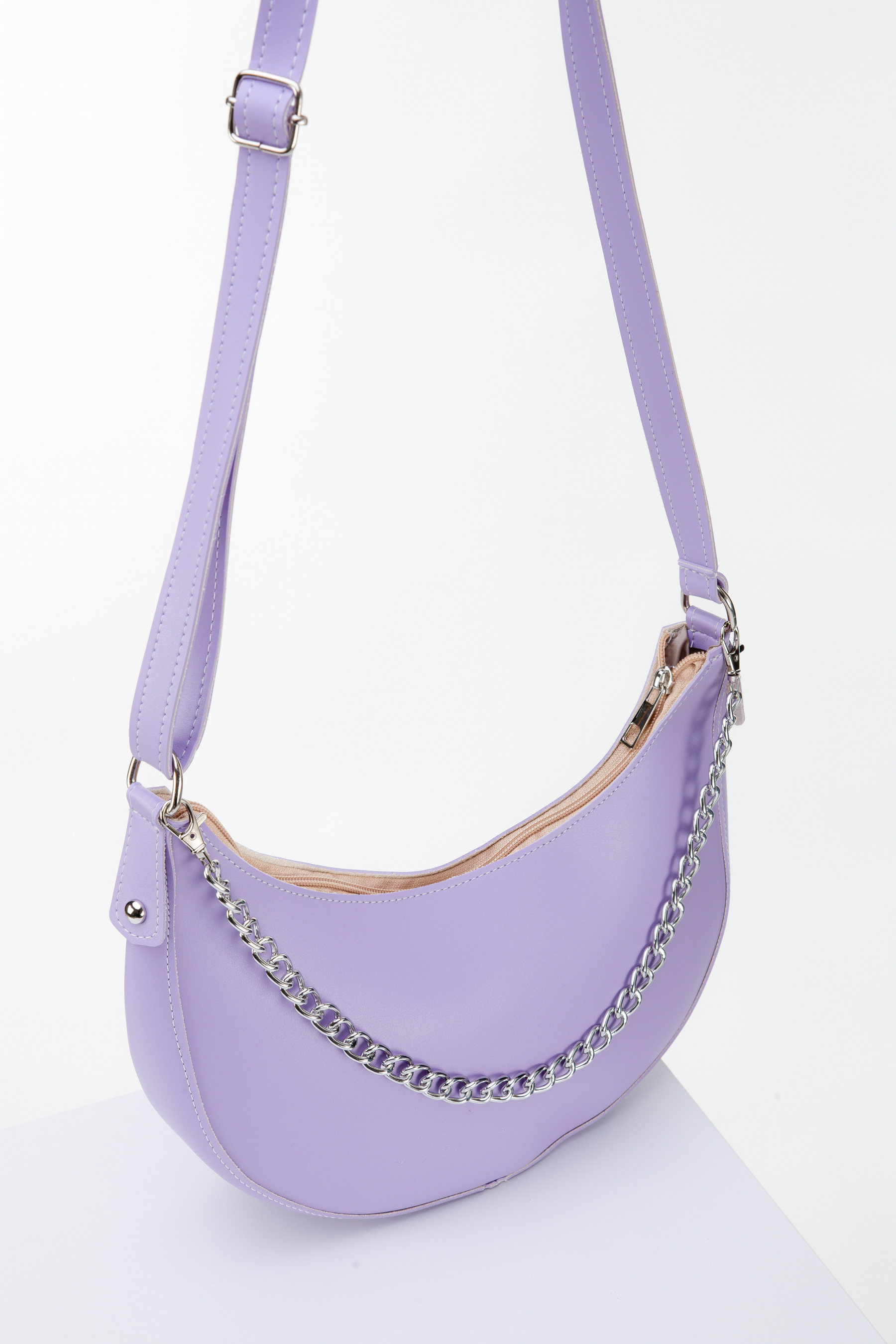 Напівкругла модель. Ланцюжок знімається. Виробник Україна. Розміри: макс. довжина 28 х макс. висота 21 ширина 7,5 см. Довгий ремінець з регулятором - + 105 см. Всередині тканинна підкладка і дрібні кишеньки.