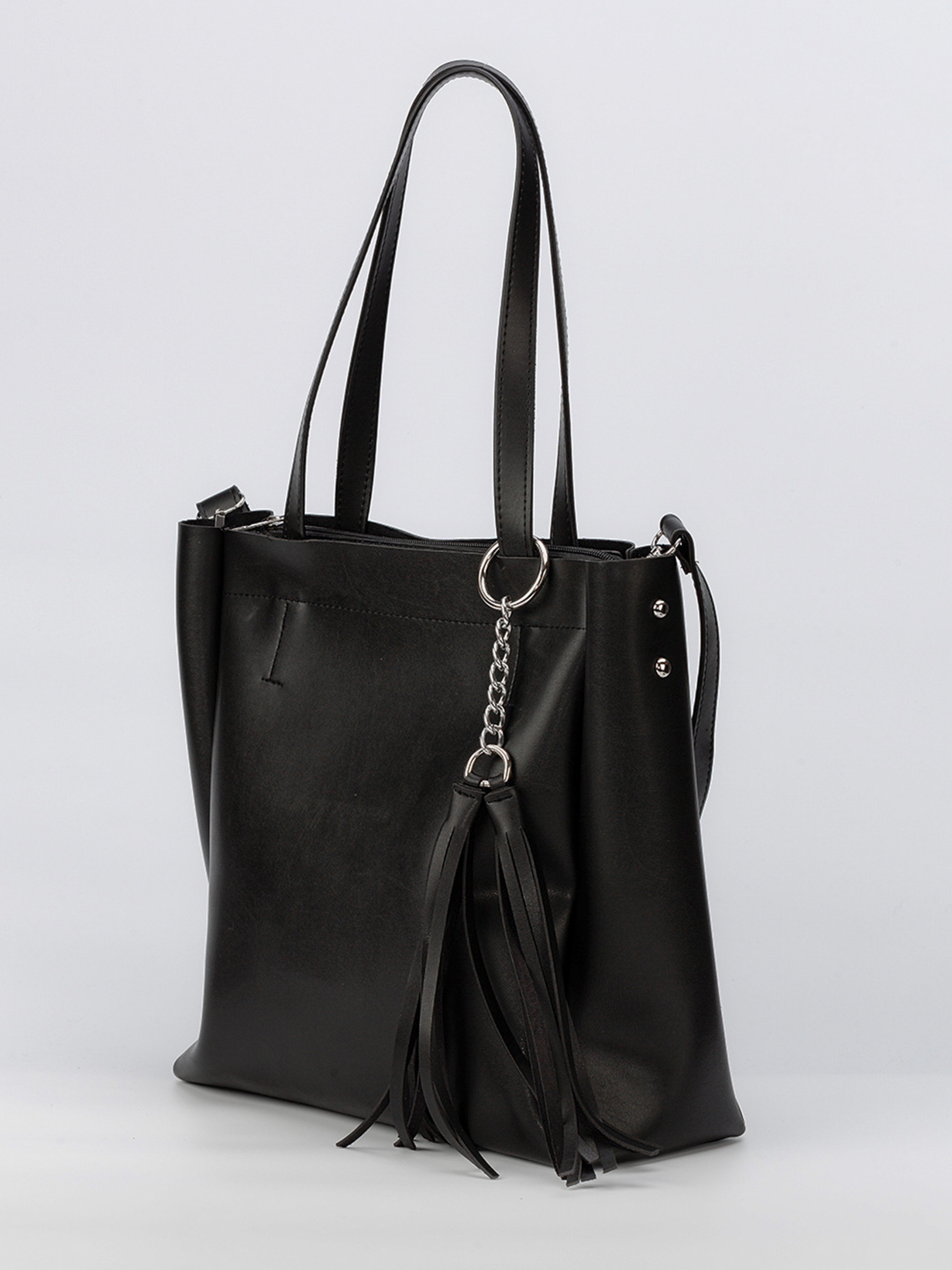Шоппер з пензликами з довгими ручками та ременем у комплекті. Універсальна модель місткого шоппера 2 в 1. Можна носити як на навчання/роботу, так і в повсякденних образах. У комплекті є невеликий клатч та довгий широкий ремінець. Клатч можна носити окремо. Розміри: 31х30, клатч 24х18 см.