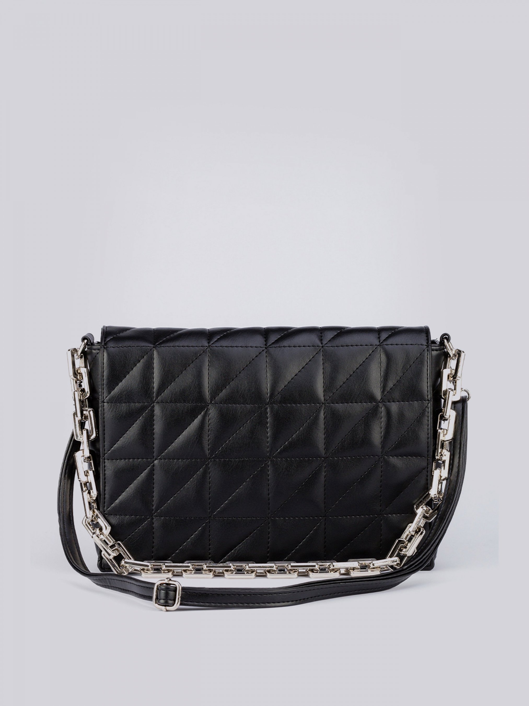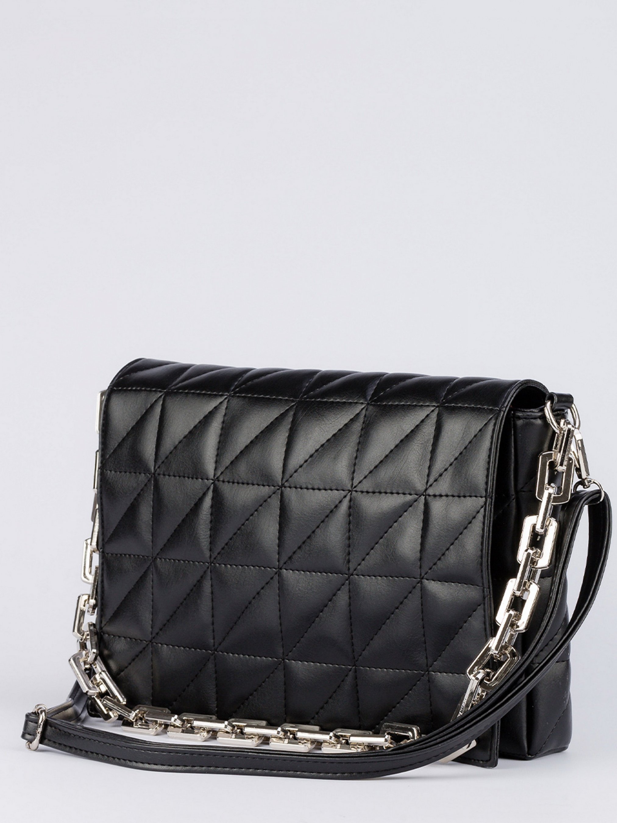 Сумка "Клер" містка прямокутної форми ROMASHKA Відмінно підійде для образів з піджаком, тренчем або пальто. Розбавити стриманість зможе тандем ланцюга-ремінця і додаткових прикрас. Сумка прямокутної форми, ручка оформлена ланцюгом. Зовні прошита візерунками. Усередині одне відділення і кілька кишень, один на блискавці. Одна з новинок у сучасних трендах. Сумка, яка стильно доповнить образ, ще й містка. Розміри: довжина 31 см, висота 23 см, ширина 6 см.