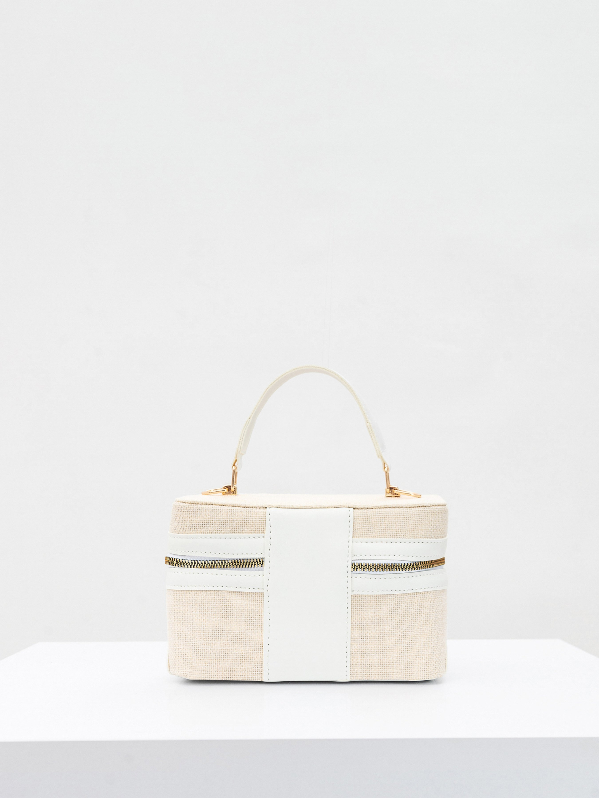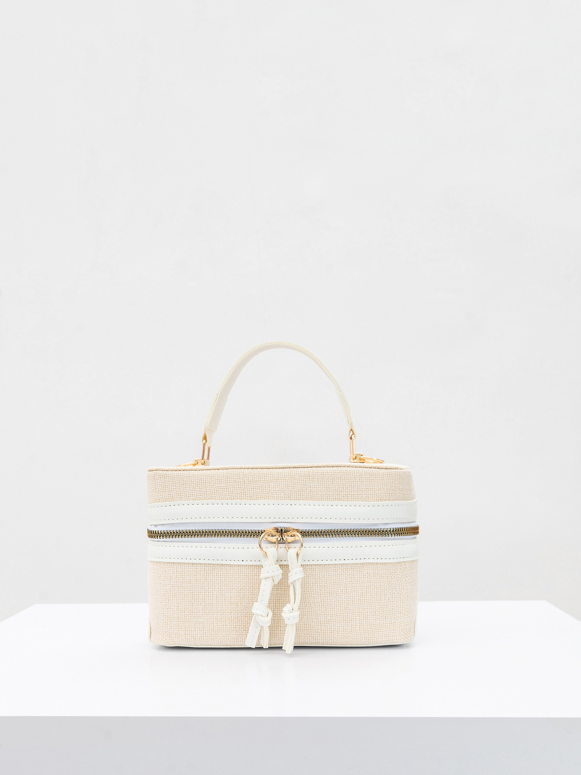 Сумка з комбінацією матеріалів. Модель має форму косметички. У комплекті є довгий ремінець. Поєднання мішковини і еко шкіри. Фурнітура золотого кольору. Додаткового всередині є тканина підкладка та кілька кишень. Добре тримає форму. Мінімалістичний варіант для літніх луків із легкими сукнями, сорочками тощо.) Заміри:- Довжина: 20 см, Ширина: 7 см, Висота: 13 см.