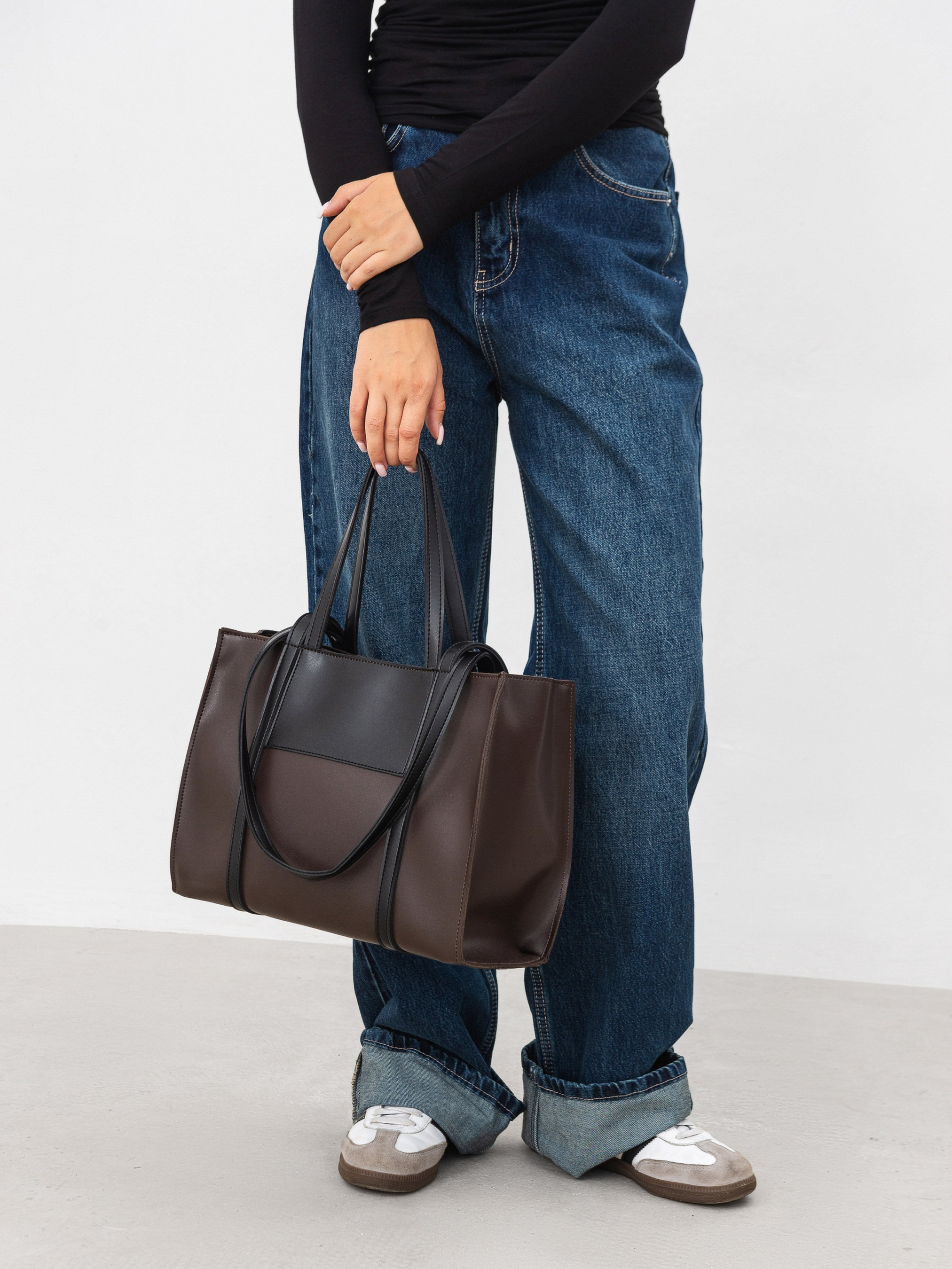 Вмісткий шопер на кожен день. Прямокутна форма. Виготовлений з гладкої та приємної на дотик екошкіри. Застібаєтся на блискавку. Всередині є підкладка. У комплекті є ручки довші та коротші для комфортного носіння на плечі чи в руках. Дана модель легко комбінується з повсякденним одягом. Ідеально підійде для поїздок.