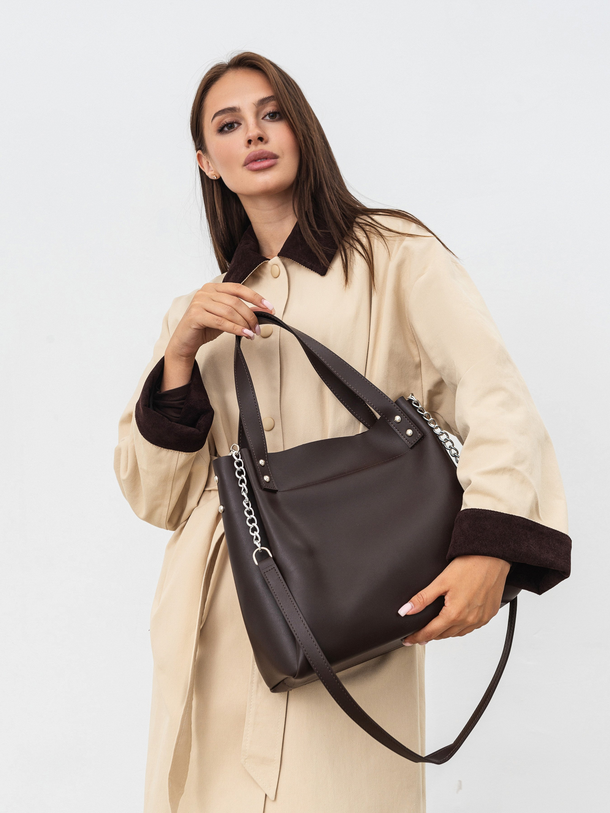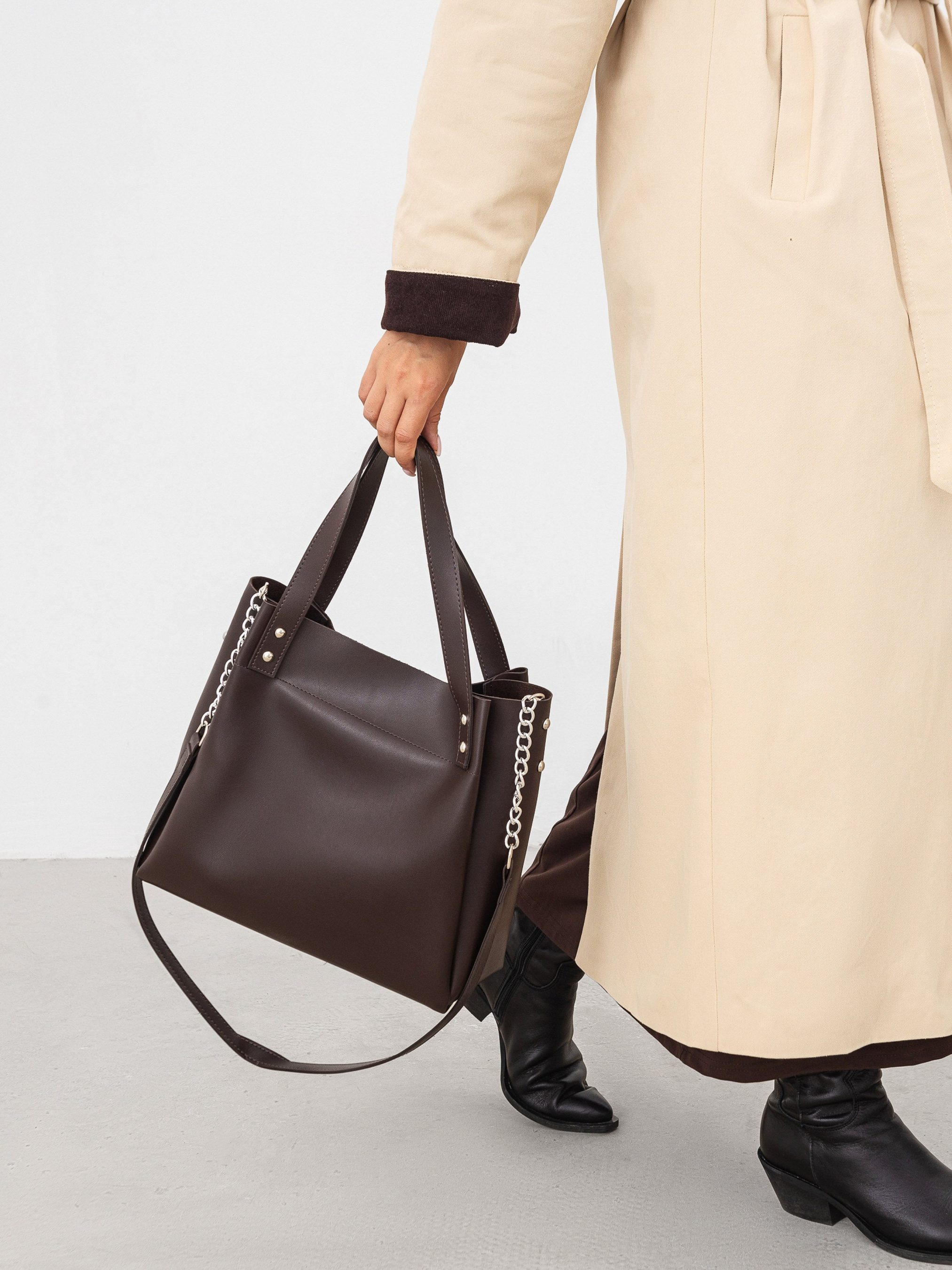 Шопер "Ейвері" на блискавки ROMASHKA Якщо ви шукали стильний і місткий варіант сумки, то це він. Шоппер всередині на тканинній підкладці. Також є кишені. Основний відділ і кишеня ззаду застібаються на блискавку. Ручки доповнені ланцюгами. Актуальний варіант на будь-який сезон та під будь-який образ. Підійде для повсякденного носіння в офіс або школу, для прогулянок по місту і навіть на пляж! Базовий і зручний варіант. Базовий і зручний варіант. Довжина 30 см, висота 28 см, ширина 14 см