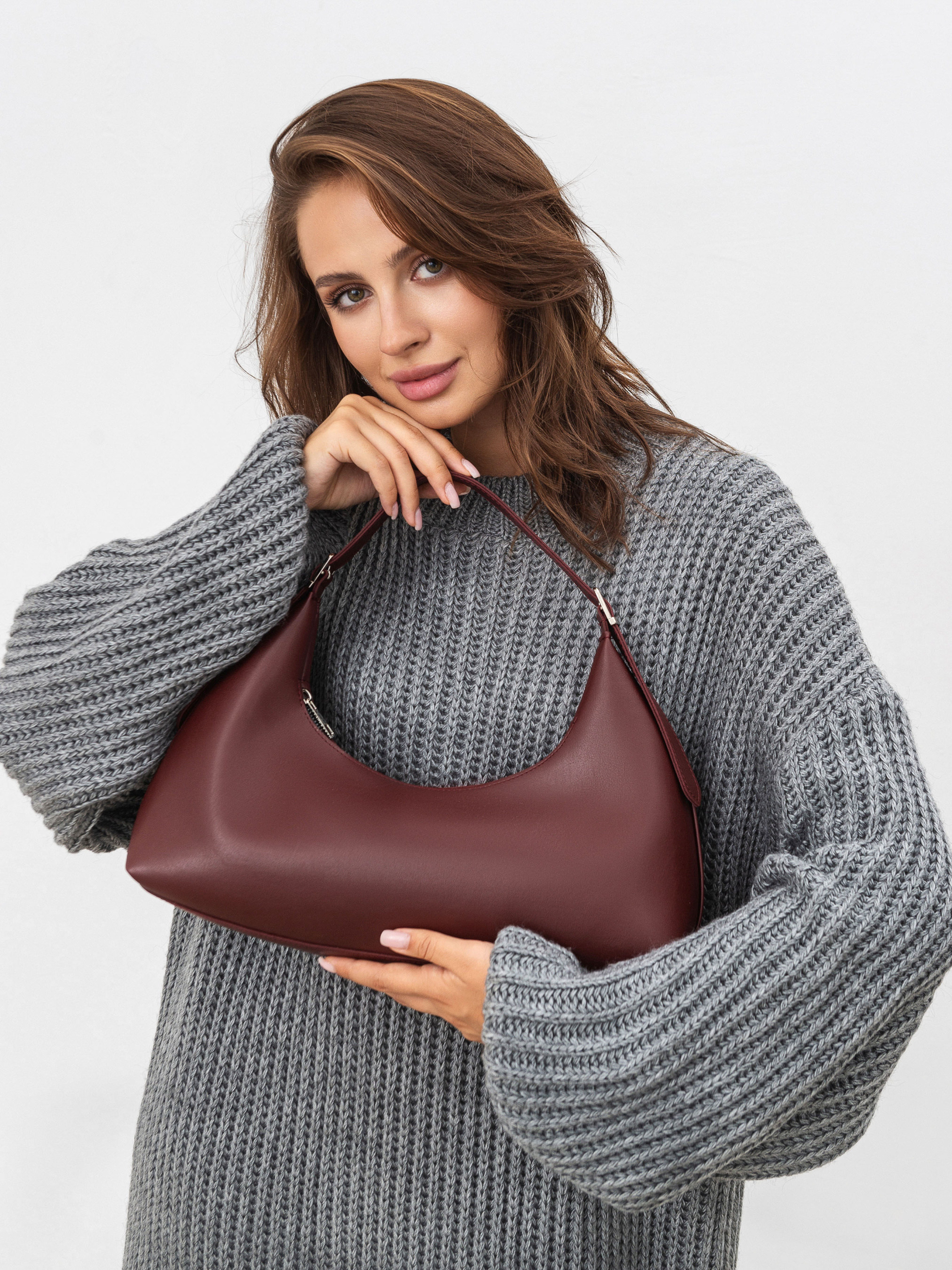 Трендова сумка фасону хобо середнього розміру. Модель має широке дно, тому вона містка й комфортна, якщо потрібно в офіс, роботу тощо. Всередині є текстильна підкладка. Є додаткові кишені: на одній стінці з блискавкою, на іншій без. Ручка має регулятори, тому довжину ремінця можна корегувати під себе. Ідеальна для робочих буднів або довгої прогулянки. Вмістить усе необхідне та влучно доповнить образ. Ширина - 40 см Висота - 25 см