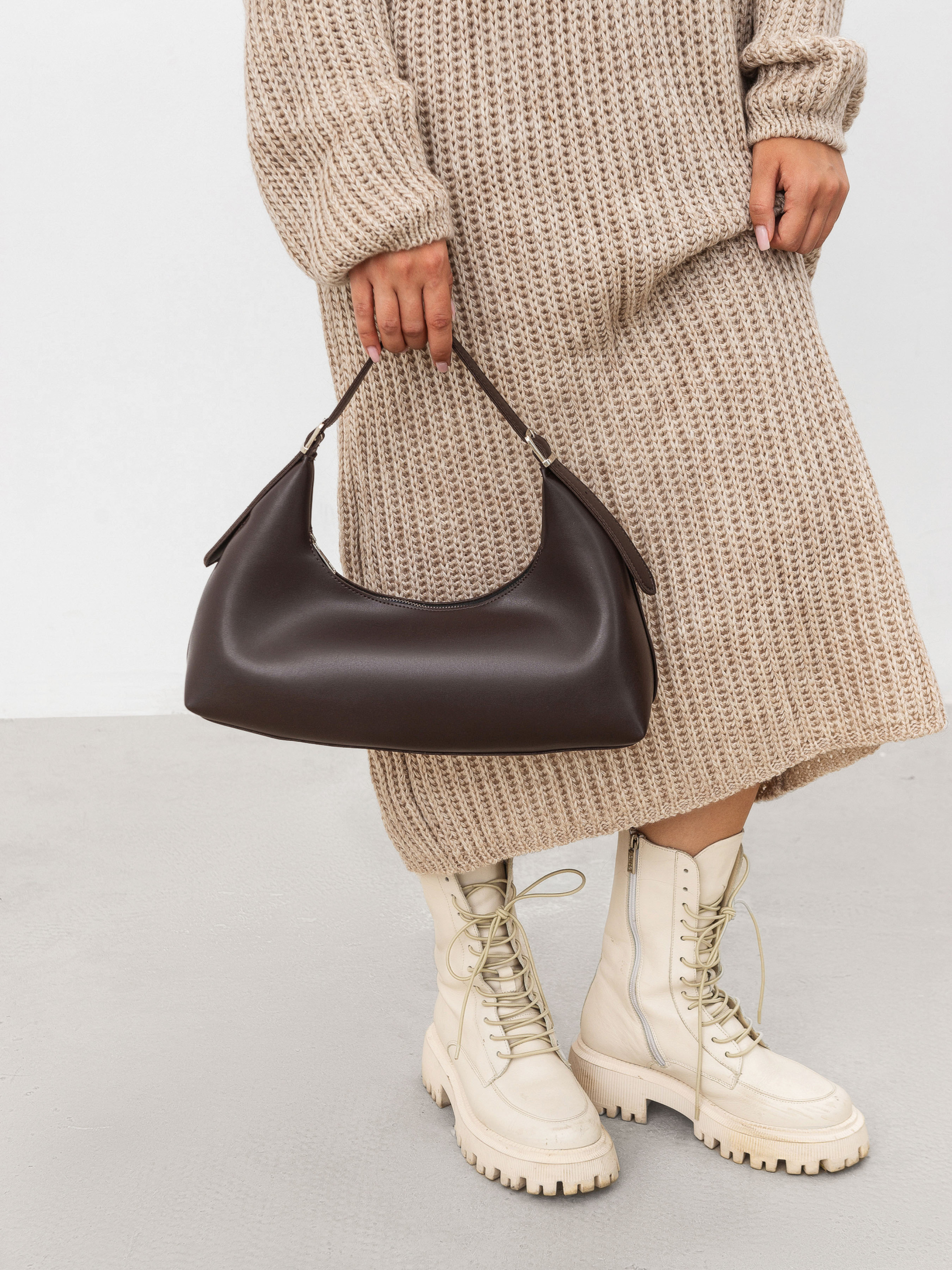 Трендова сумка фасону хобо середнього розміру. Модель має широке дно, тому вона містка й комфортна, якщо потрібно в офіс, роботу тощо. Всередині є текстильна підкладка. Є додаткові кишені: на одній стінці з блискавкою, на іншій без. Ручка має регулятори, тому довжину ремінця можна корегувати під себе. Ідеальна для робочих буднів або довгої прогулянки. Вмістить усе необхідне та влучно доповнить образ. Ширина - 40 см Висота - 25 см