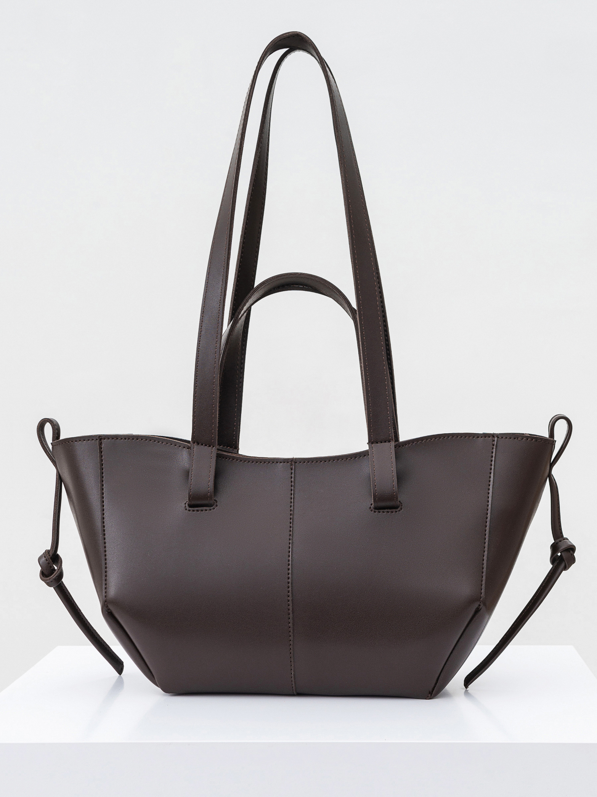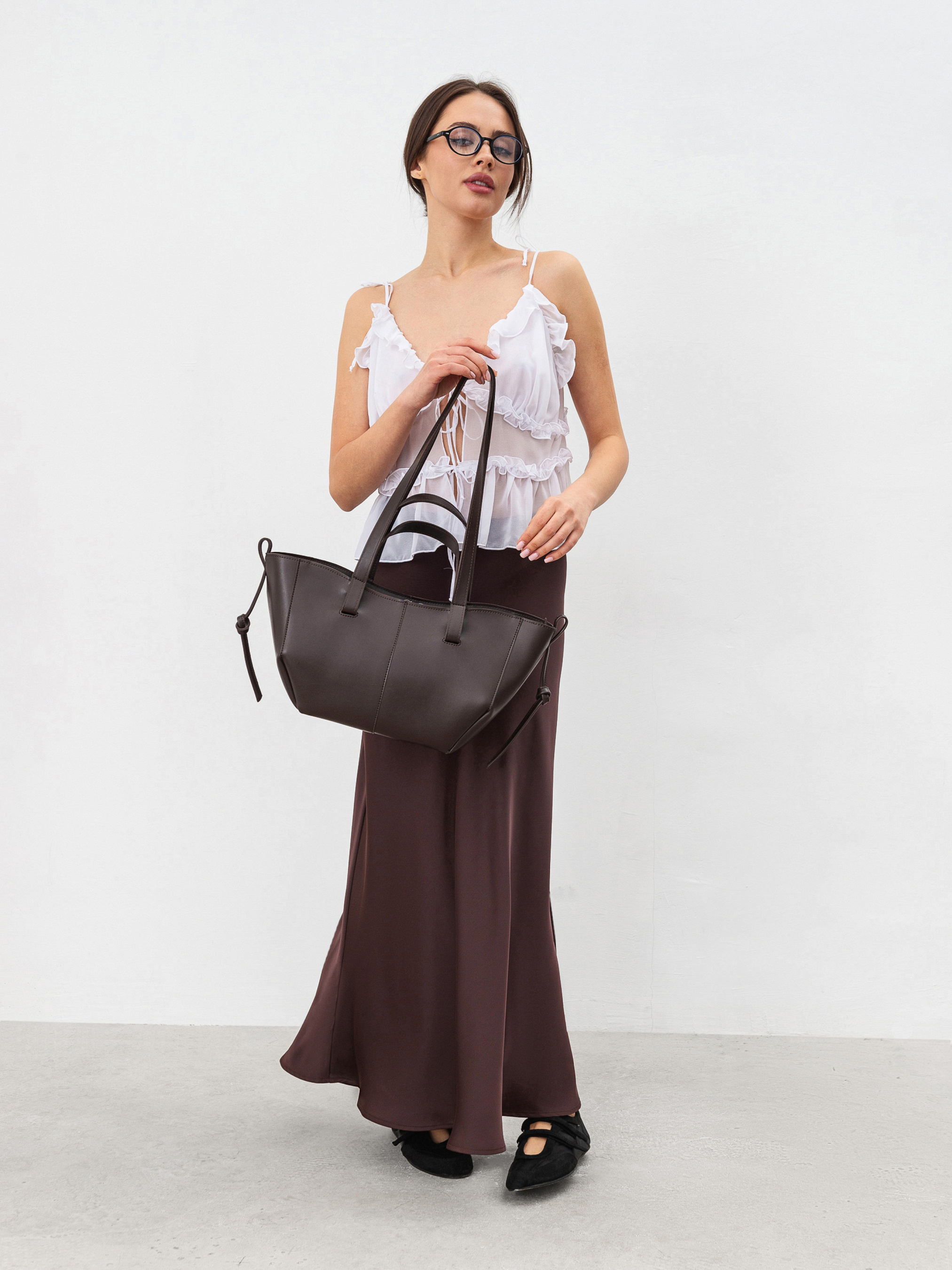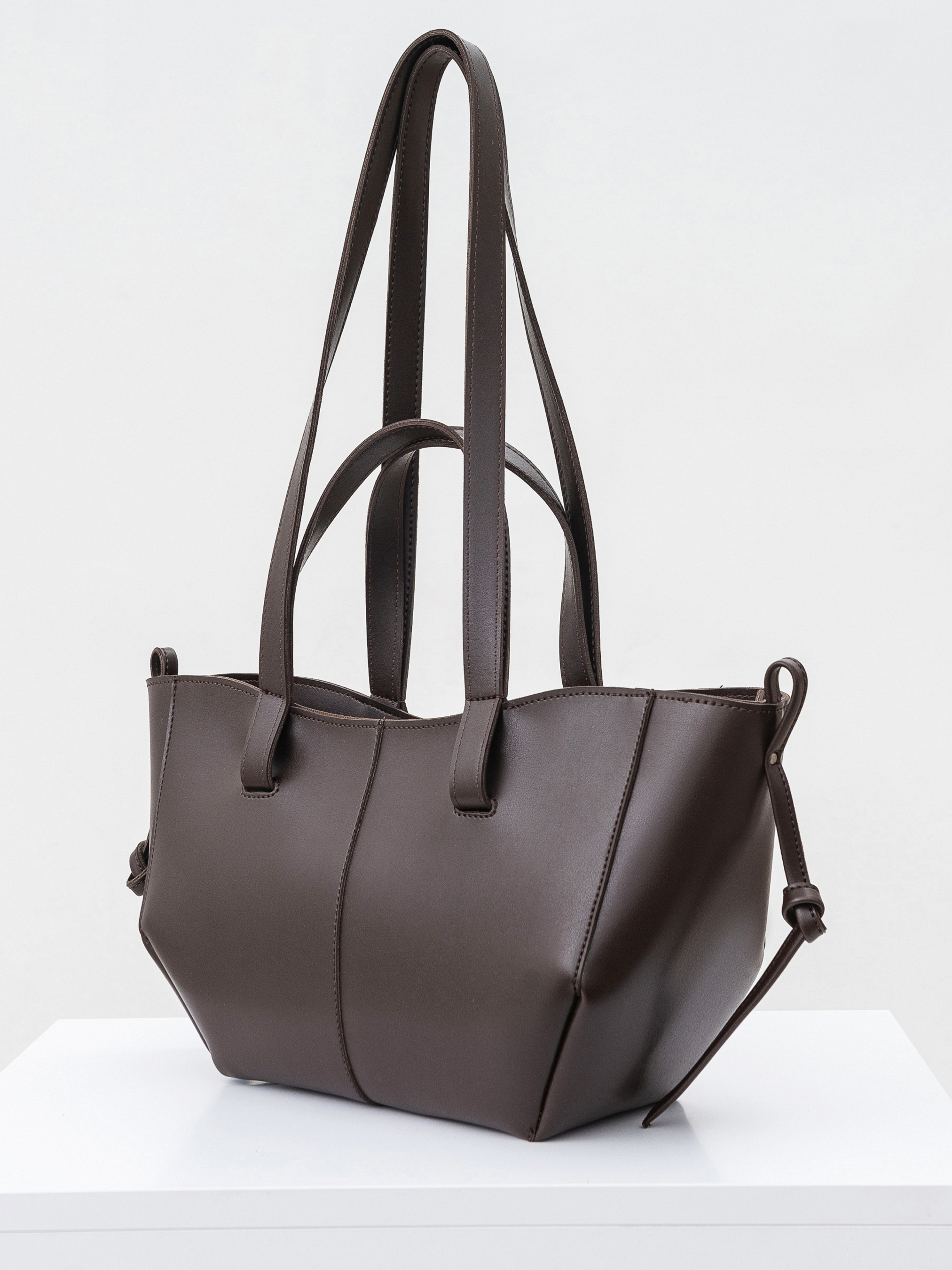 Сумка-шопер у трендовій формі човника. Модель має короткі ручки та довгі для комфортного носіння на плечі чи лікті. Є текстильна підкладка та кишеньки. Зверху застібається на блискавку. Фурнітура зі світлого нікелю. Акцентна модель, що ідеально підійде як для прогулянок, так і офісних буднів. Висота 19 см, ширина 14 см, довжина 29 см Висота ручки маленької 16 см, великої 34 см