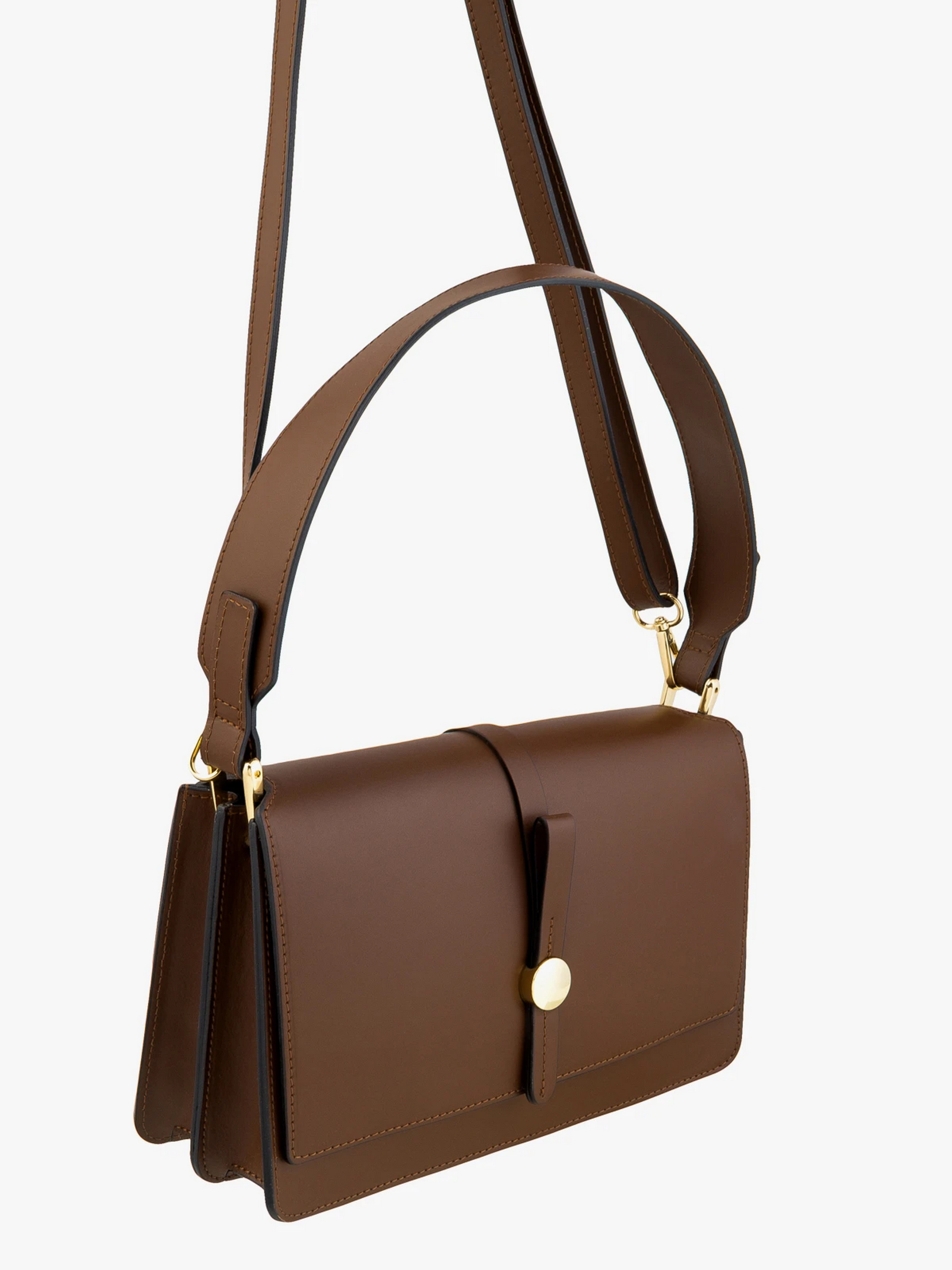 Коричнева елегантна жіноча сумка з лінійки RYLKO виготовлена з високоякісної натуральної шкіри. Золоті деталі та декоративна пряжка додають їй вишуканості. Вона має регульований ремінець (125 см) та зручну шкіряну ручку. Розмір середній (28 x 18 x 9 см), одне відділення та внутрішня кишеня роблять її ідеальним вибором для вечірніх виходів та офіційних подій. Характеристики виробу: Колір: Коричневий Матеріал: Натуральна шкіра Всередині: Текстиль Висота: 18 см Глибина: 9 см Ширина: 28 см Застібка: Пряжка Кількість зовнішніх кишень: 0 Кількість внутрішніх кишень: 1 Кількість відділень: 2 Довжина ремінця: 125 см Ручка: Так Виробник: Італія