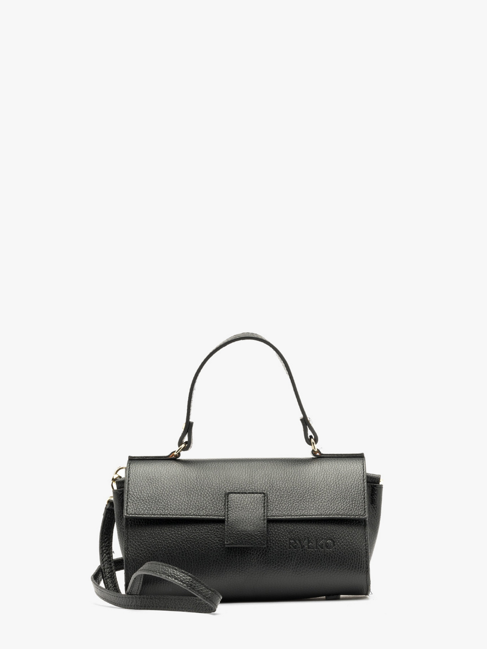 Жіноча шкіряна сумка польського виробника RYŁKO чорного кольору. Модель середнього розміру, не вміщує формат А4. Виконана з натуральної лицьової шкіри високої якості. Декорована фірмовим тисненням з лицевої сторони. Модель має шкіряну ручку заввишки 10,5 см та знімний регульований плечевий ремінець максимальною довжиною 125 см. В сумці 1 основне відділення з маленькою кишенею всередині. Застібка - магнітна кліпса.