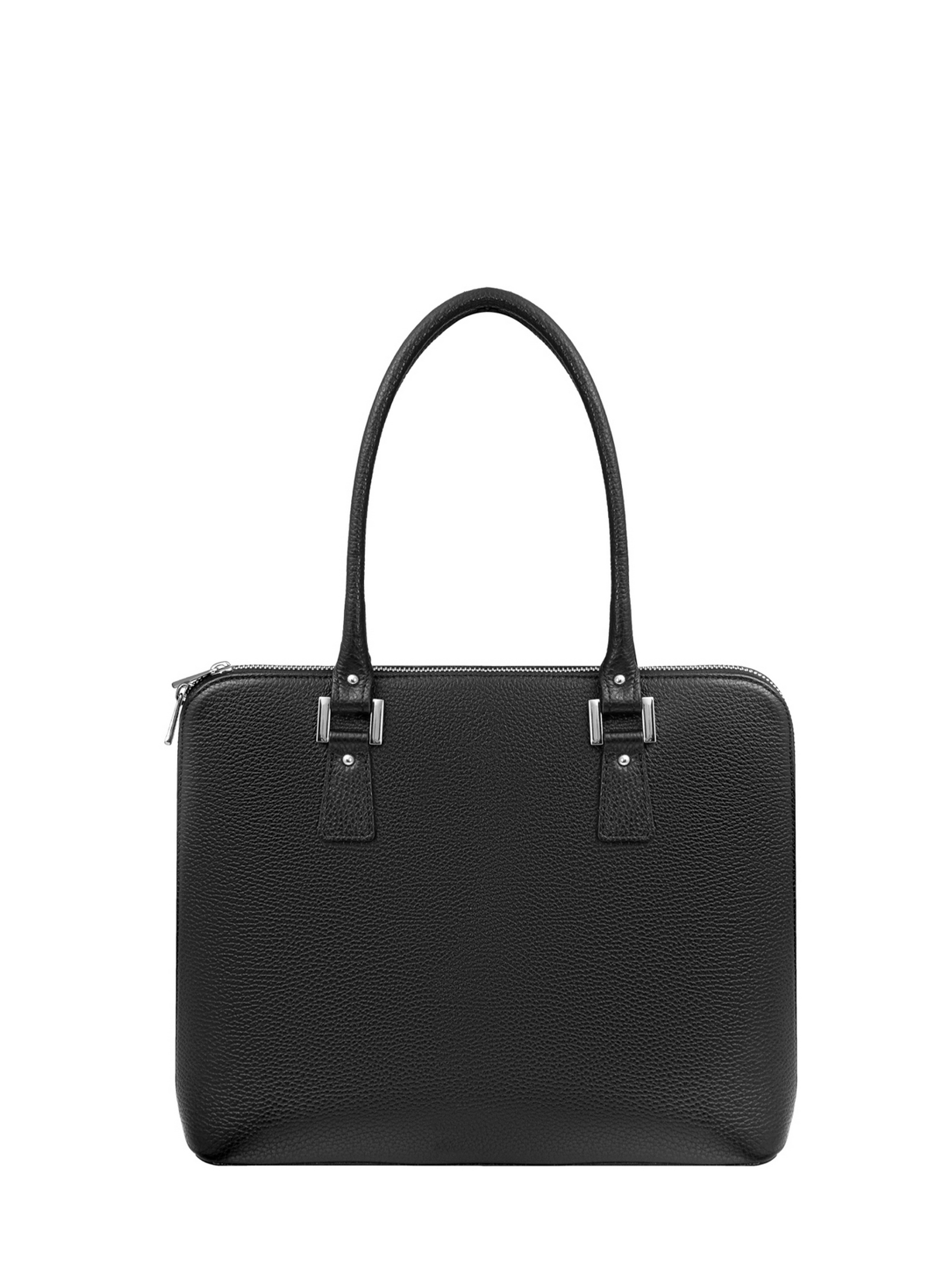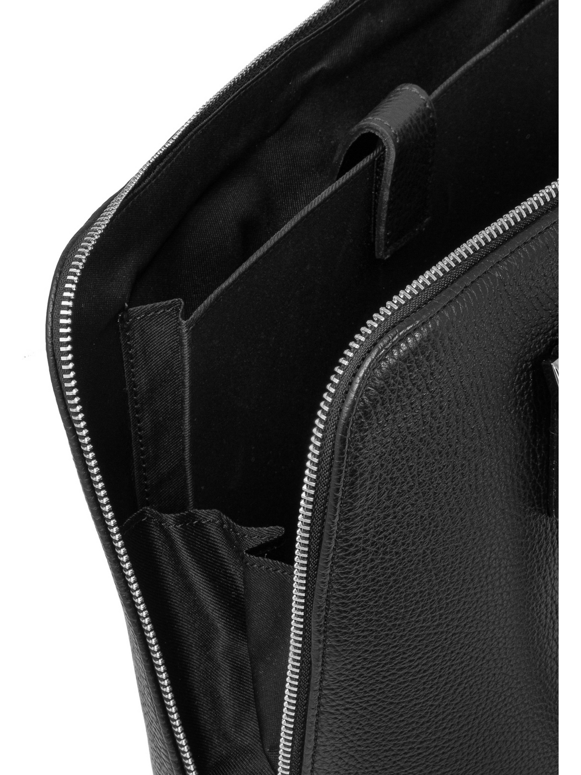 Колір: чорний Склад верху: натуральна шкіра Всередині: текстиль Висота: 28 см Ширина: 35 см Глибина: 11 см Кількість відділень: 1 Кишеня всередині: 2 Кишеня зовні: немає Замок: блискавка Висота ручки: 25 см Виробництво: Італія