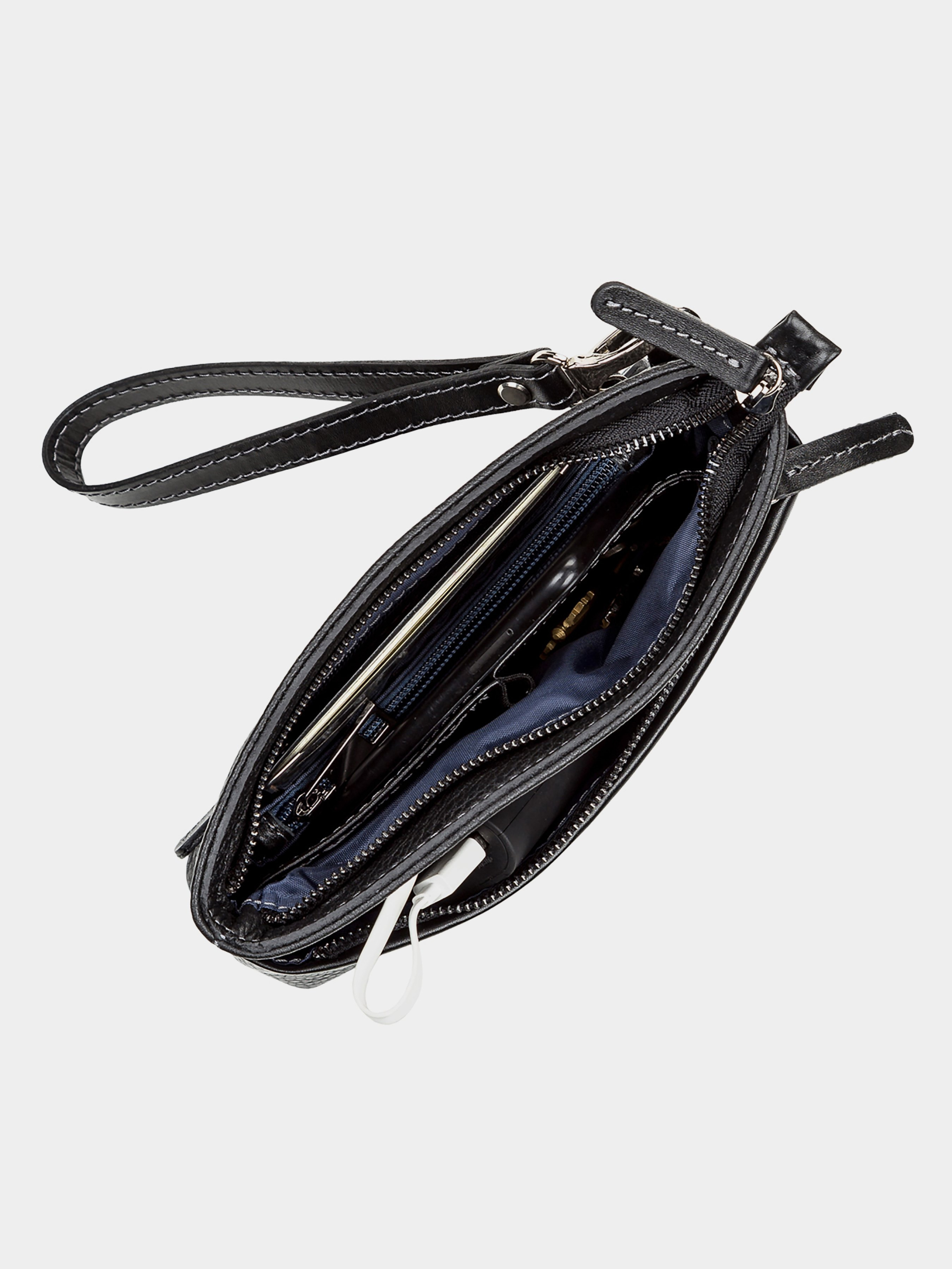 Матеріал: натуральна шкіра; Розміри (ШхВхГ, см): 22х13х4; Колір: чорний; Країна виробник: Україна. Особливості: - два великих відділення; - кишеня-перегородка на блискавці; - дві бічні кишені з одного боку і одна велика кишеня на змійці з іншого боку; - кишеня на змійці на тильній стороні; - планка, що дозволяє зручно розмістити клатч в руці; - колір фурнітури: срібло; - шкіряна ручка-петля, що знімається; - закривається на блискавку; - аксесуар упакований в пилозахисний чохол. Зручна чоловіча сумка-клатч з натуральної високоякісної зернистої шкіри. Даний аксесуар не тільки функціональний у використанні, але доповнює і підкреслює діловий, елегантний образ сучасного чоловіка.
