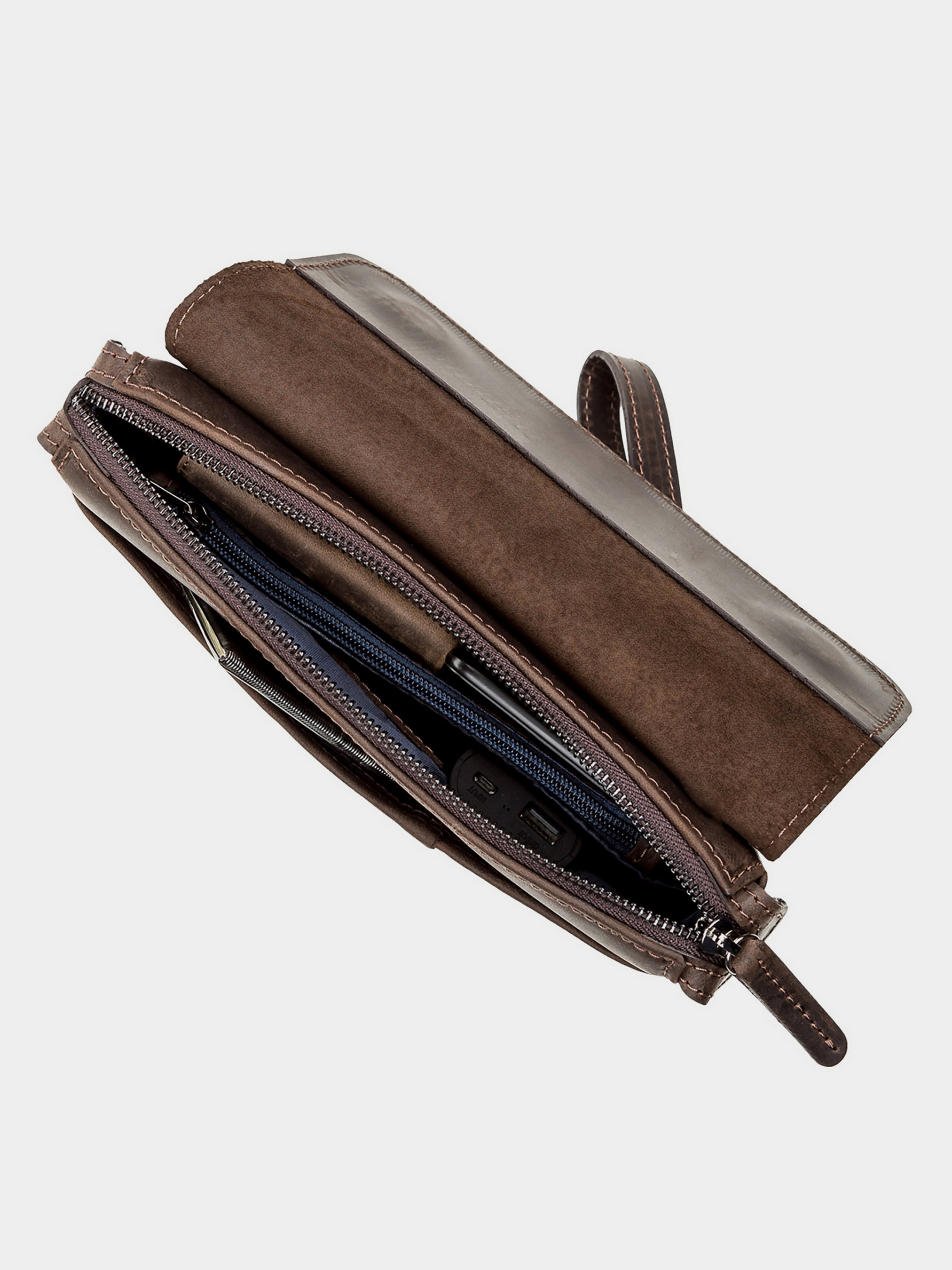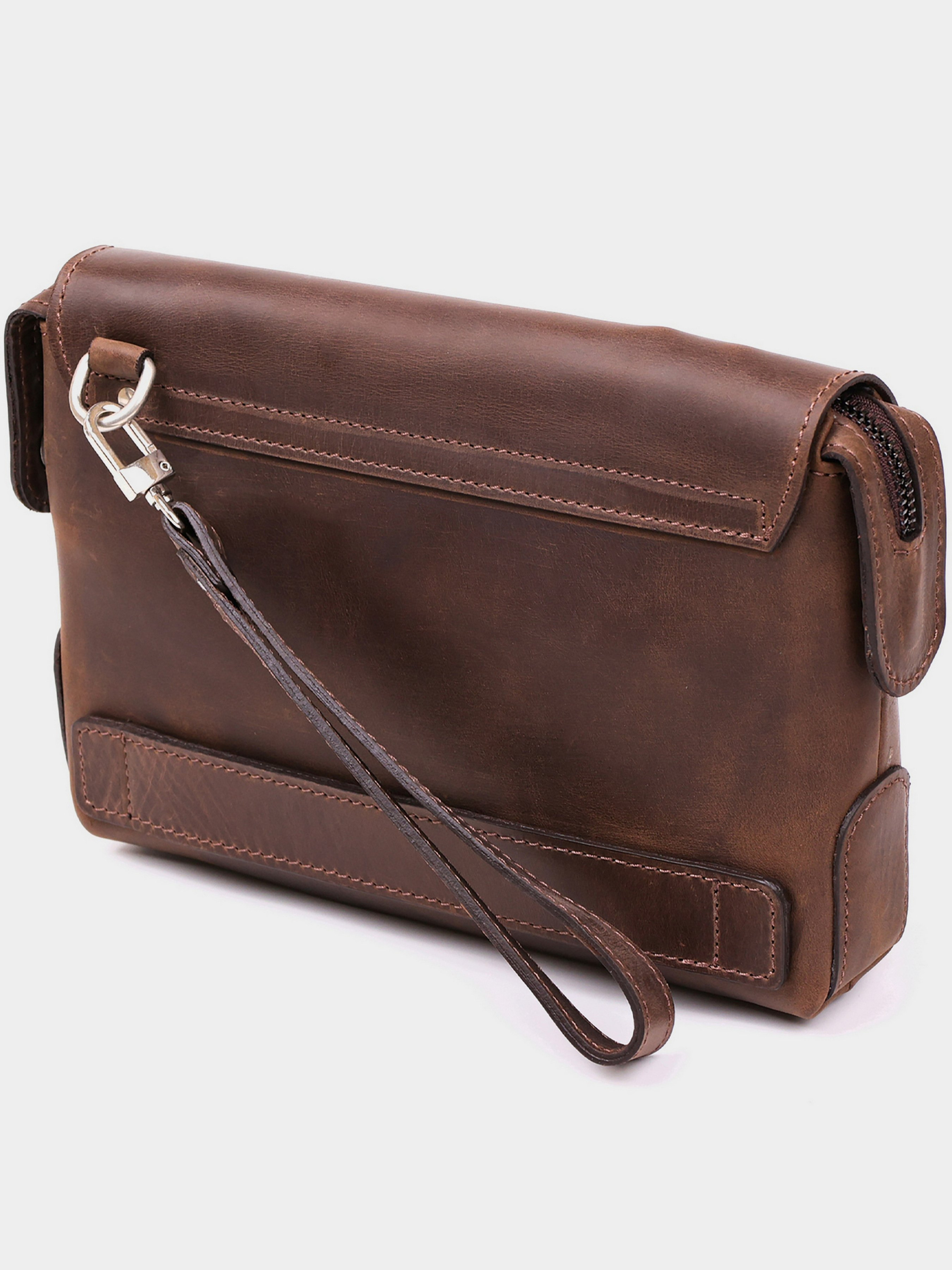 Матеріал: натуральна вінтажна шкіра; Розміри (ШхВхГ, см): 23х16х5; Колір: коричневий; Країна виробник: Україна. Особливості: - два великих відділення; - кишеня-перегородка на блискавці; - дві бічні кишені з одного боку і одна велика кишеня на змійці з іншого боку; - накладна кишеня під клапаном зовні; - шкіряна ручка-петля, що знімається; - колір фурнітури: темне срібло; - закривається на блискавку і клапаном зверху на два магніти; - аксесуар упакований в пилозахисний чохол. Цікава чоловіча сумка-клатч з натуральної високоякісної вінтажної шкіри, особливістю, якої є потертості і неоднорідність забарвлення. Даний аксесуар не тільки функціональний у використанні, але доповнює і підкреслює діловий, елегантний образ сучасного чоловіка.