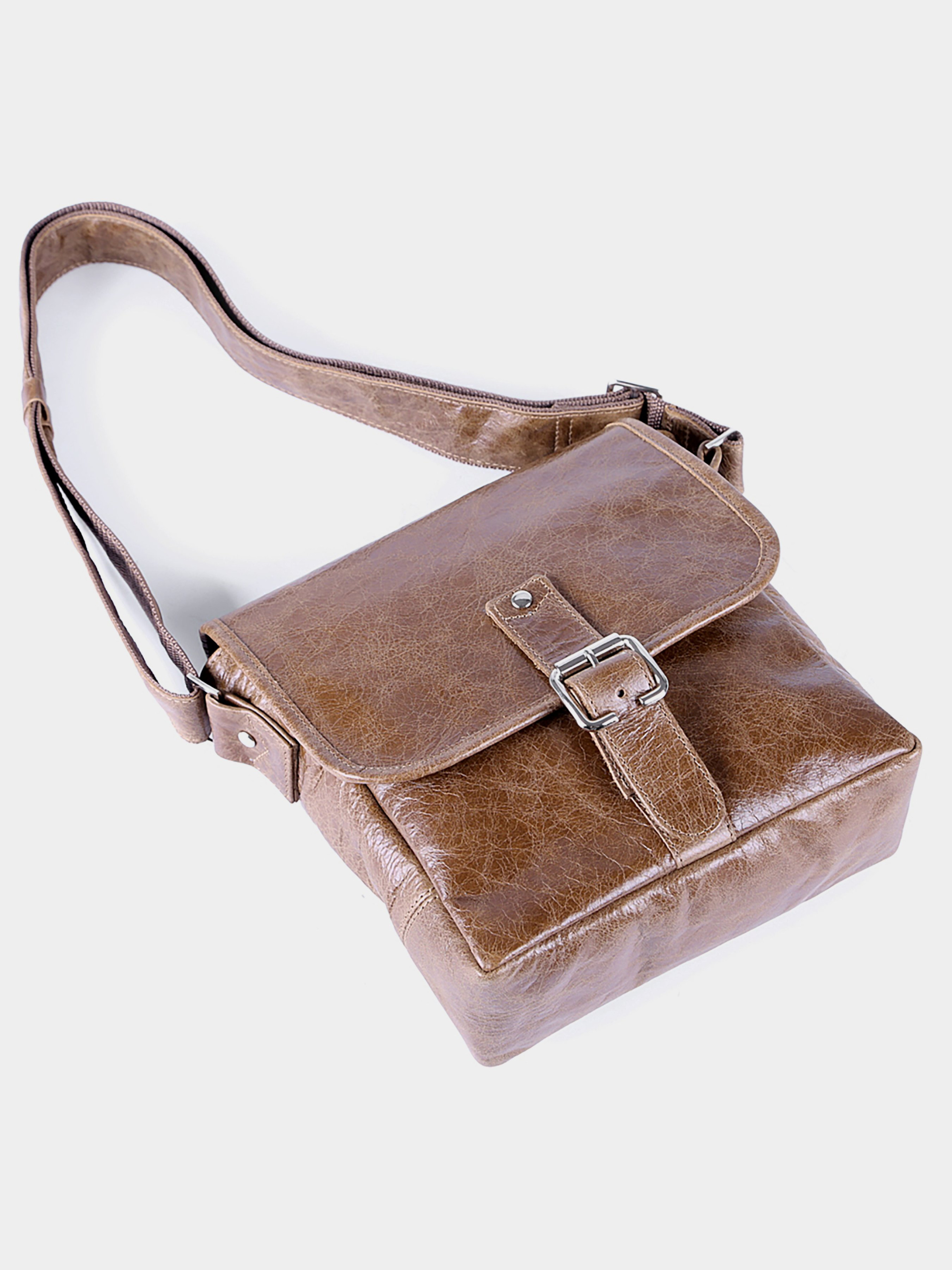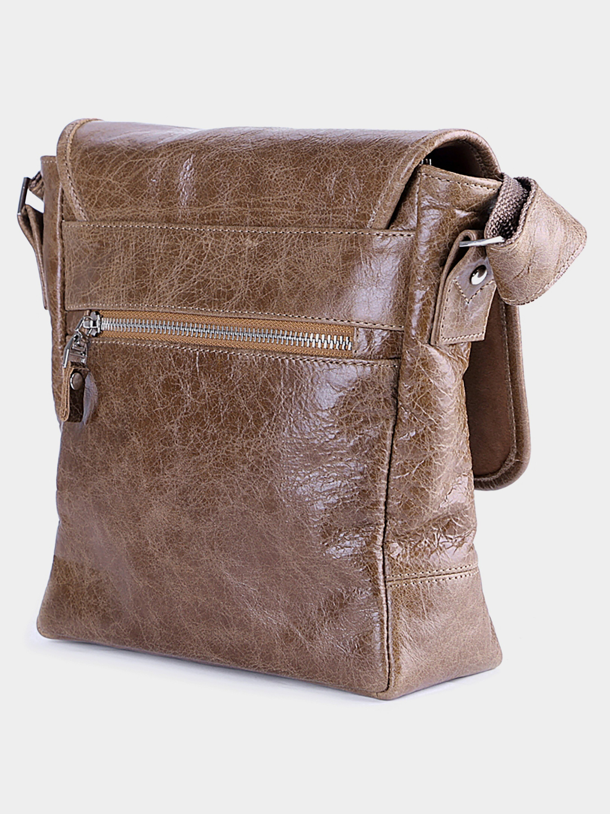 Матеріал: натуральна шкіра високої якості; Колір: коричневий; Розміри (ШхВхГ, см): 22х23х7; Країна виробництва: Україна. Високоякісна чоловіча сумка з натуральної вінтажної шкіри. Колір фурнітури: срібло. Сумка закривається за допомогою клапана на магнітній кнопці і металевої блискавки. Під клапаном розташована накладна кишеня. На задній зовнішній стороні аксесуара знаходиться невелике відділення на блискавці. Сумка носитися через плече за допомогою регульованого плечового ременя. Підкладка виконана з міцного текстильного матеріалу. Всередині: - одне велике відділення; - потайна кишеня на блискавці на задній стінці; - накладна кишеня для мобільного телефону на передній стінці.