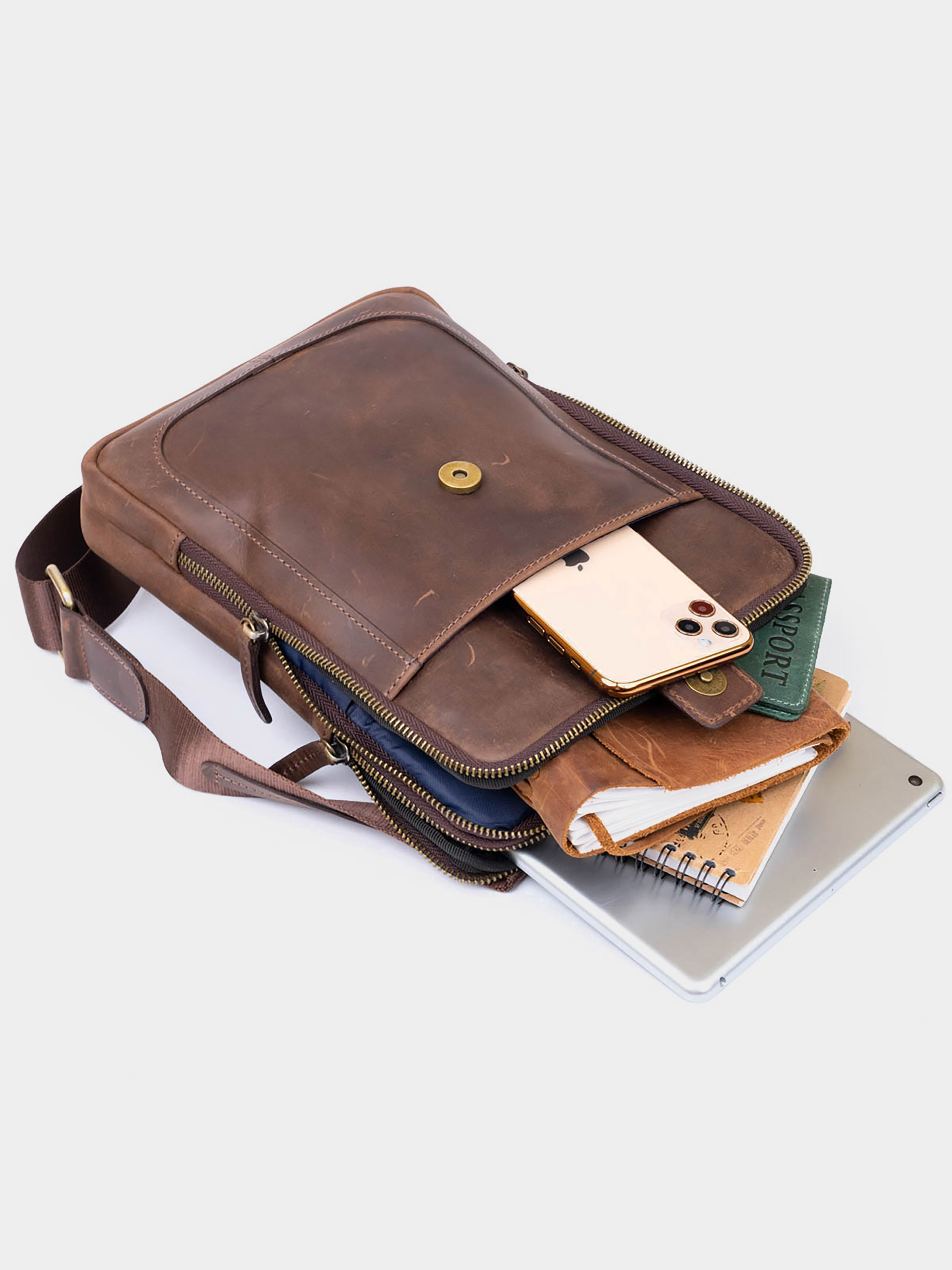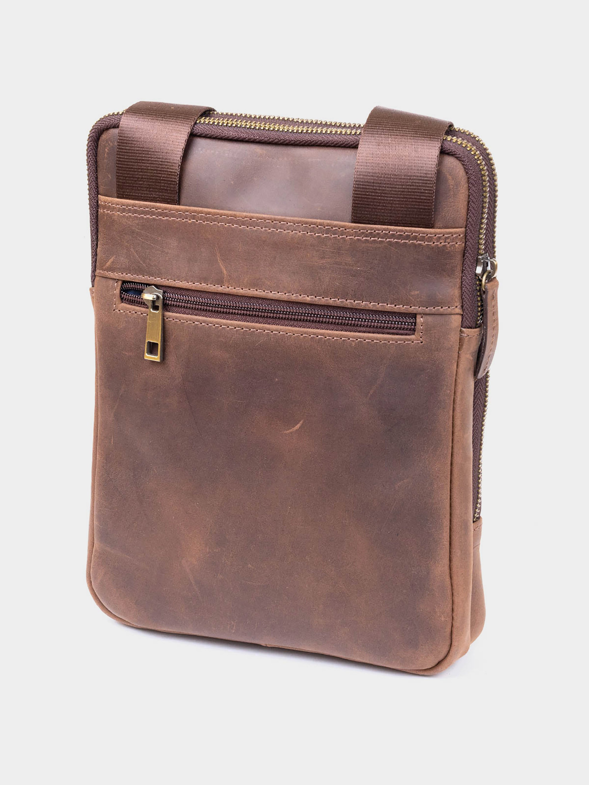 Колір коричневий; Матеріал: натуральна шкіра високої якості; Розмір (ШхВхГ, см): 20х26,5х4,5. Країна виробник: Україна. Всередині: - два основних відділення на блискавках; - в далекому: ущільнена кишеня для планшета висотою 23 см на 18,5; - в ближньому: потайна кишеня на блискавці і накладна кишеня відкритого типу на ближній стінці; - накладна кишеня на лицьовій стороні (закривається на шкіряний хлястик з кнопкою); - кишеня на блискавці на тильній стороні аксесуара; - незнімний текстильний ремінець. Практична сумка в матовій вінтажній шкірі на два відділення. Виробництво - Україна. Вінтажна шкіра має дуже розкішний дизайн і користується особливою популярністю за свій ефект старовини. Згодом на цій шкірі з'являються подряпини і потертості, що виглядає дуже вінтажно та ефектно. Чоловічий планшет - ідеальний варіант сумки на кожен день. У дизайні моделі немає ніяких зайвих деталей при цьому сумка виглядає дуже модно і стильно. На лицьовій стороні моделі тиснення у вигляді логотипу бренду. Аксесуар доповнено текстильною незнімною ручкою. Шкіряна сумка - кращий подарунок для будь-якого чоловіка.