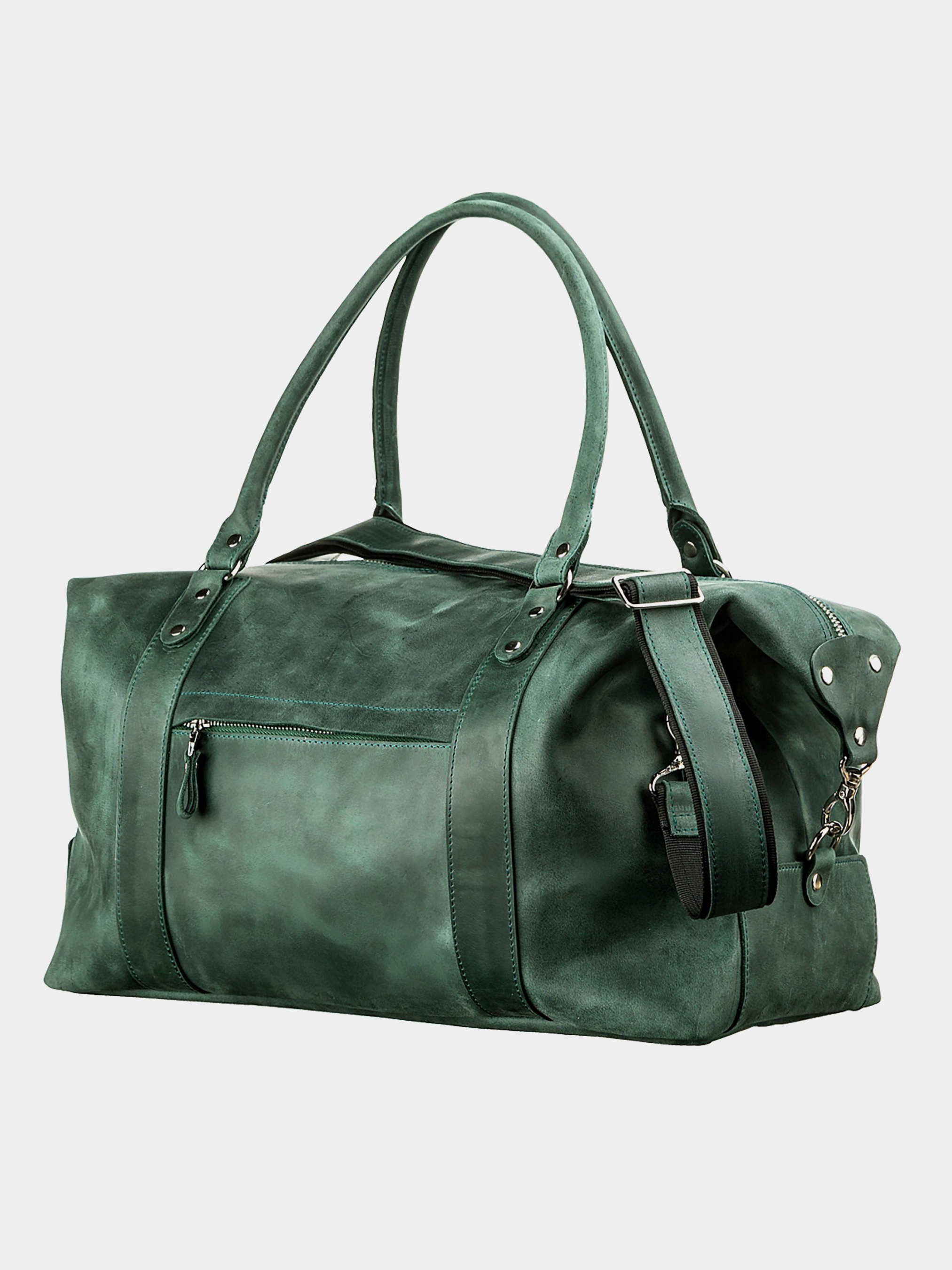 Матеріал: натуральна шкіра високої якості; Колір: зелений; Розміри (ШхВхГ, см): 42х22х29; Країна виробник: Україна. Аксесуар виготовлений з натуральної вінтажної шкіри, має неоднорідність забарвлення і потертості, вся фурнітура з металевого сплаву, дуже якісна і надійна. Дорожня сумка зроблена на совість, всі шви рівні, акуратні та міцні. На зовнішній стінці розташована прихована кишеня на блискавці, яка прикрита шкірою. Саквояж обладнаний одним основним відділенням, всередині місткий простір для особистих речей і невелика прихована кишеня на блискавці. Підкладка пошита з міцного, вишуканого текстилю. Об'єм саквояжа можна збільшити за допомогою застібок з боків. Виріб носитися в руці за шкіряні міцні ручки, або через плече за допомогою ременя з комбінації міцної текстильної стрічки і шкіри. Дорожня сумка-саквояж зроблена для людей, які люблять практичність, надійність і цінують свій час і гроші.