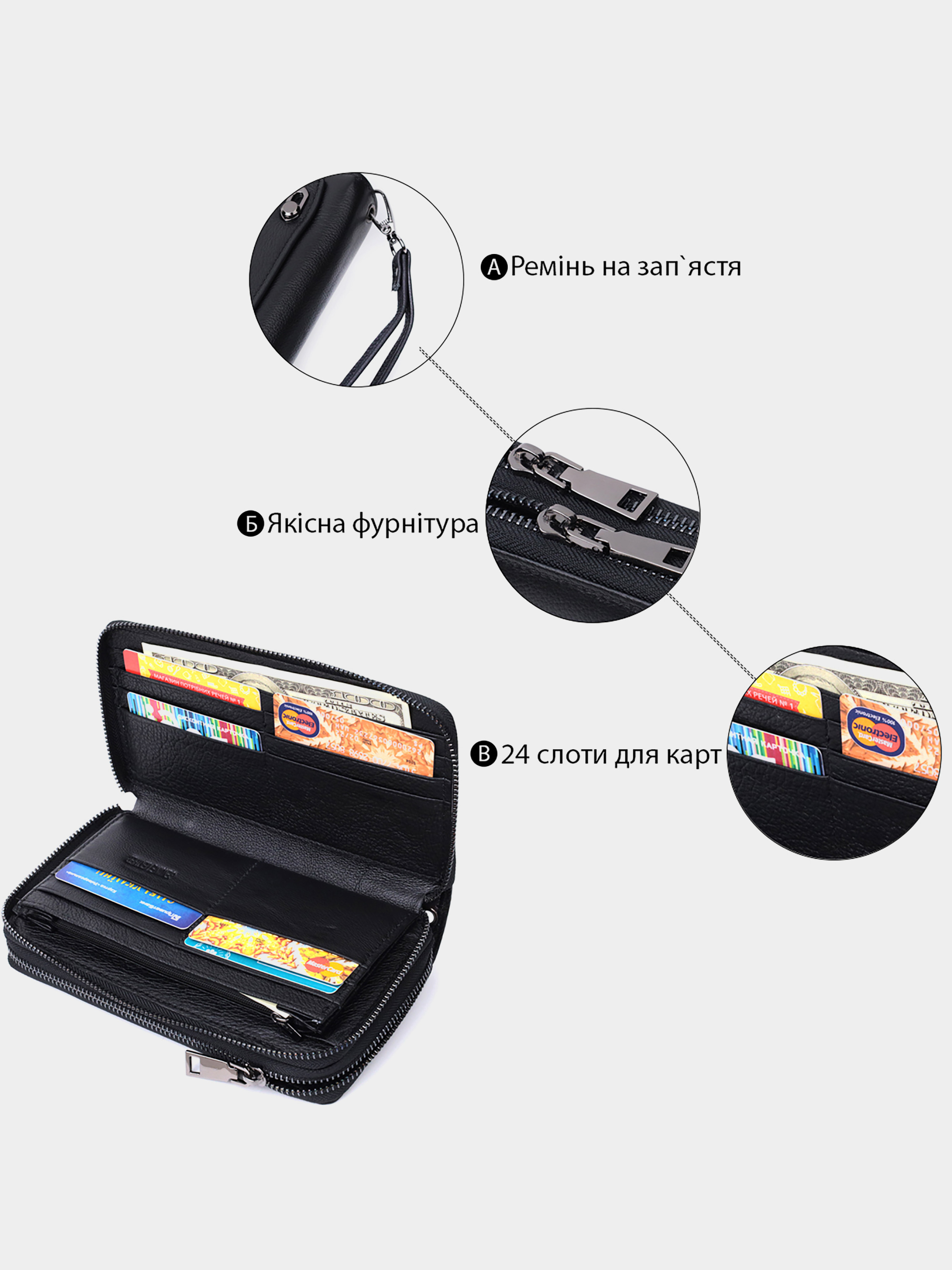 • Жіночі шкіряні гаманці