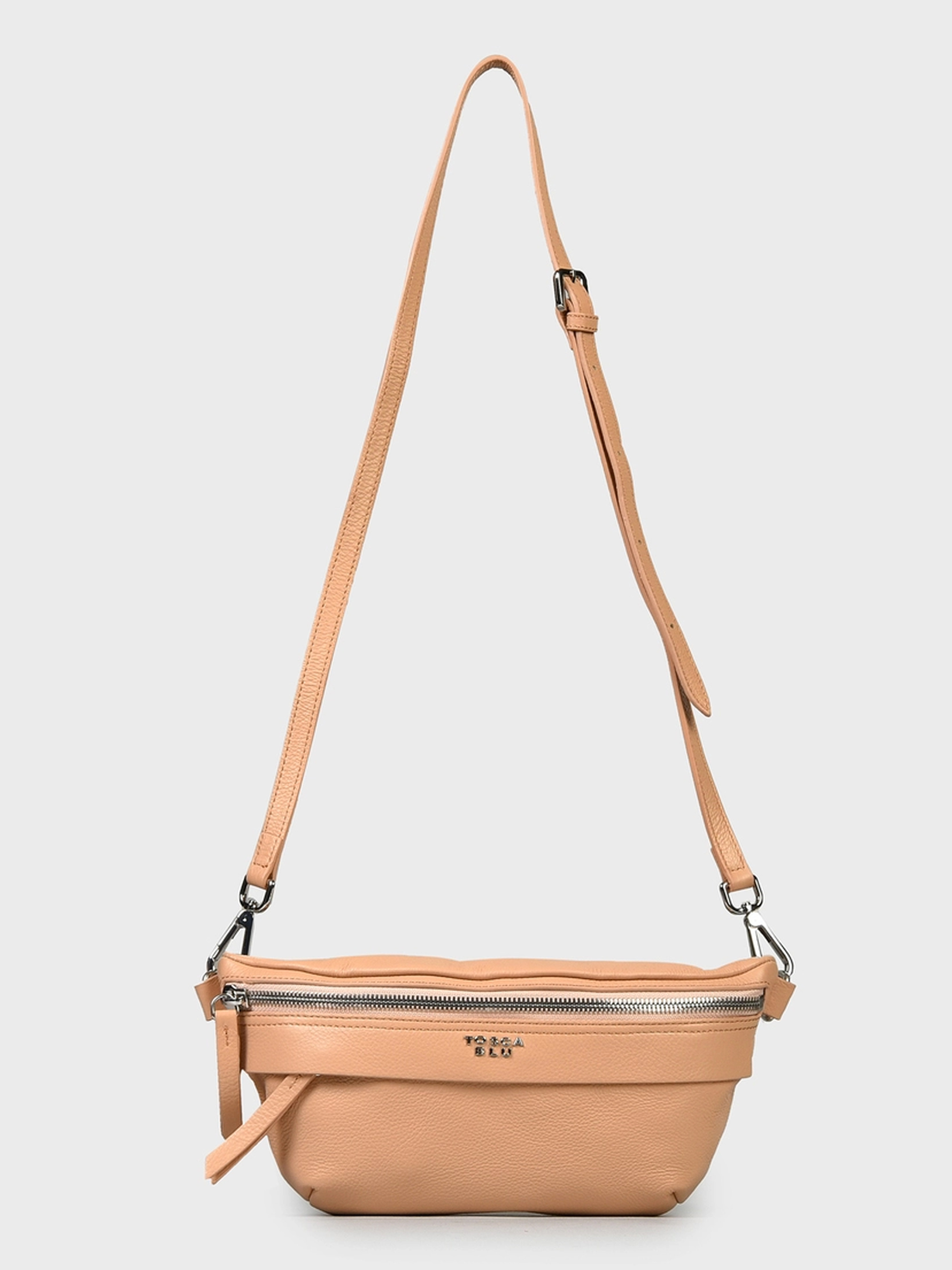 Сумка жіноча Tosca Blu (TS21KB235_C04) Жіноча бежева сумка на пояс із натуральної шкіри від Tosca Blu (Туга Блу). Два відділення, застібка на блискавку, знімний ремінь, що регулюється, металевий логотип, можна носити на плече і на пояс. Вимірювання: ширина: 32 см, висота: 15 см, глибина: 7 см. Пильовик у комплекті. Tosca Blu - італійський бренд унікальних модних сумок, взуття та аксесуарів з натуральної шкіри високої якості. Історія марки почалася 1978 року. Сьогодні фірма співпрацює з провідними італійськими та міжнародними модними брендами. Найважливіші та незмінні принципи роботи Tosca Blu - це увага до деталей, використання першокласних матеріалів та ексклюзивний стиль.У компанії існує власна лабораторія творчого розвитку, фахівці якої вдосконалюють і створюють нові моделі. Модні колекції Tosca Blu - це вишукані якісні матеріали, витончені форми, фантастичні кольорові рішення.