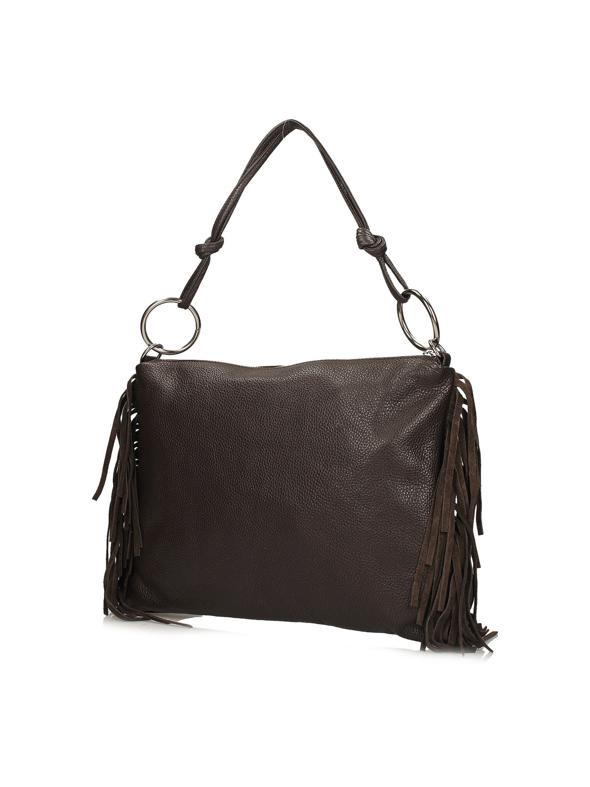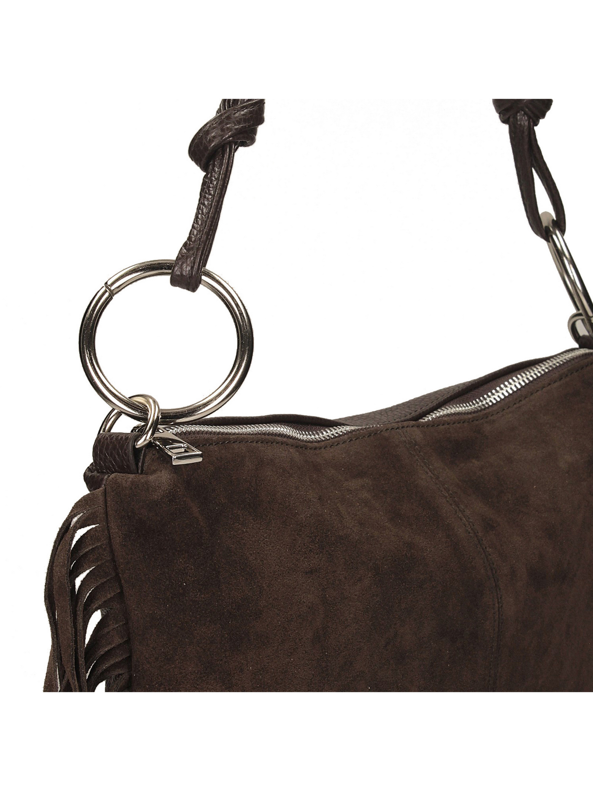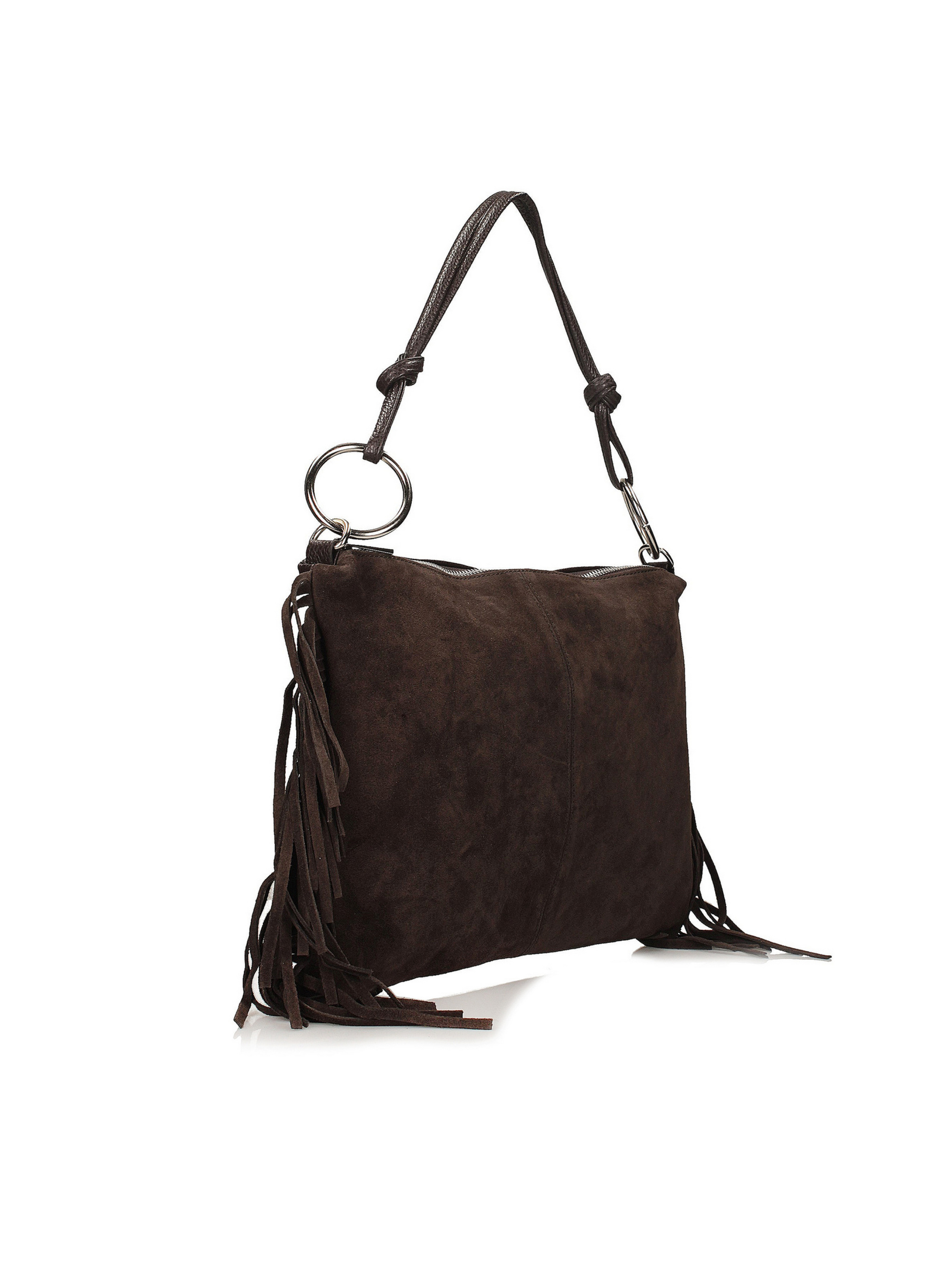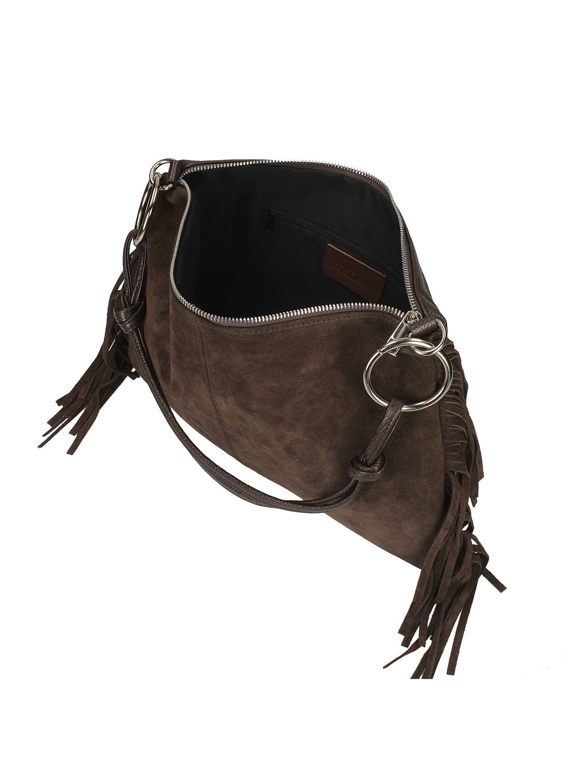 Темно-коричнева сумка італійського виробника Toscanio – це поєднання класичного та бохо-стилю в елегантному виконанні. Передня частина сумки виготовлена з м’якої натуральної замші, що надає їй витонченої елегантності, а задня – з натуральної шкіри із зернистою текстурою, що забезпечує високу якість та довговічність. Довга бахрома прикрашає боки, створюючи легке та невимушене відчуття. Сумка середнього розміру, застібається на срібну блискавку, а внутрішня частина, обшита тканиною, має одне відділення та практичну кишеню для дрібниць. Ця модель ідеально підходить як для щоденного використання, так і для образів у стилі бохо-шик. Характеристики: висота 26 см, ширина 35 см, глибина 1 см. Довжина короткої ручки 40 см, довгої - 120 см.