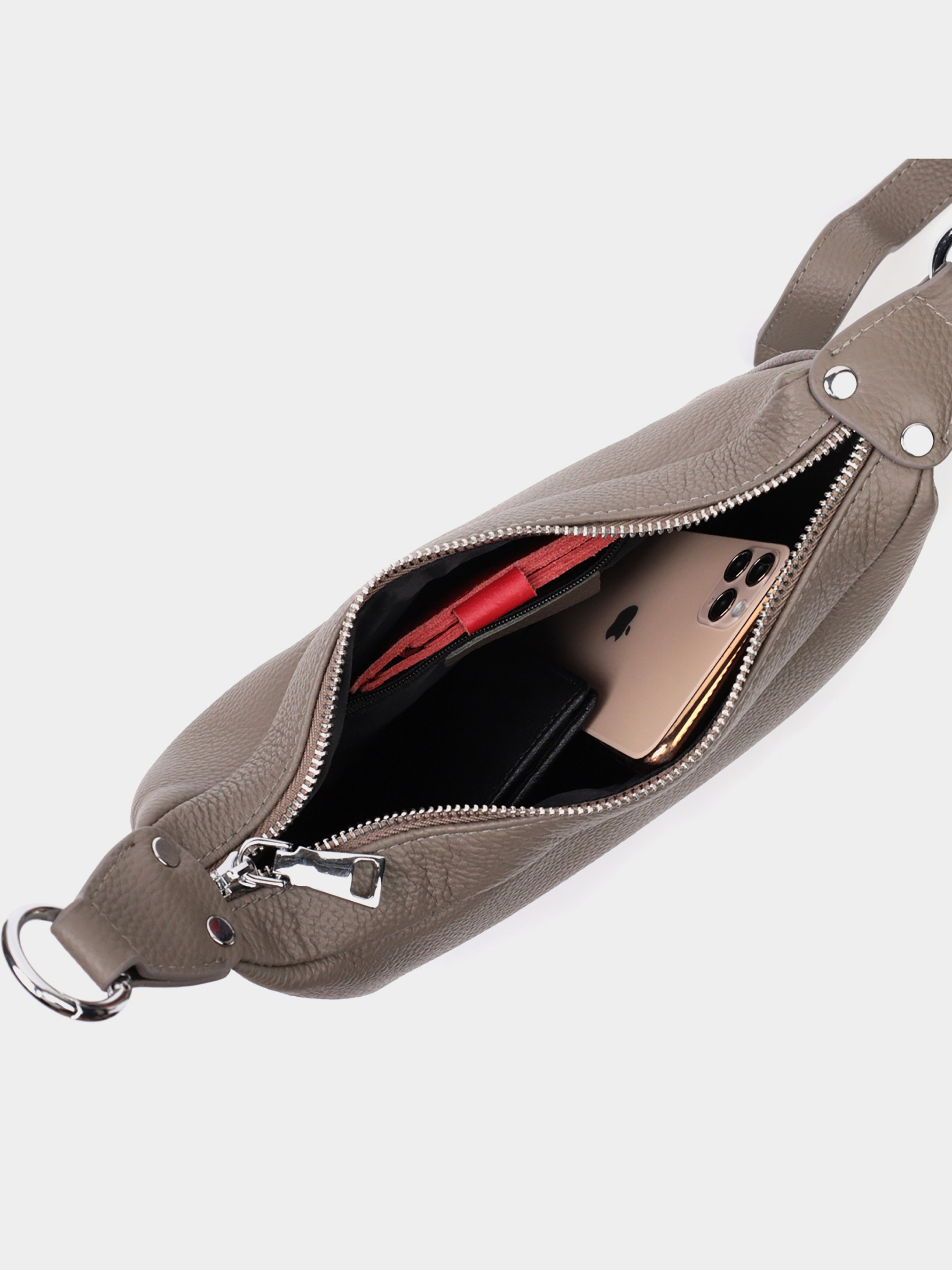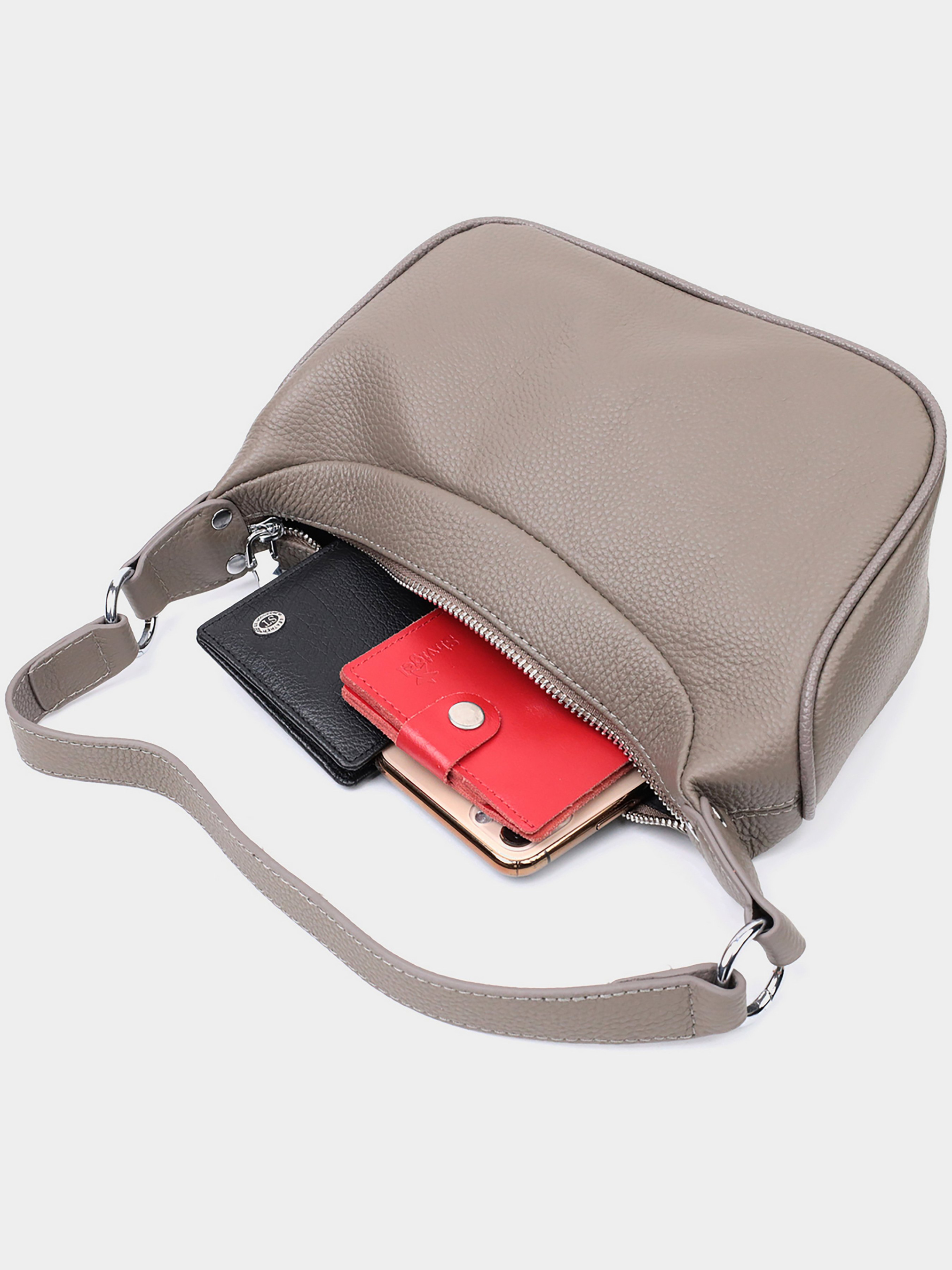 Колір: сірий; Матеріал: натуральна шкіра; Розмір (ШхВхГ, см): 23х12х9,5 см; Країна виробник: Китай. Бренд: Vintage. Особливості: - закривається на блискавку; - одне основне відділення з потайною кишенею на блискавці; - знімний шкіряний плечовий ремінь. Практична сумка з натуральної шкіри з високим показником якості та зносостійкості. Аксесуар складається з одного відділення з потайною кишенею на блискавці всередині. Носити сумку можна в руці, на плечі і через плече, для цього є шкіряний ремінь, що знімається. У виробі використано якісну фурнітуру кольору срібла. Відмінна сумка яка припаде до душі навіть найприскіпливішим модницям.