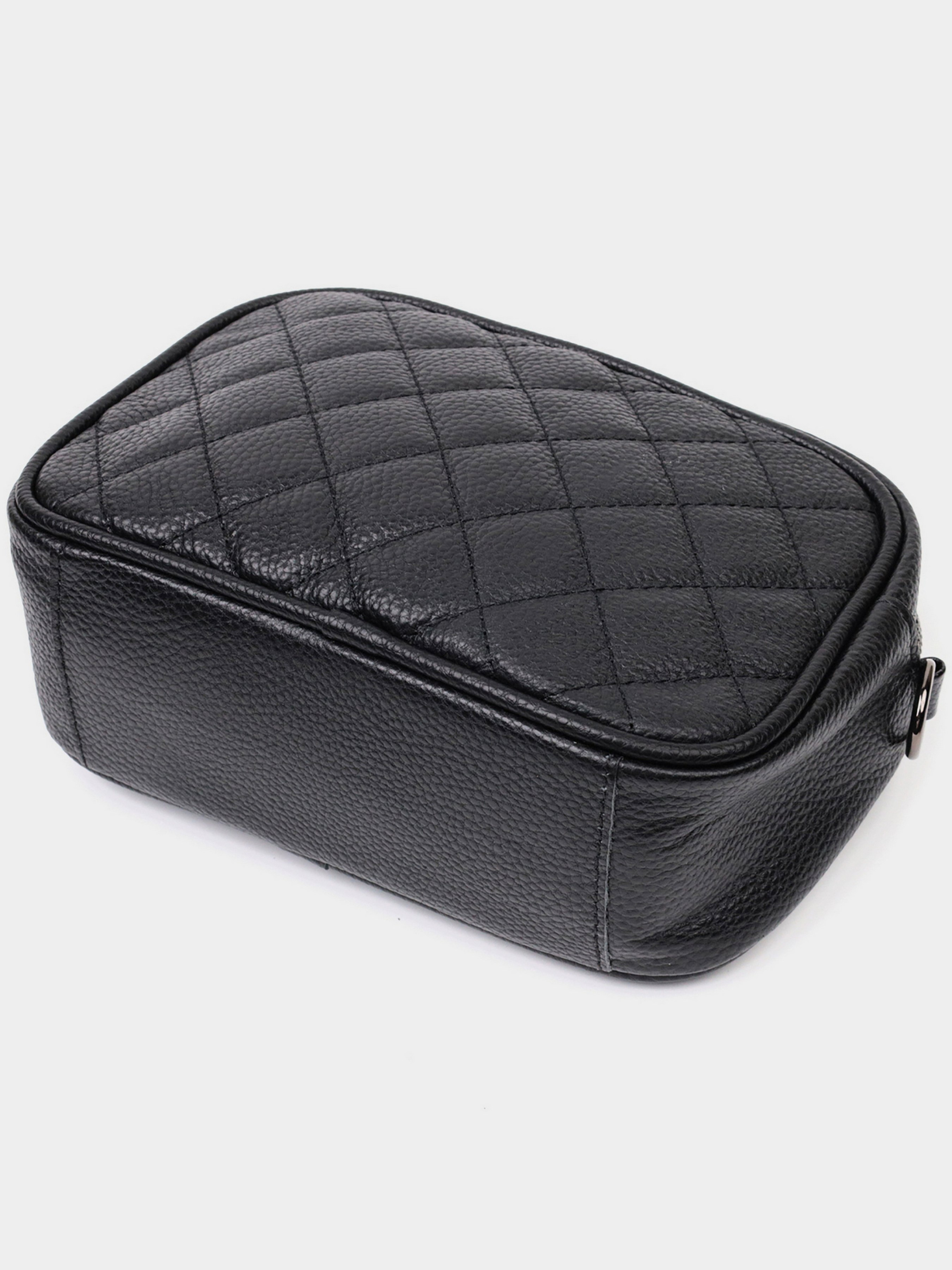 Колір: чорний; Матеріал: натуральна шкіра; Розмір (ШхВхГ, см): 21х14х8 см; Країна виробник: Китай. Бренд: Vintage. Особливості: - закривається на блискавку; - одне основне відділення всередині якого кишеня на блискавці та кишеня відкритого типу; - кишеня на блискавці зовні, на тильній стороні; - знімний текстильний ремінь. Стильна стьобана ромбами на лицьовій стороні сумка для жінок. Виріб пошитий з якісної натуральної шкіри, яка довго носиться і не втрачає свого первісного вигляду. Аксесуар складається з одного основного відділення всередині якого розташована кишеня відкритого типу і кишеня на блискавці, також зовні розташована кишеня на блискавці, на тильній стороні. Носити сумку можна в руці як клатч, на плечі та через плече, для цього є текстильний ремінь, що знімається. У виробі використано якісну фурнітуру кольору темного срібла. Універсальний варіант сумки як на вечір так і як сумочка на кожен день.