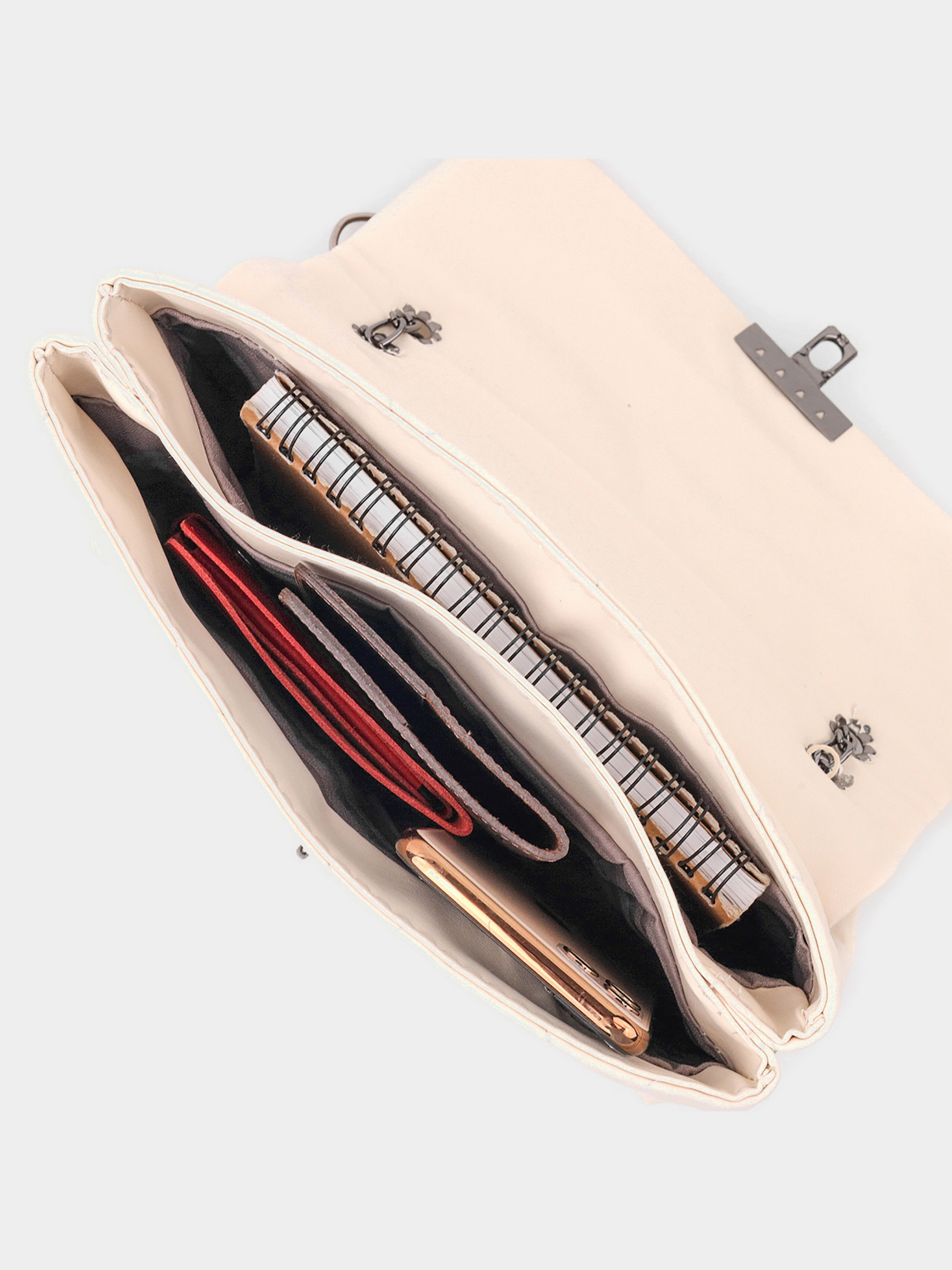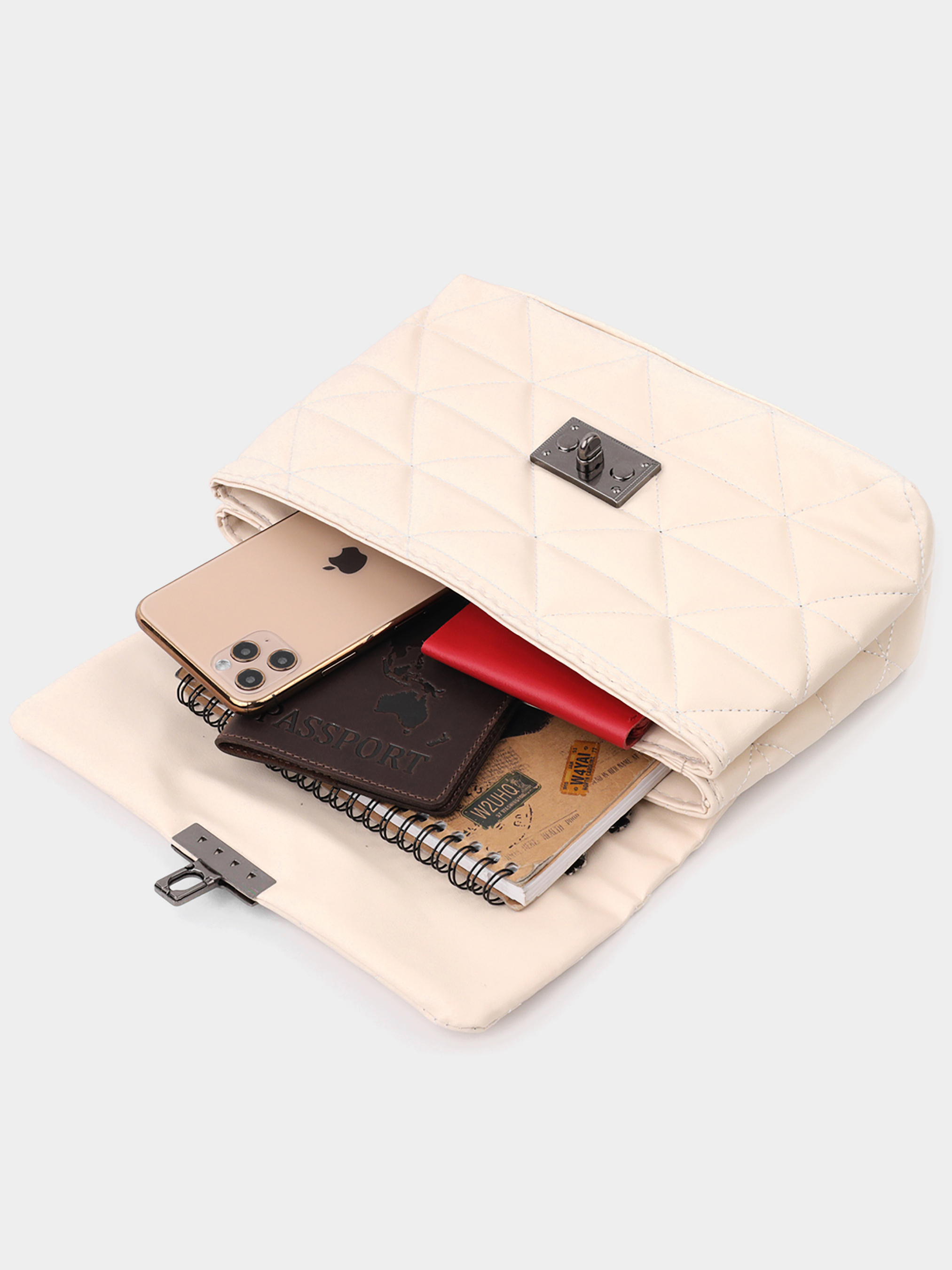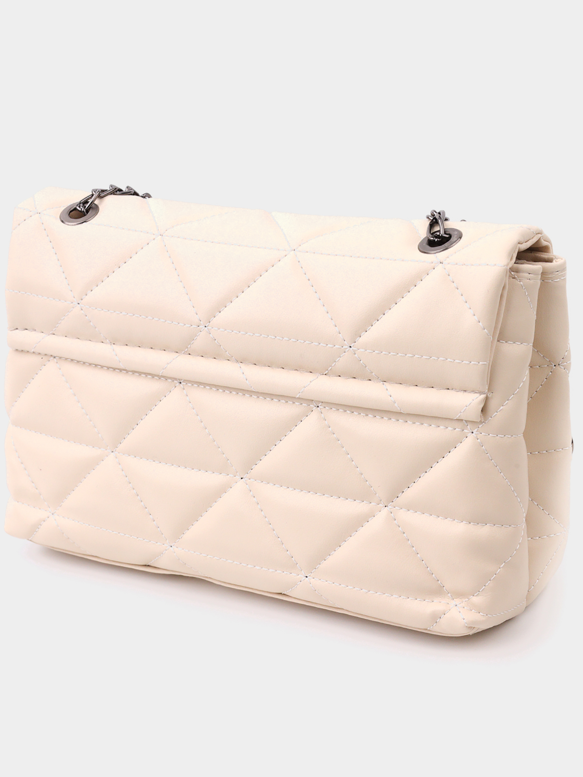 Колір бежевий; Матеріал: еко-шкіра; Розмір (ШхВхГ, см): 26х15х3 см; Країна виробник: Туреччина. Особливості: - два основні відділення під клапаном, на металевій кнопці; -ремішок-ланцюжок, із вставками еко-шкіри в руки та на плече. Чудова сумка горизонтального типу в красивому бежевому кольорі з м'якої та приємної на дотик стьобаної еко-шкіри. Сумка має стильний дизайн. Аксесуар виглядає презентабельно та підійде як під вечірній, так і повсякденний образ. Фурнітура у сумці темне срібло, ремінь на плечі – поєднання ланцюжка та еко- шкіри. Модель довгий час залишається у ідеальному стані, таку сумку приємно носити. Може бути чудовим варіантом для подарунка близькій людині.