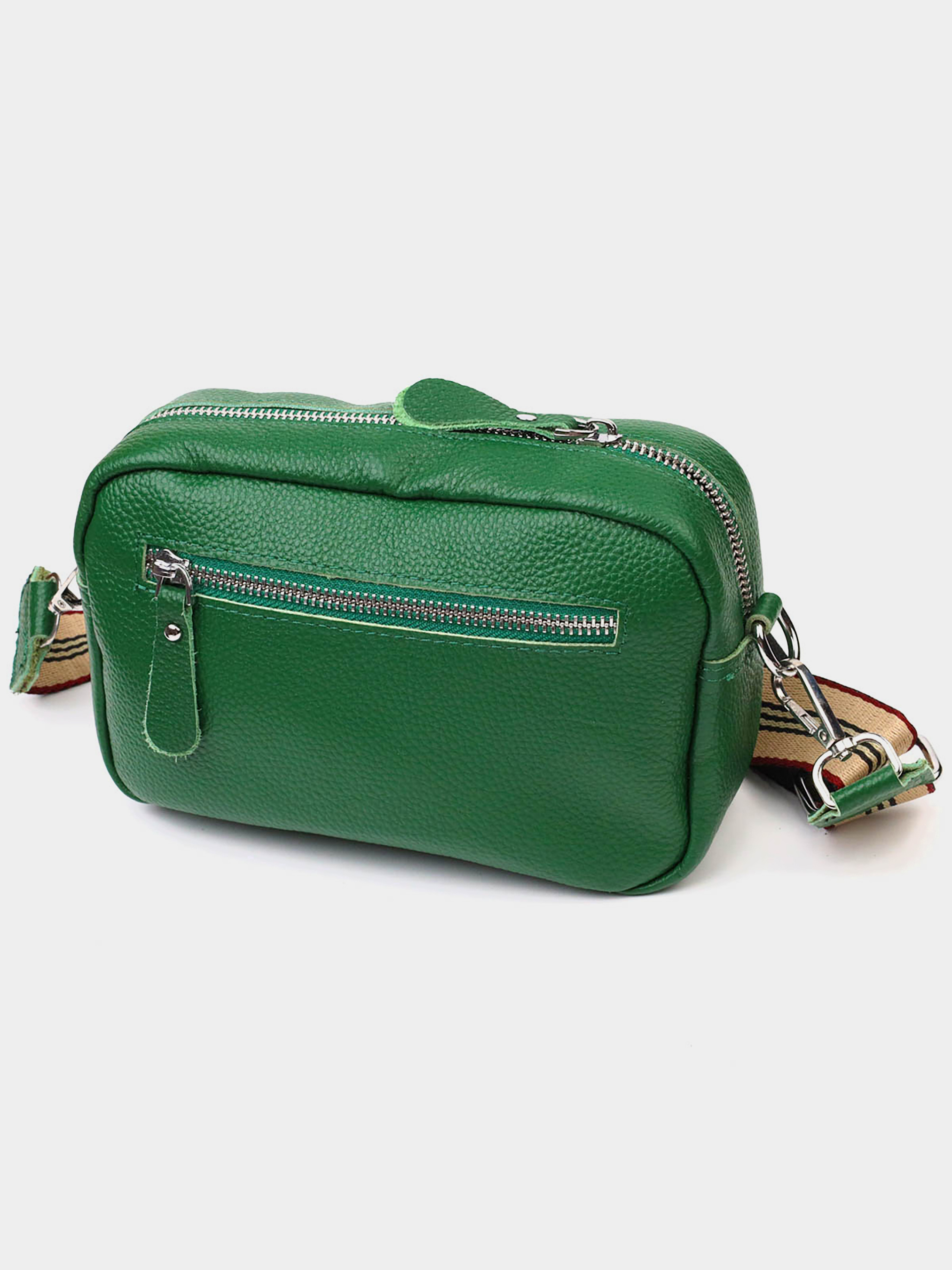 Колір: зелений; Матеріал: натуральна шкіра високої якості; Розмір (ШхВхГ, см): 20х13х6 см; Країна виробник: Китай. Усередині: - одне основне відділення на блискавці; - потайна кишеня на блискавці; - бічна кишеня відкритого типу; - кишеня на магніті на лицьовій стороні; - кишеня на блискавці зовні на тильній стороні; - знімний тканинний плечовий ремінь. Чудова сумка із натуральної м'якої шкіри високої якості. Виріб дуже зручний, можна носити на плечі та через плече. Модель доповнена фурнітурою кольору срібла. Аксесуар має одне основне відділення на блискавці в якому дві кишеньки - одна на блискавці та одна відкритого типу, а також кишеня на блискавці зовні, на тильній стороні та кишеня на магніті на лицьовій стороні. Модель закривається на блискавку. Ідеальний варіант для будь-якої дівчини на будь-який сезон.